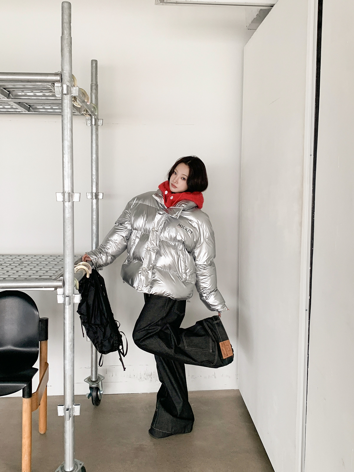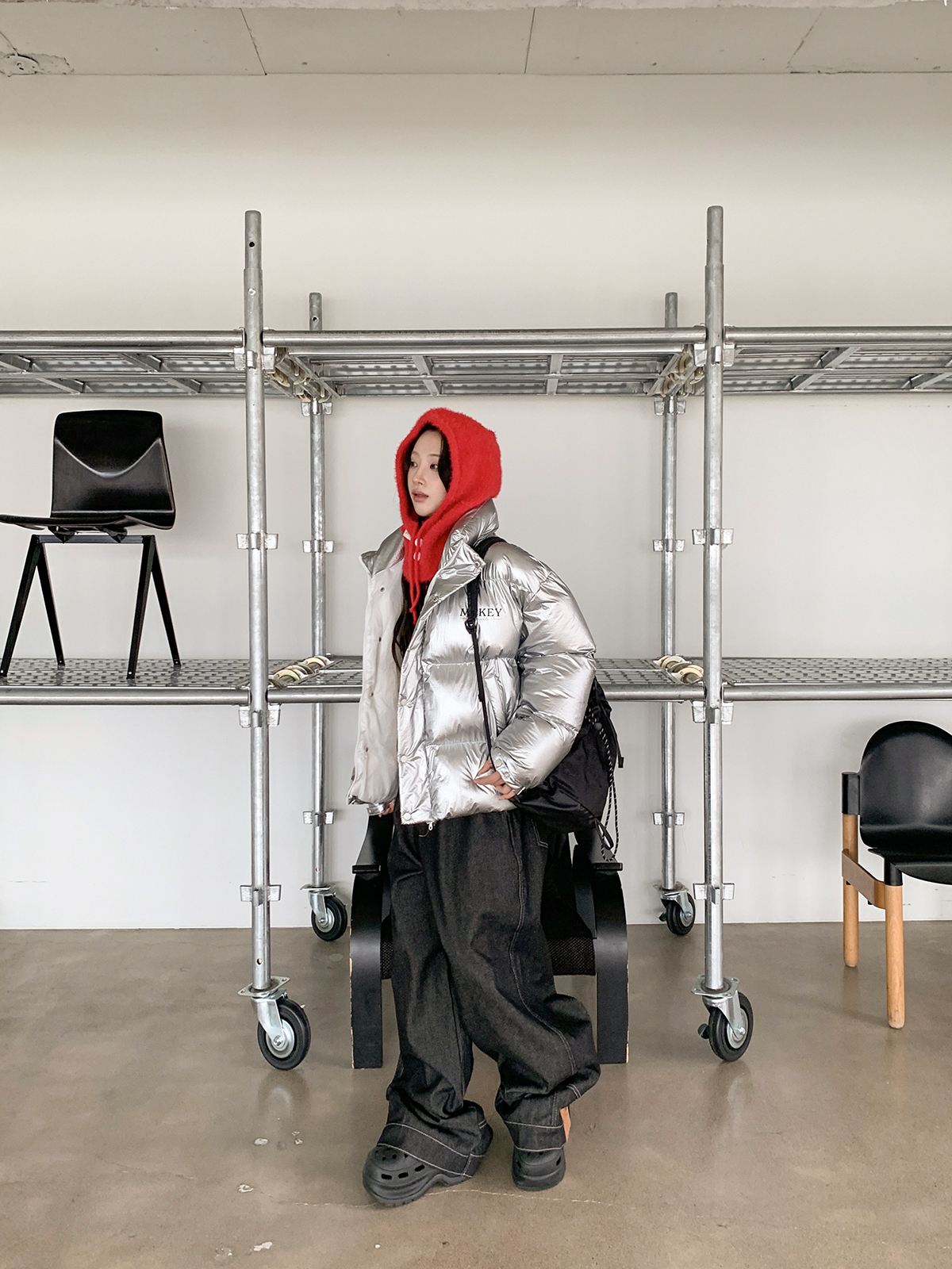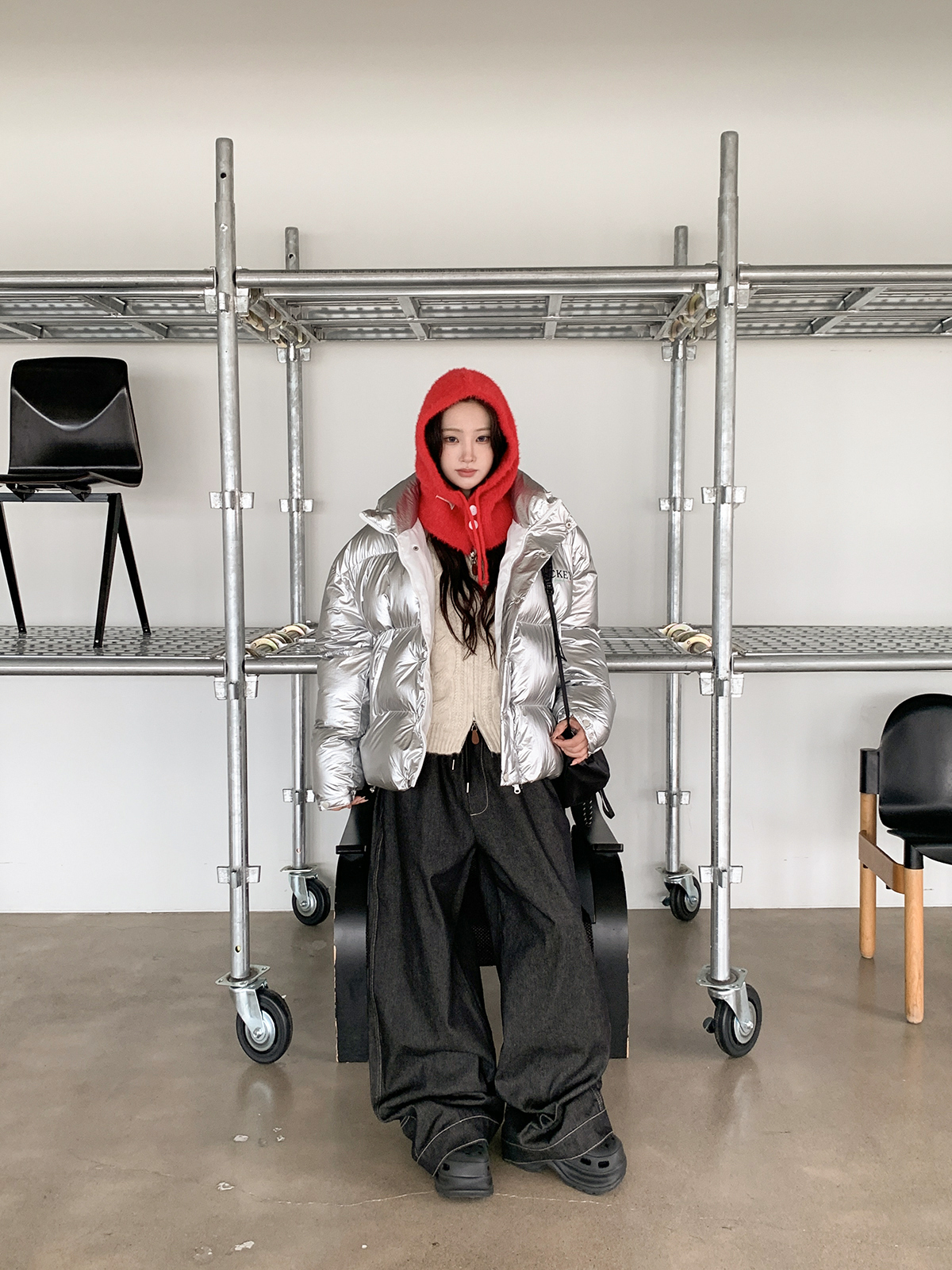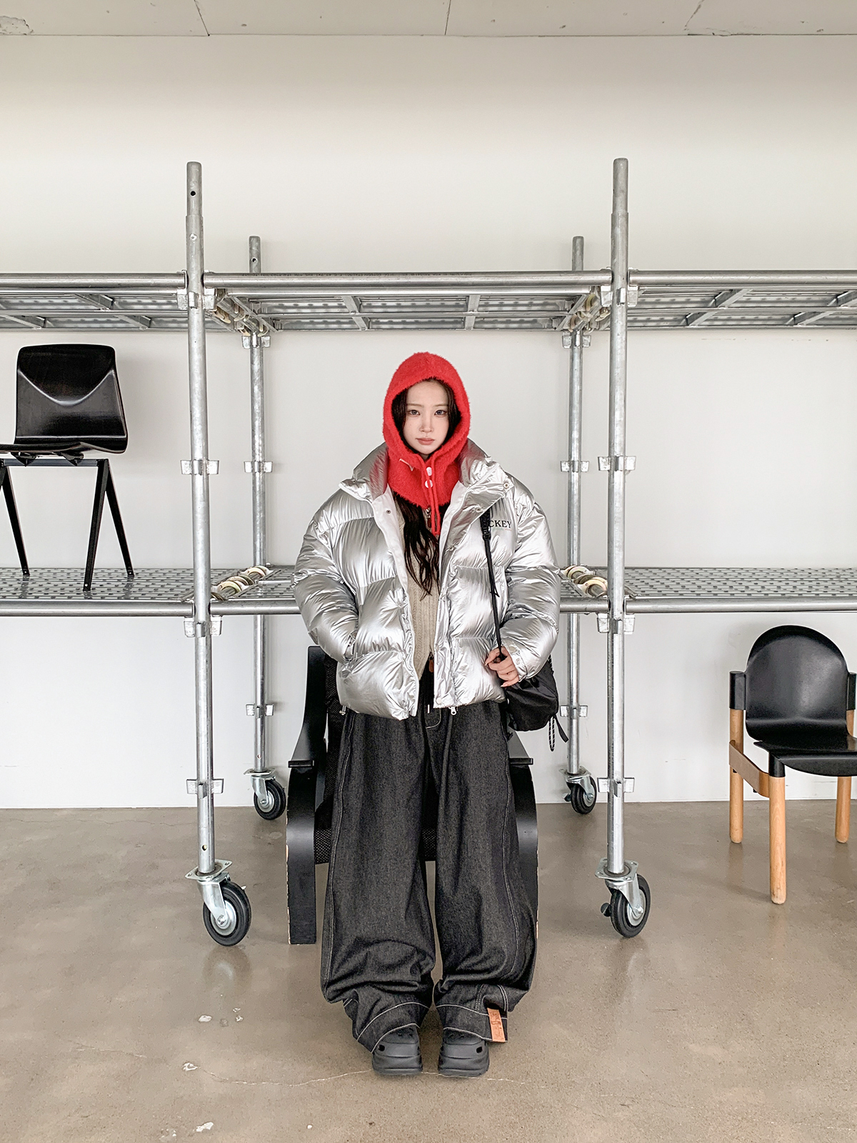유니크하고 글로시하게 겨울에 포인트하기 좋은 패딩으로