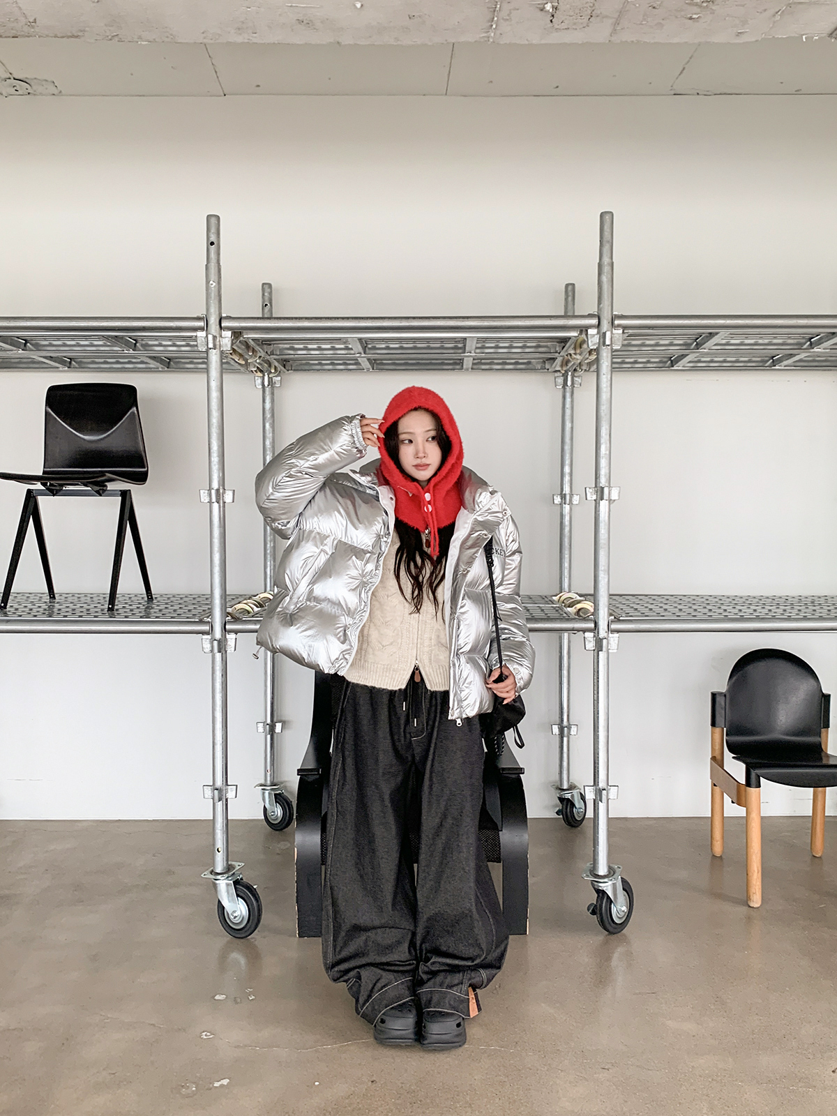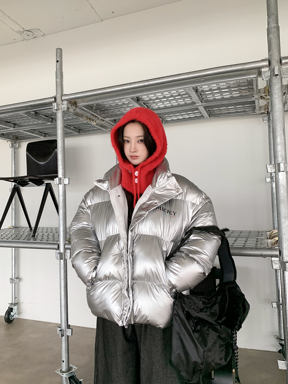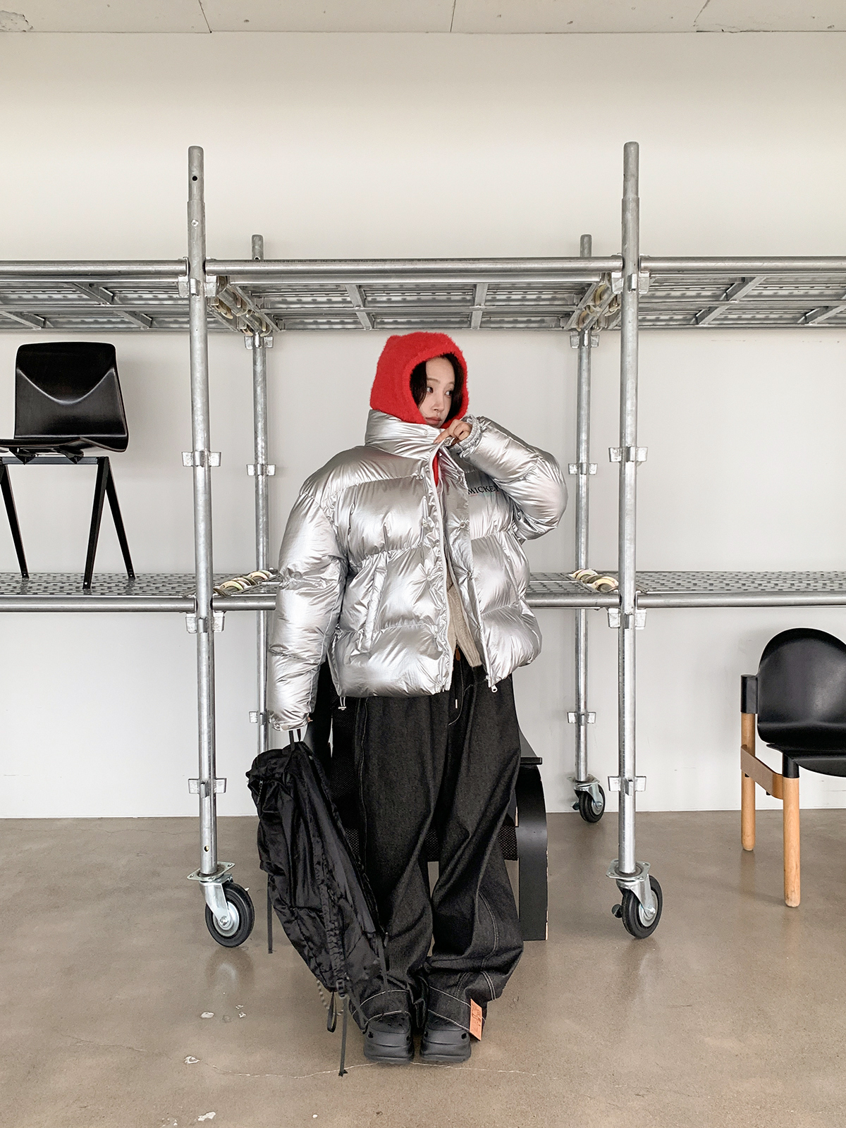 유니크하고 글로시하게 겨울에 포인트하기 좋은 패딩으로