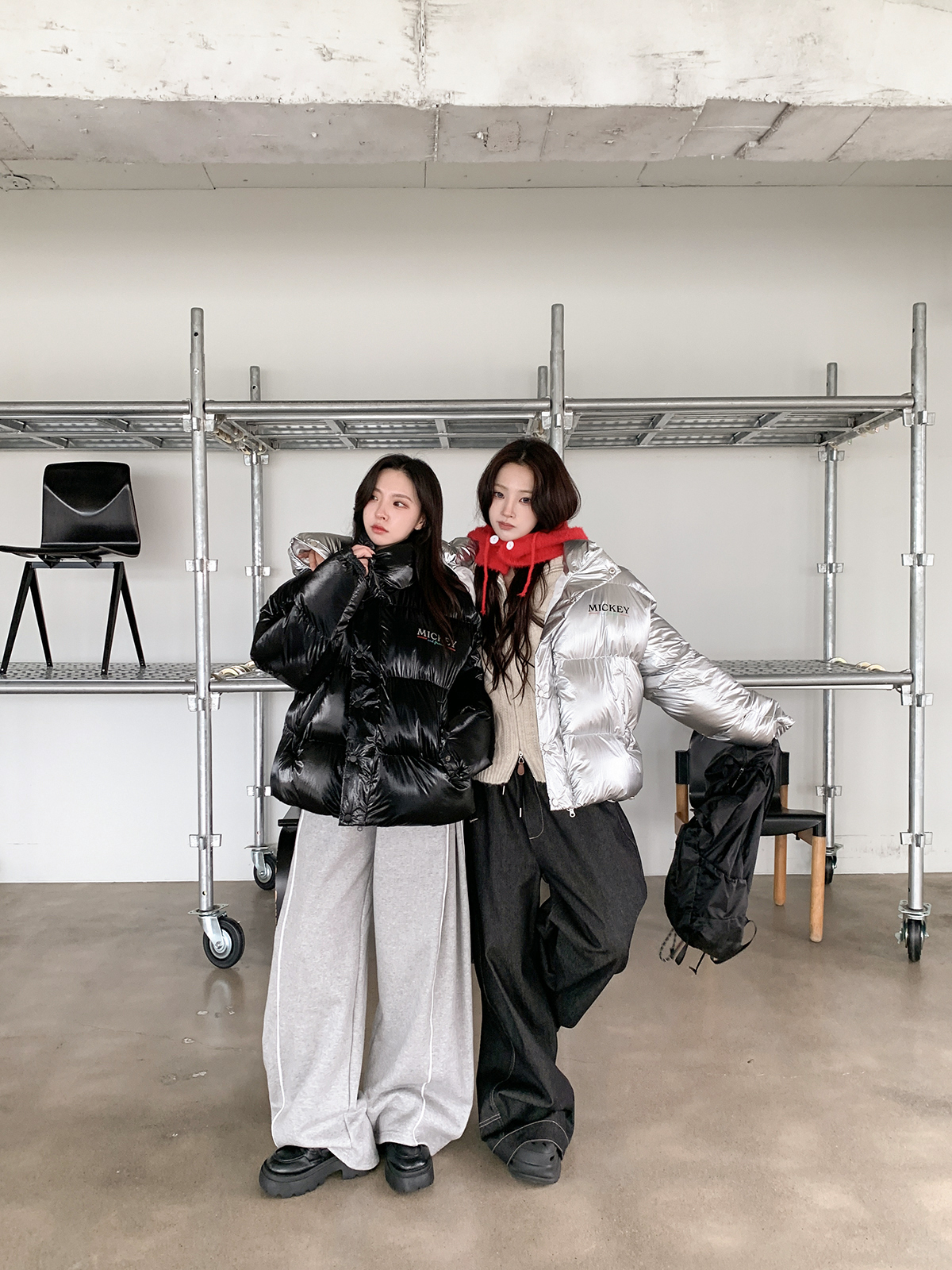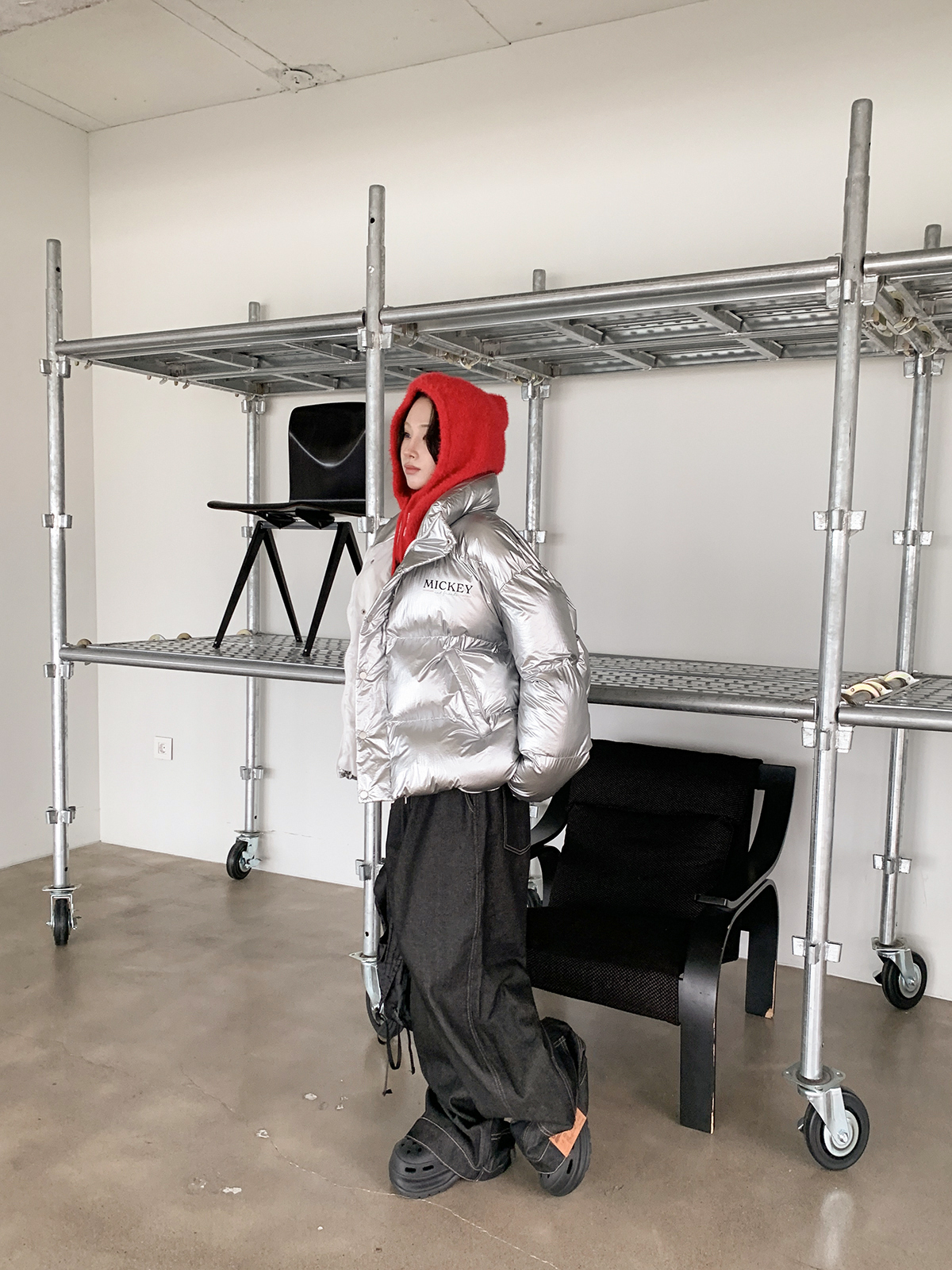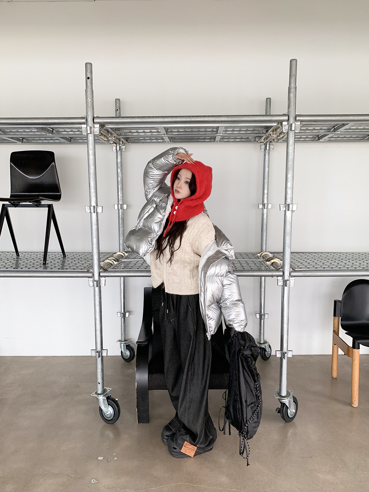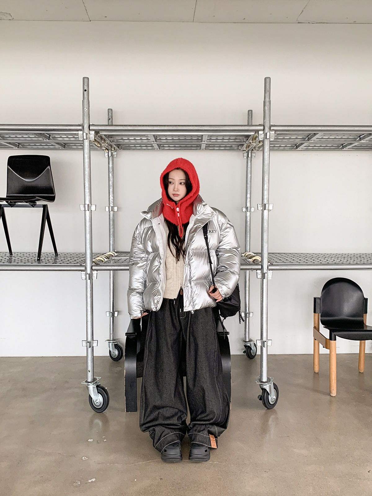 유니크하고 글로시하게 겨울에 포인트하기 좋은 패딩으로