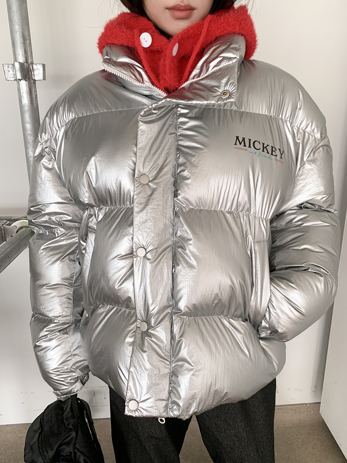 디즈니정품의 미키디자인의 메탈 패딩 점퍼