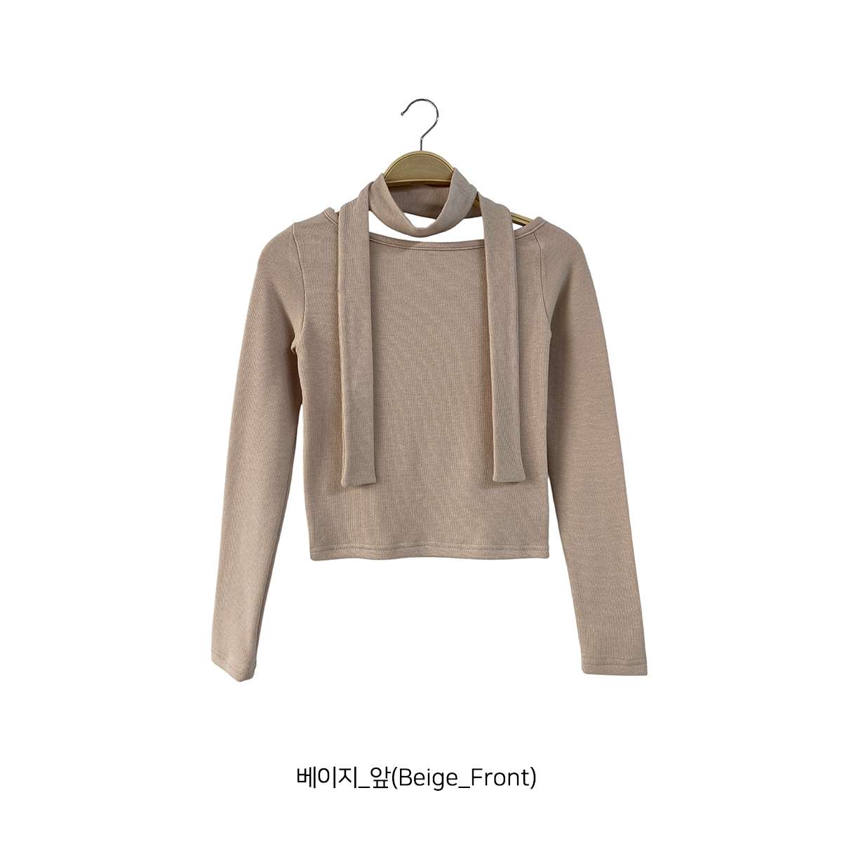 T17256K5A-카오리 슬림 크롭 기모 머플러 티셔츠 set