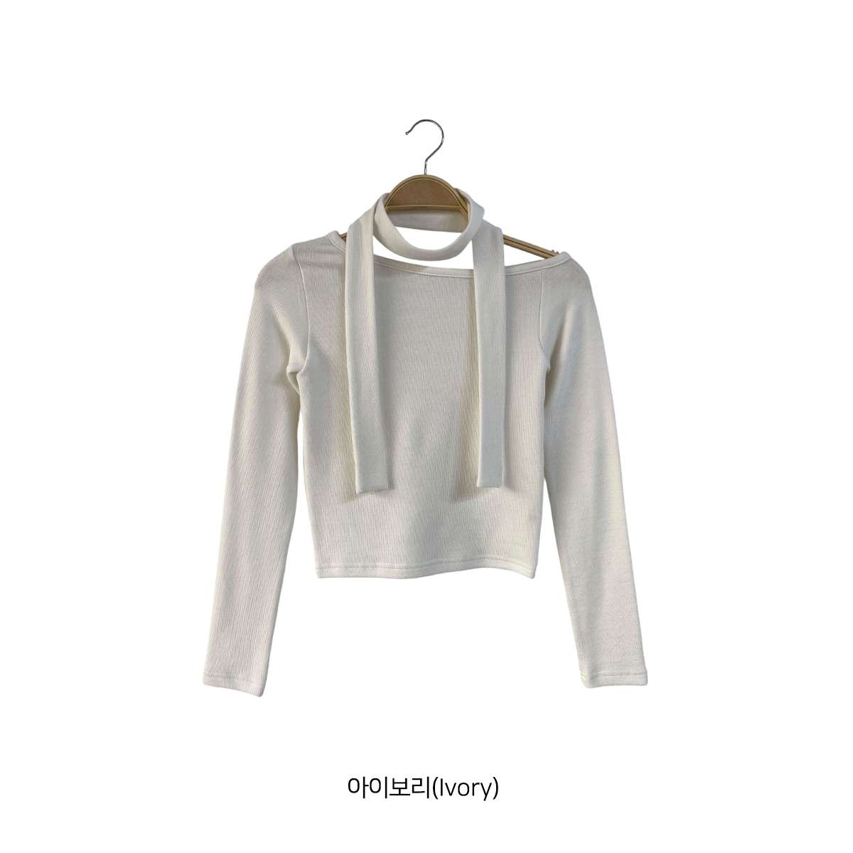 [ T17256K5A-카오리 슬림 크롭 기모 머플러 티셔츠 set ]