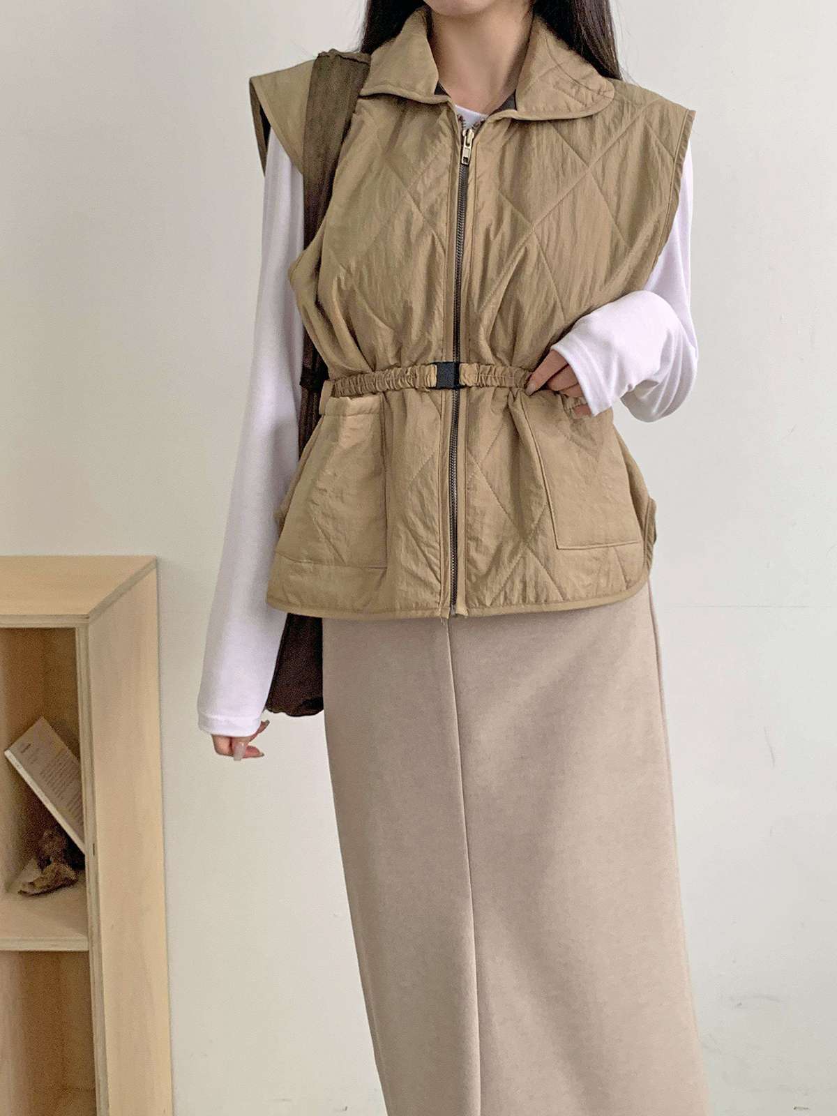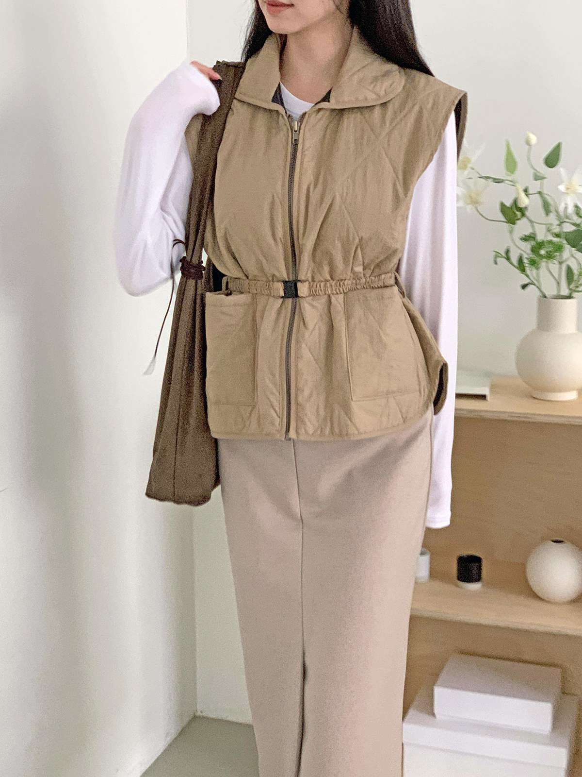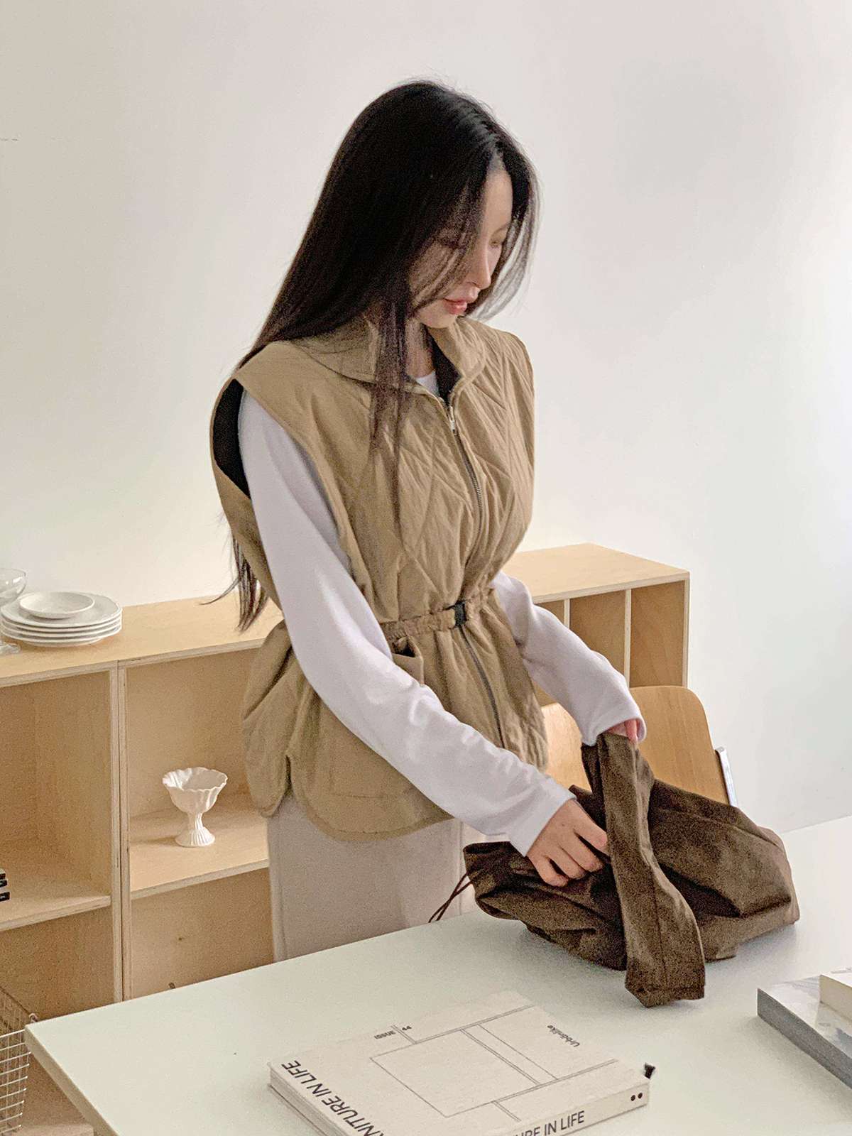 [ VT1395K5A-아티제 버클 벨트 기모 패딩 조끼 ]