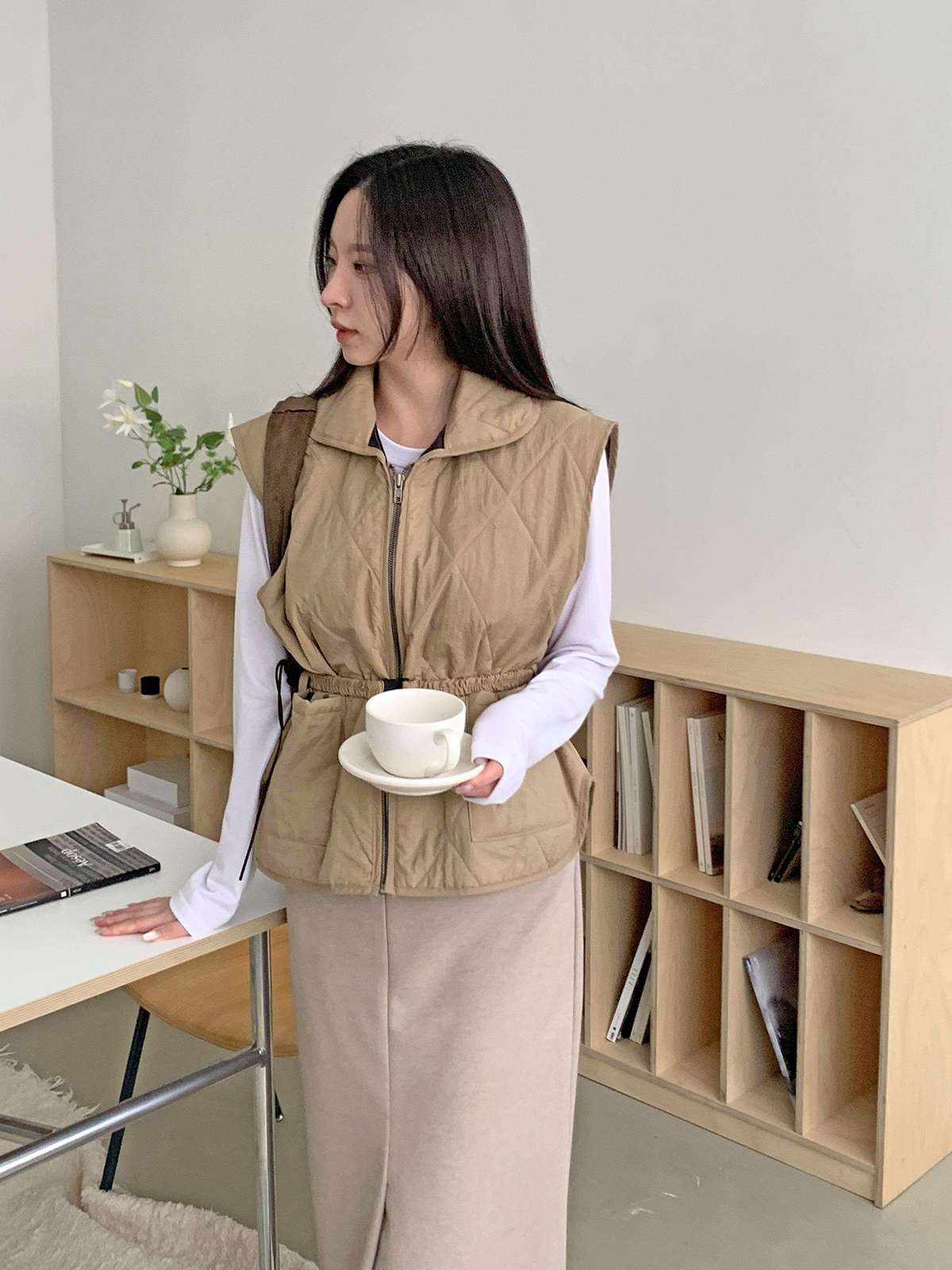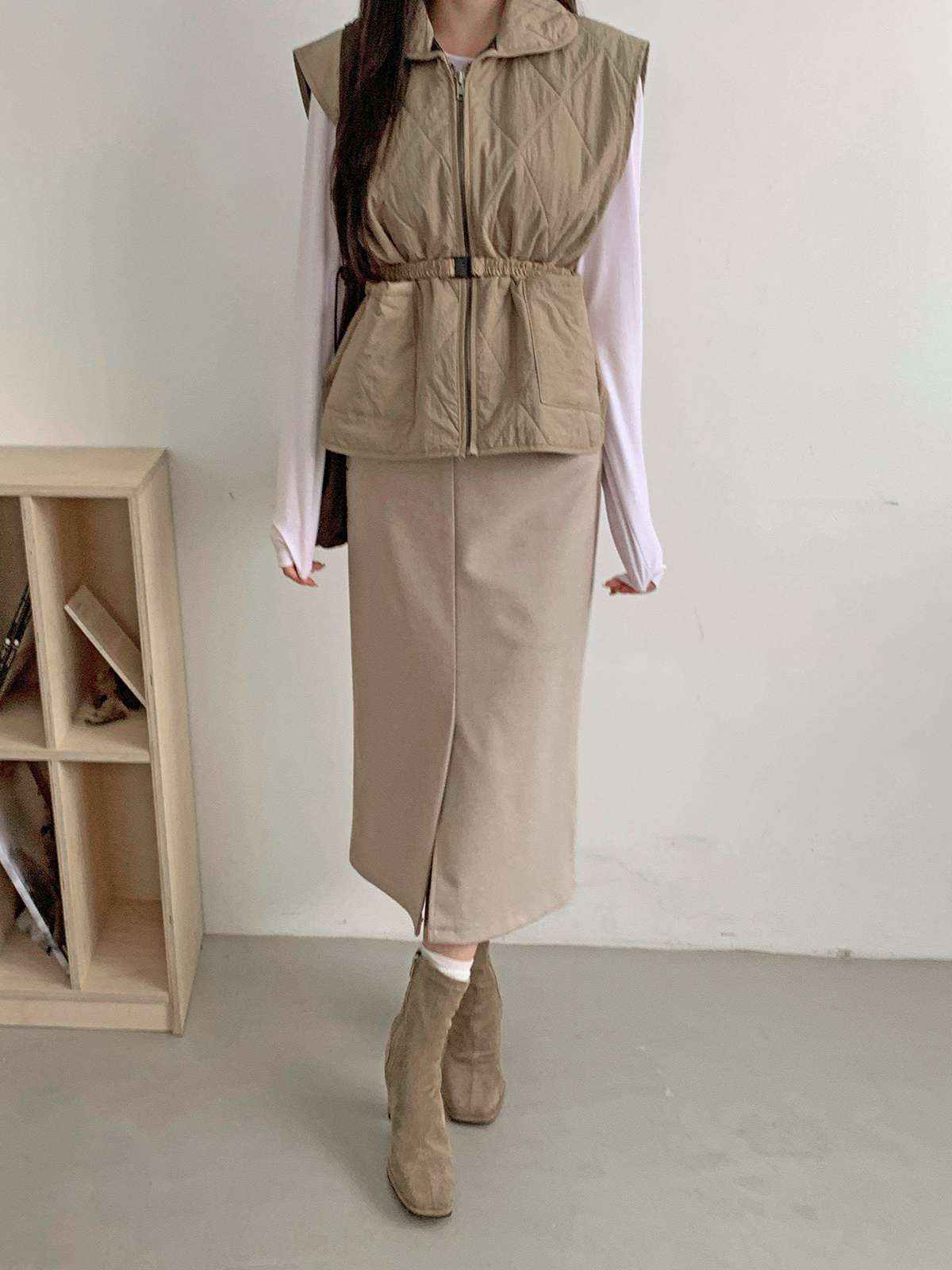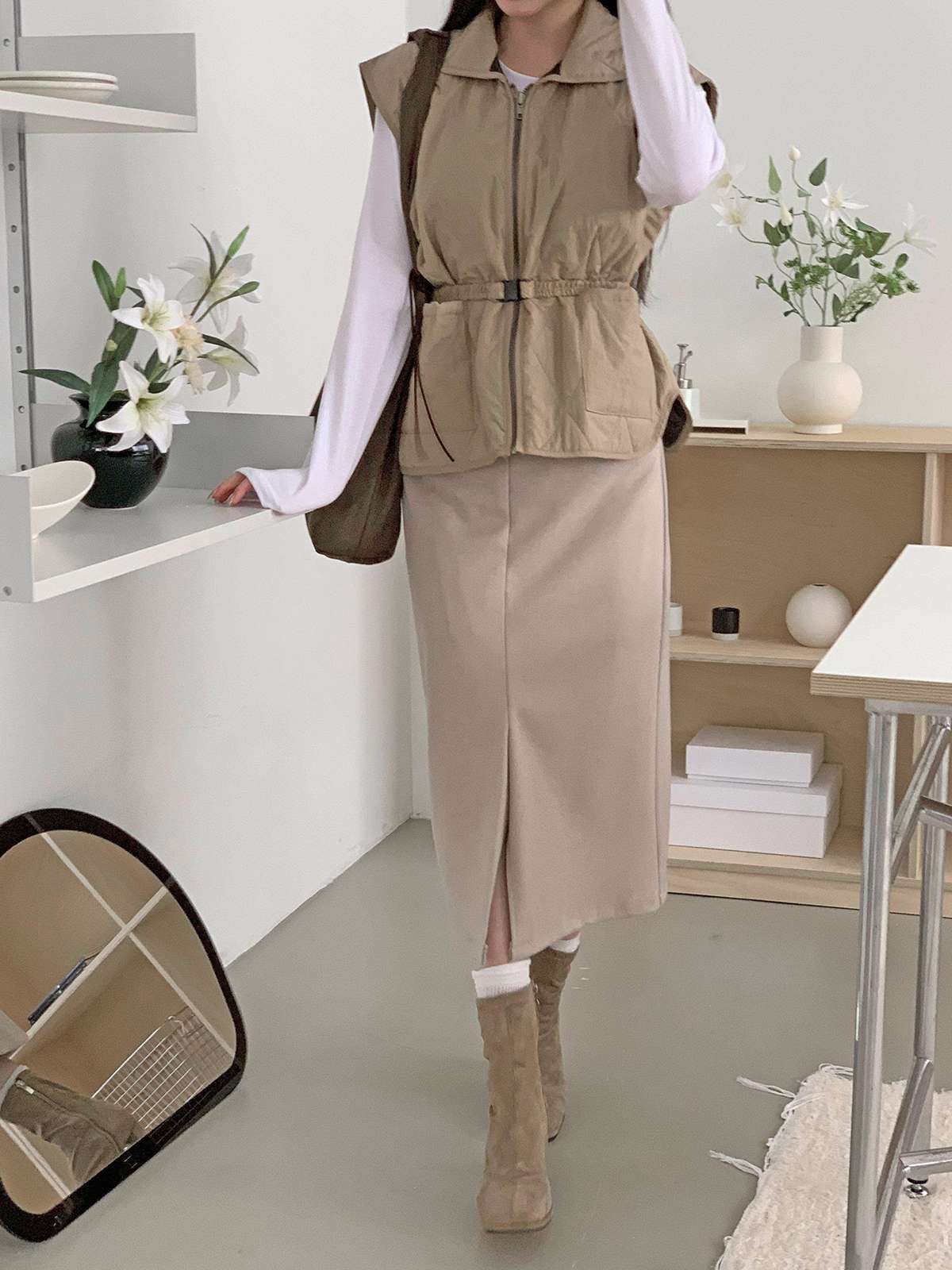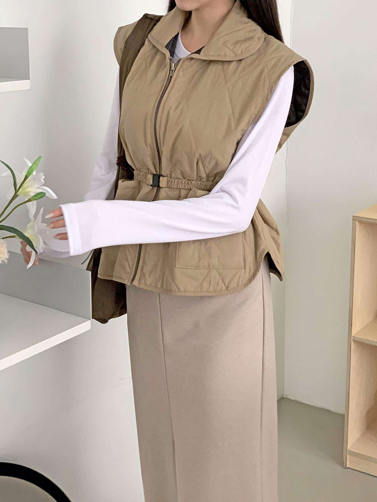 [ VT1395K5A-아티제 버클 벨트 기모 패딩 조끼 ]