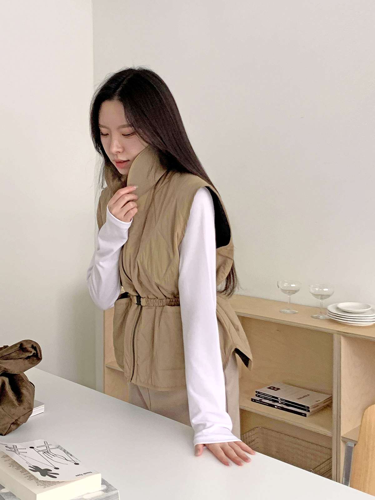 속기모 원단으로 보온성이 뛰어난 버클 벨트 패딩 조끼