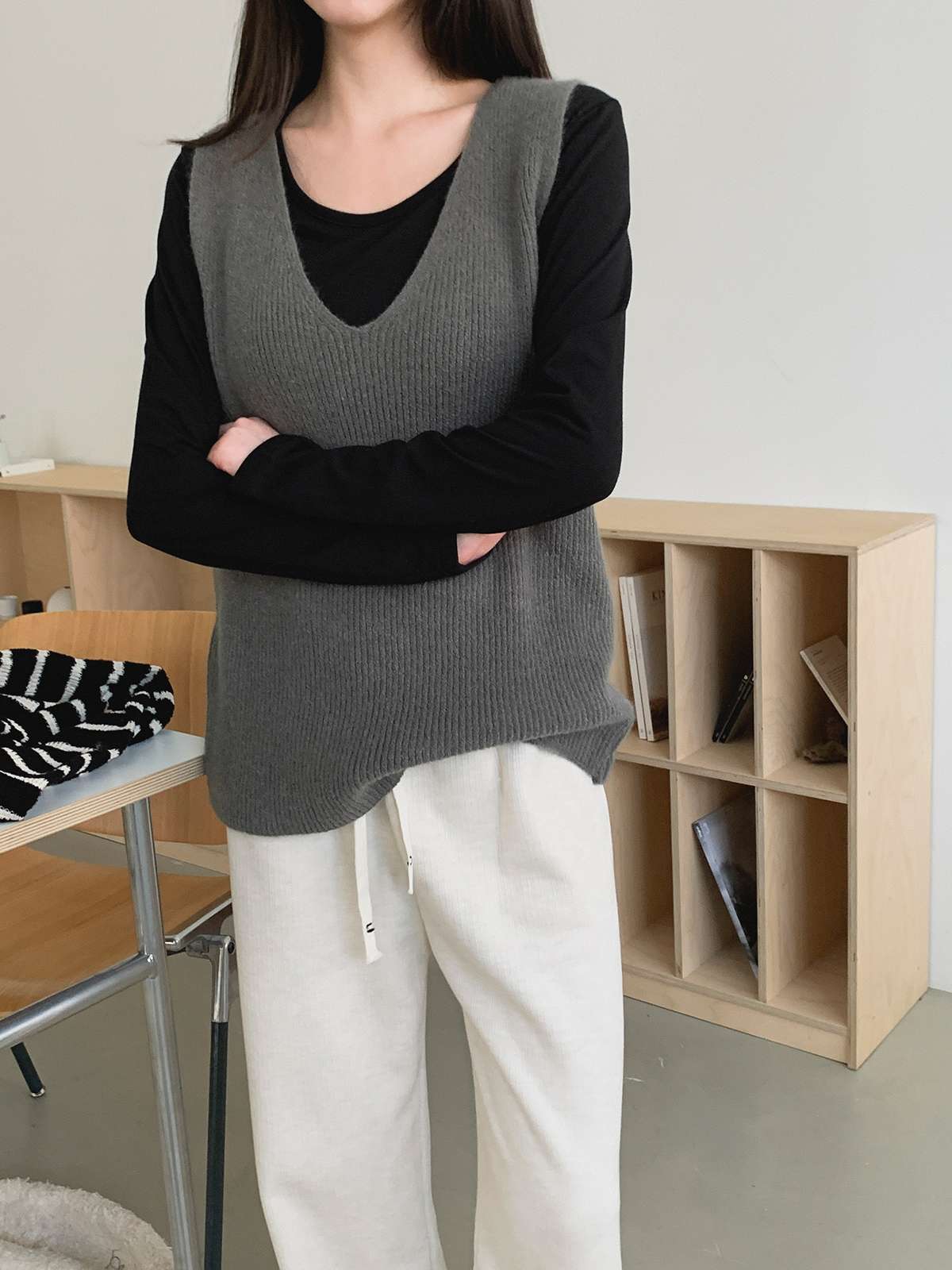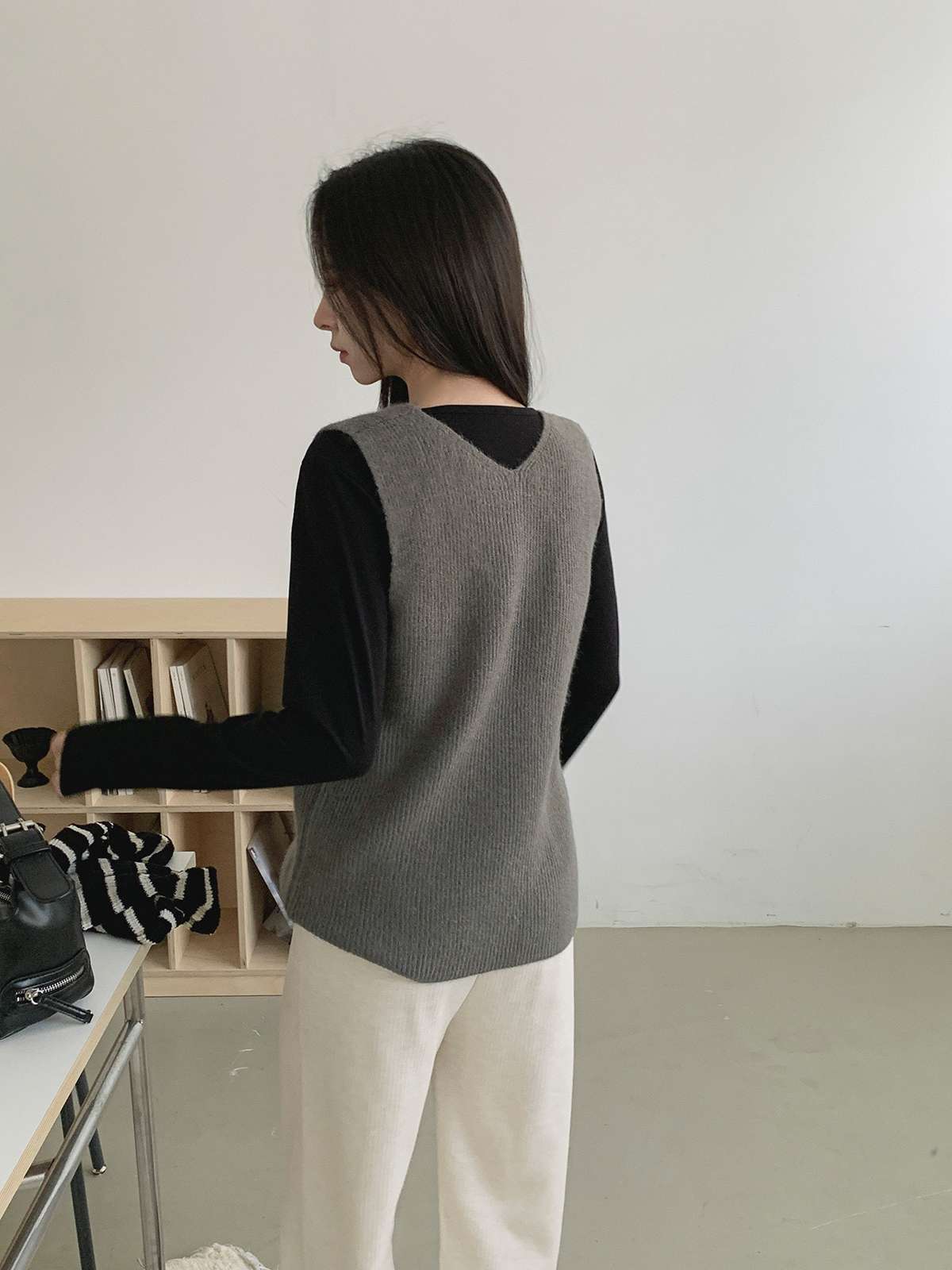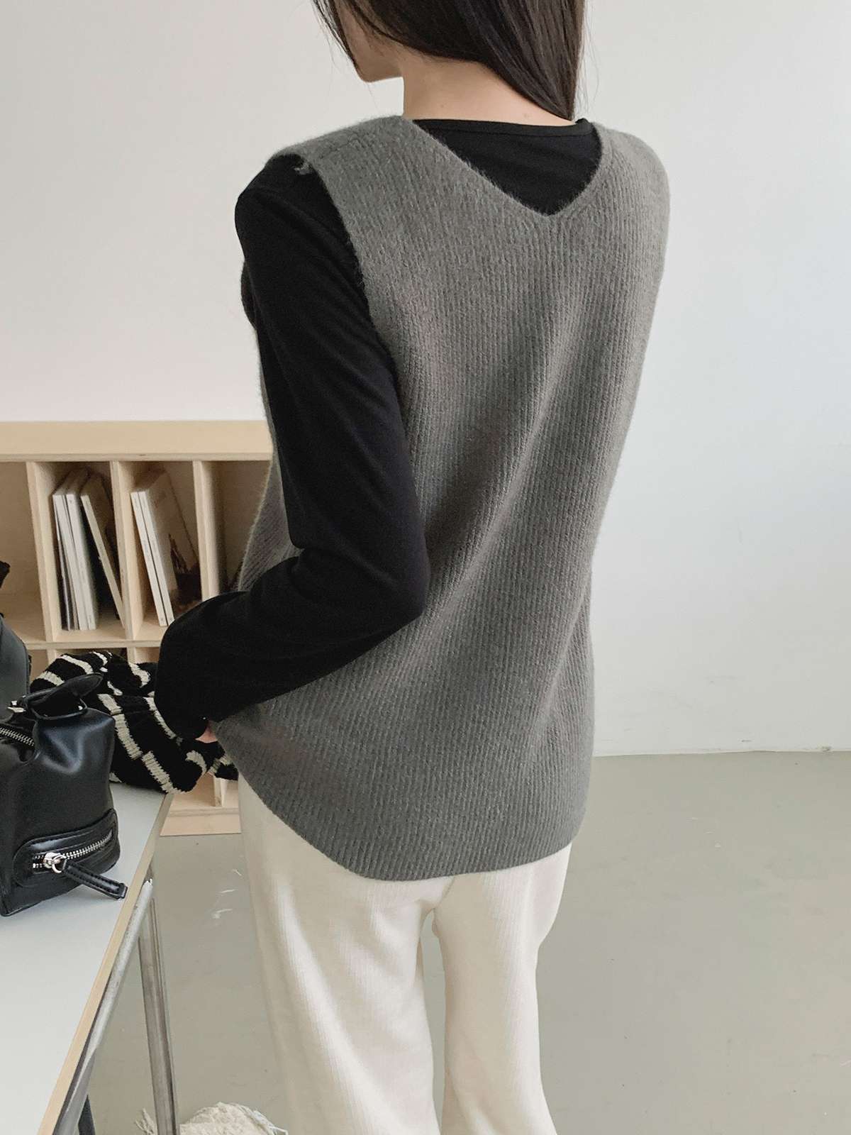 [ VT1396K5A-허니르 루즈핏 브이넥 니트 조끼 ]