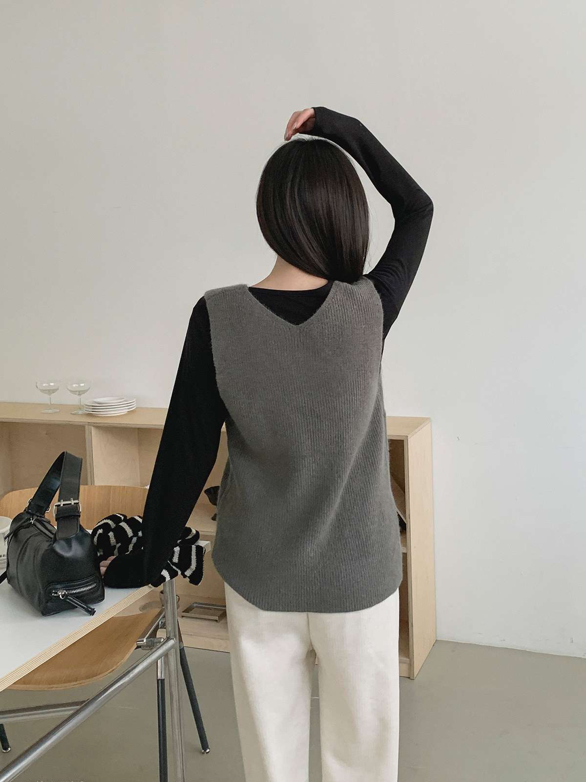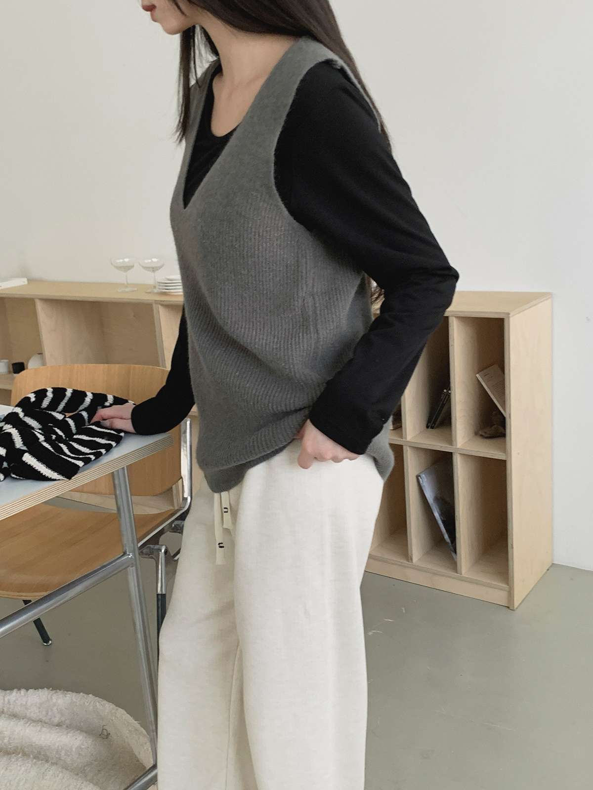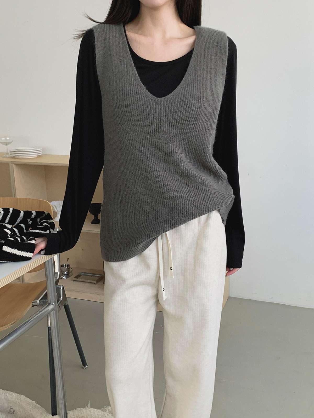[ VT1396K5A-허니르 루즈핏 브이넥 니트 조끼 ]