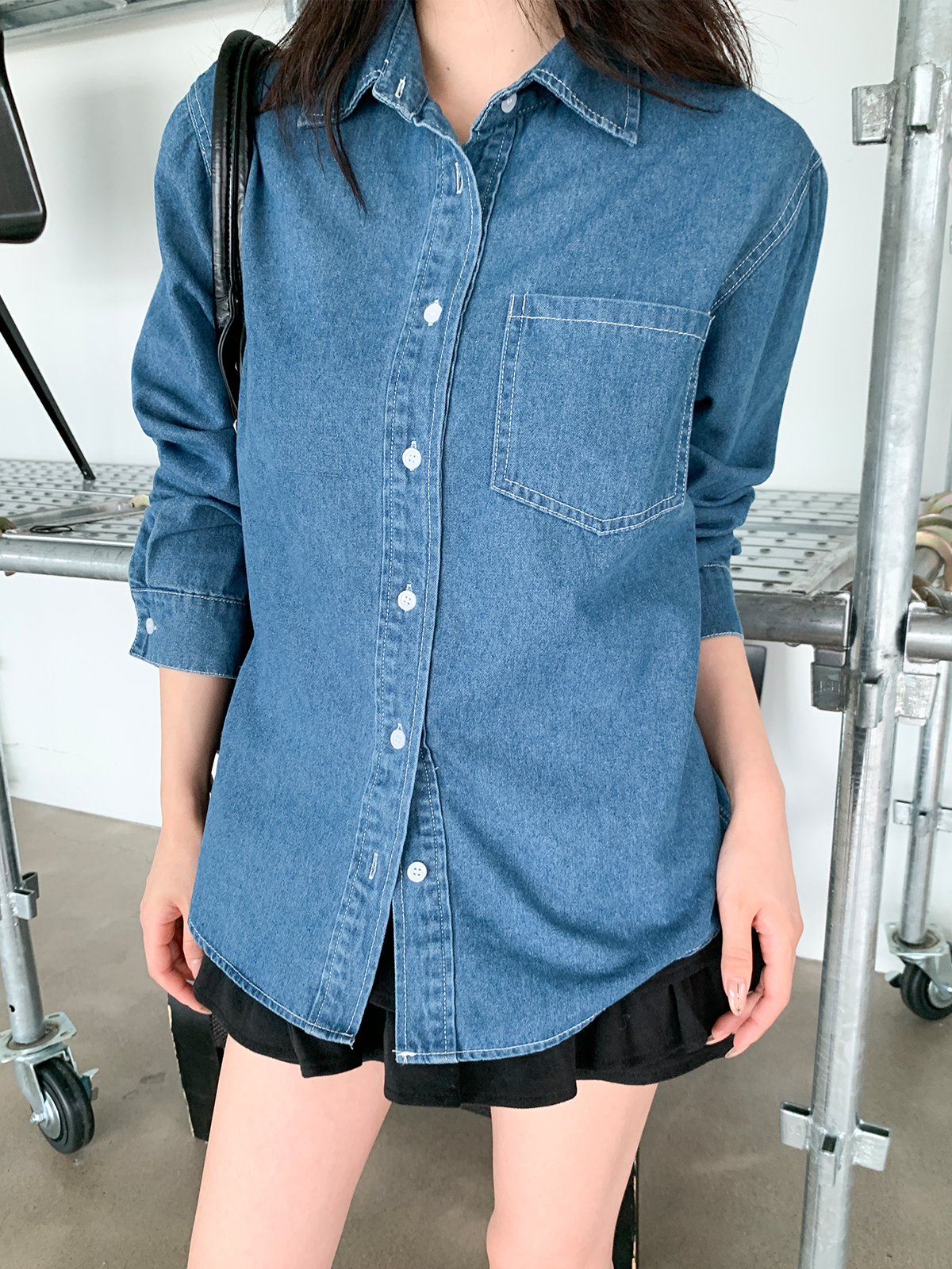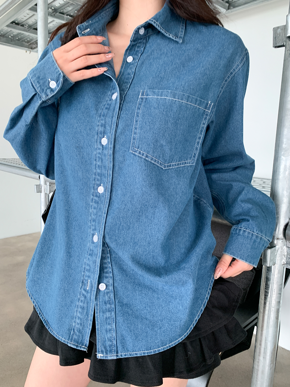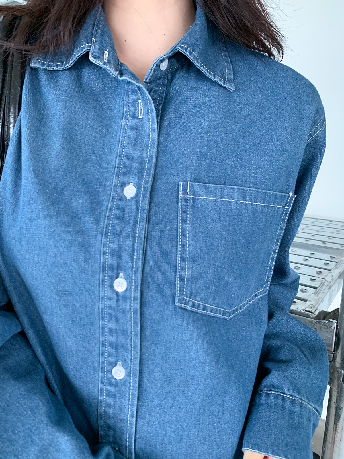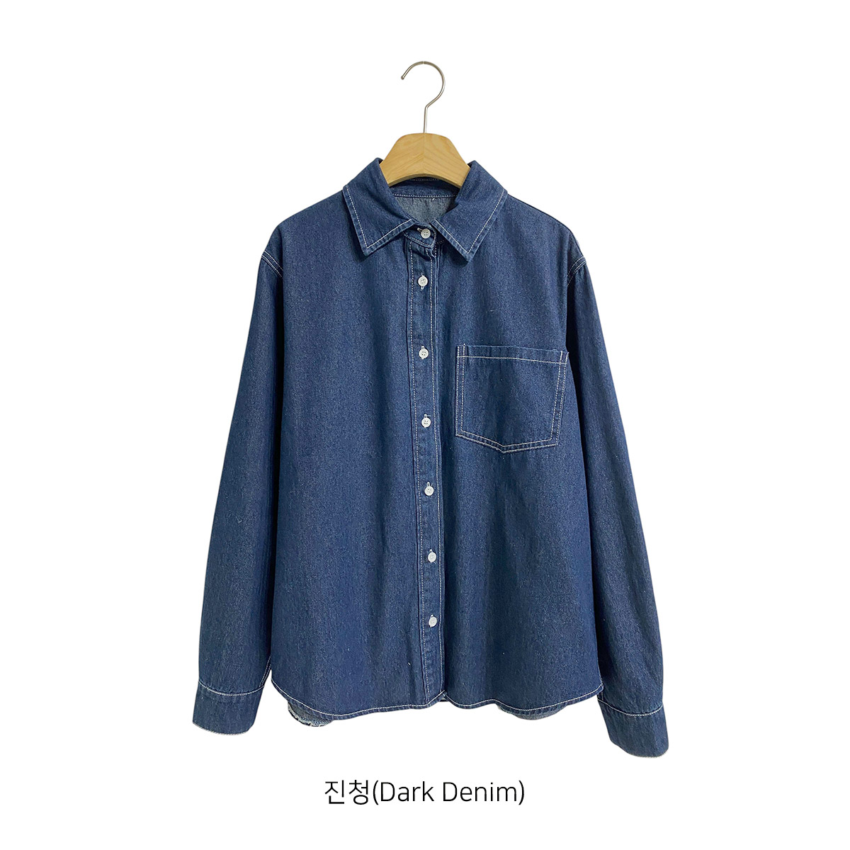 NB3323K5A-슬로우 포켓 스티치 루즈핏 데님 셔츠