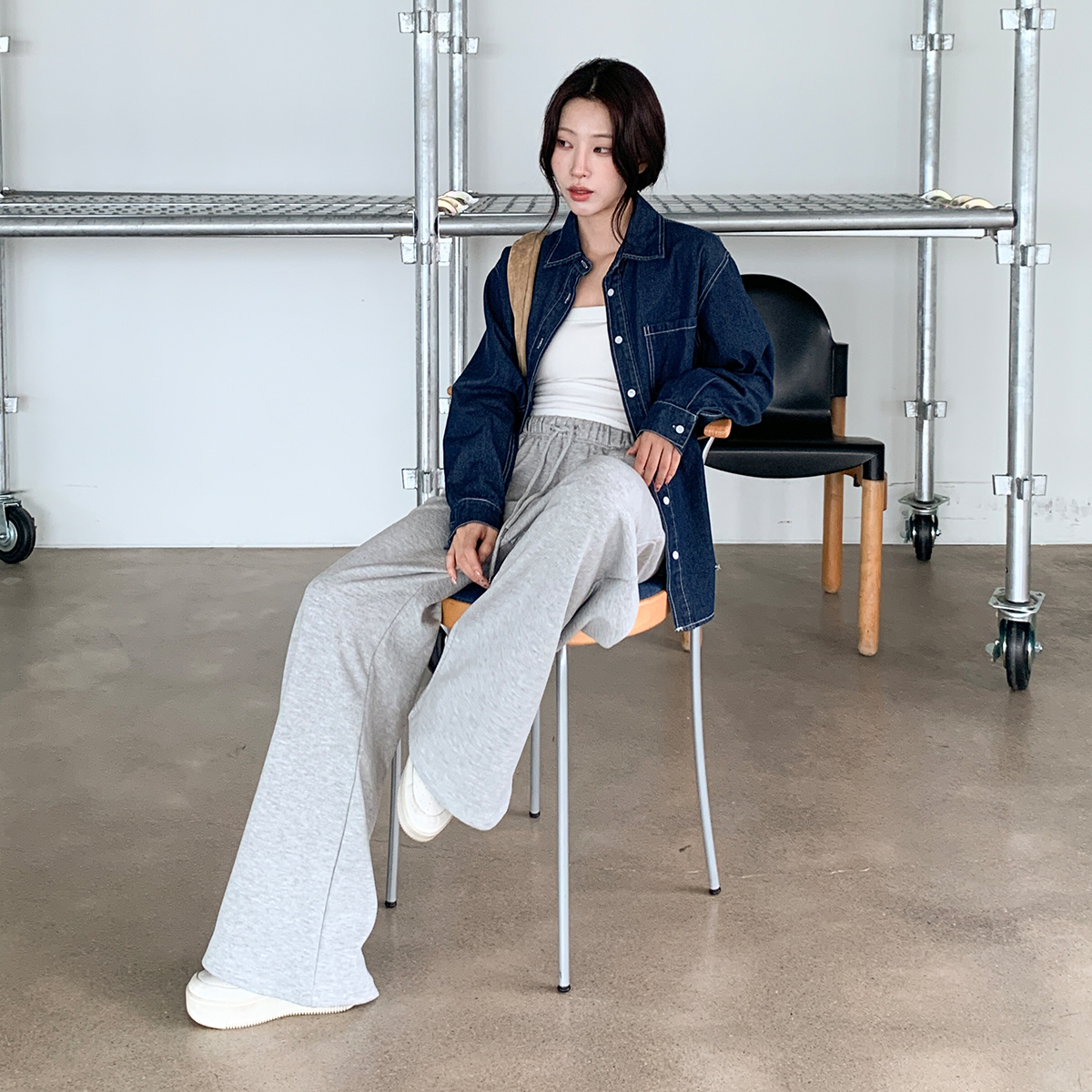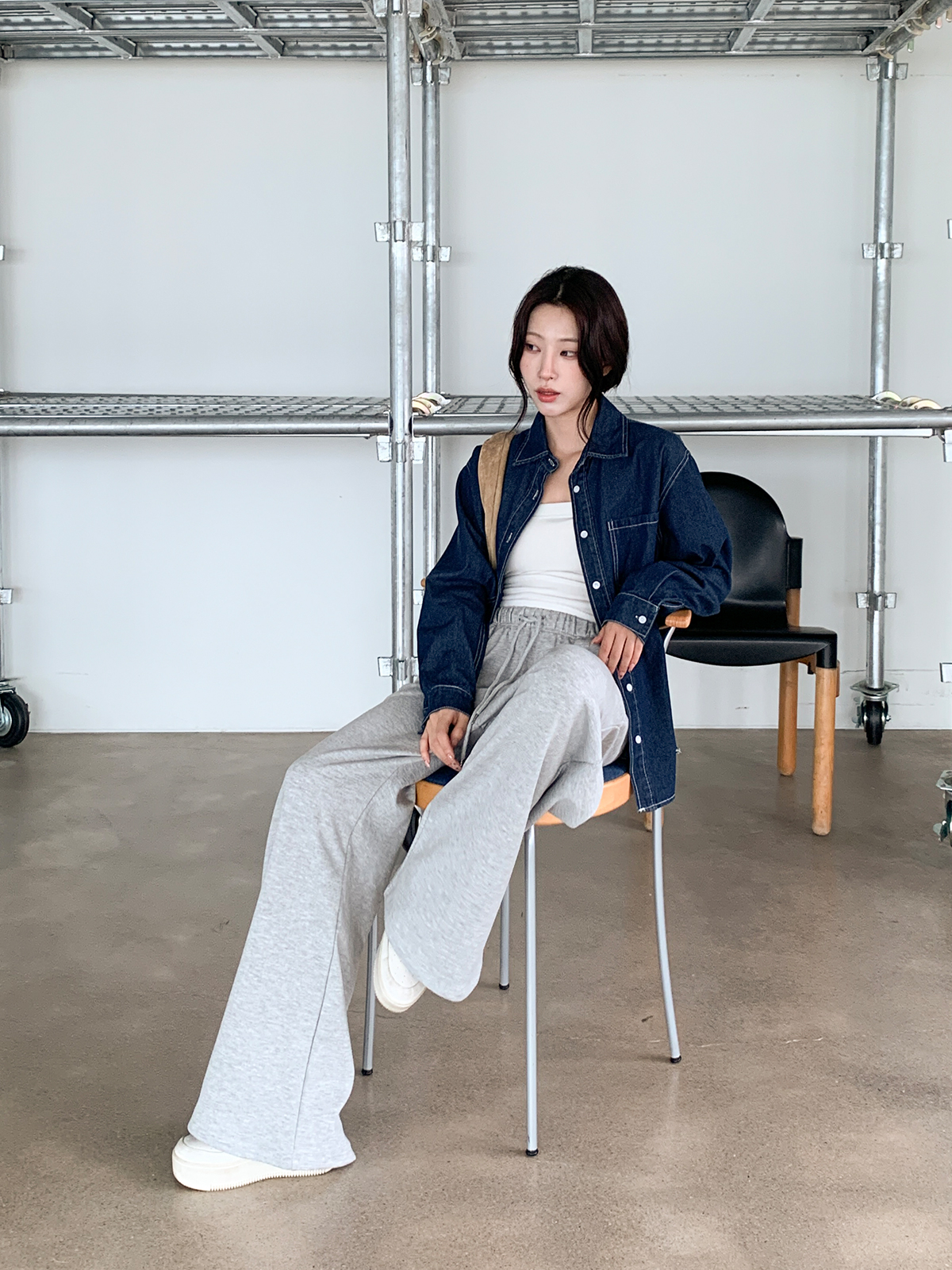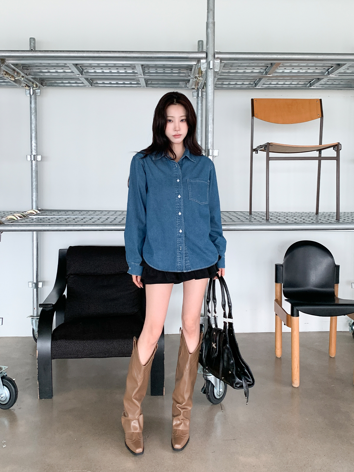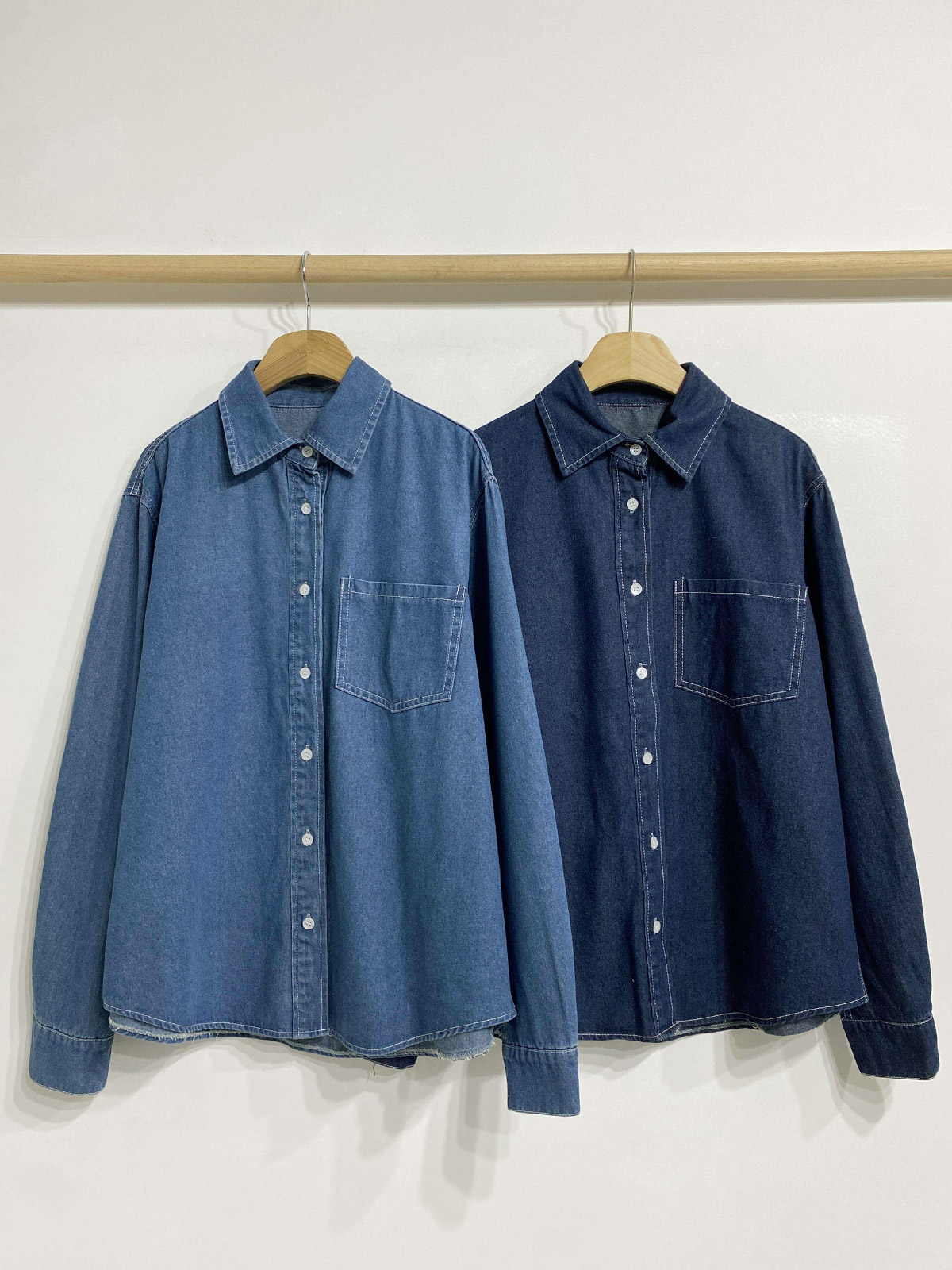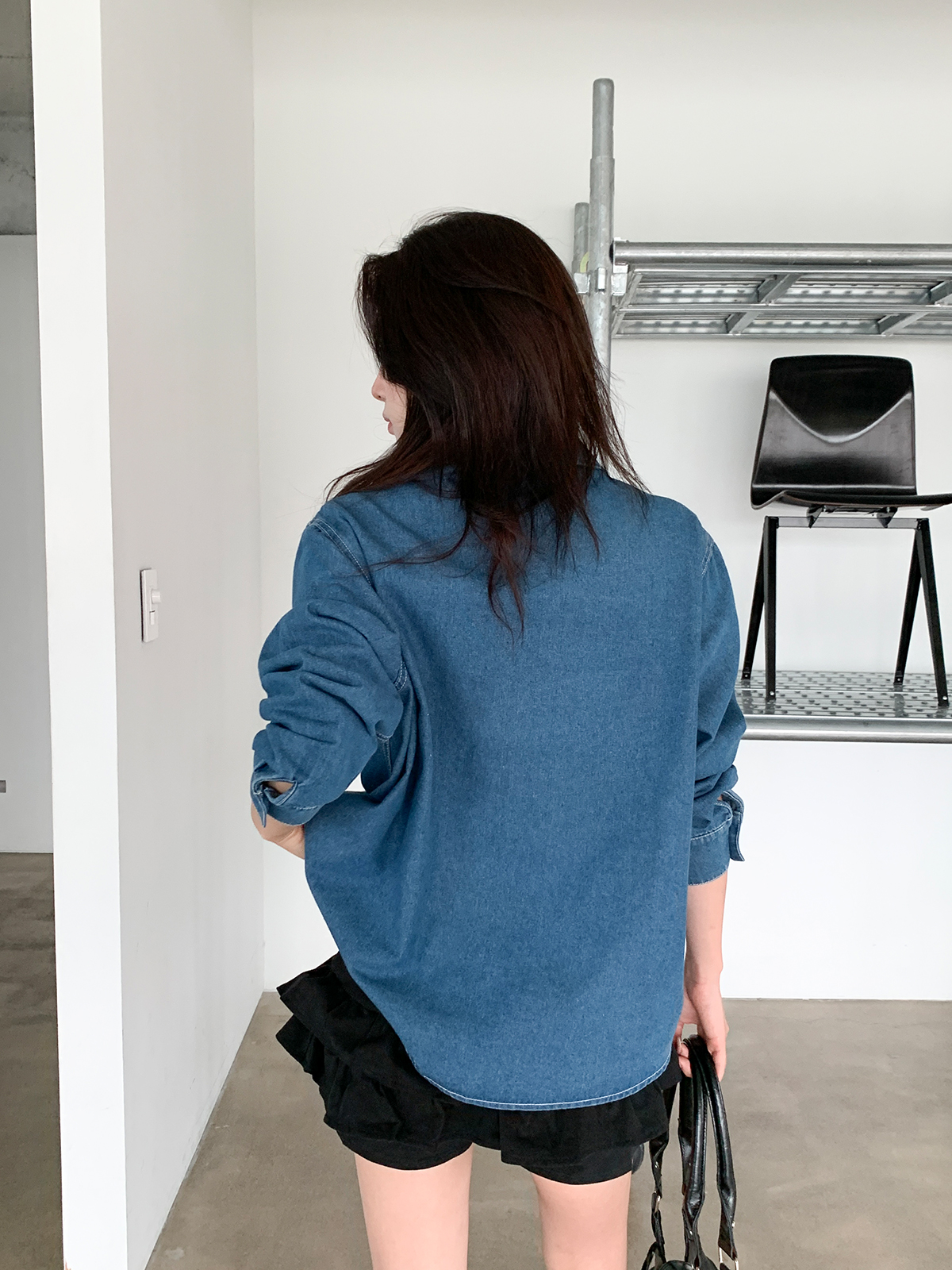 NB3323K5A-슬로우 포켓 스티치 루즈핏 데님 셔츠