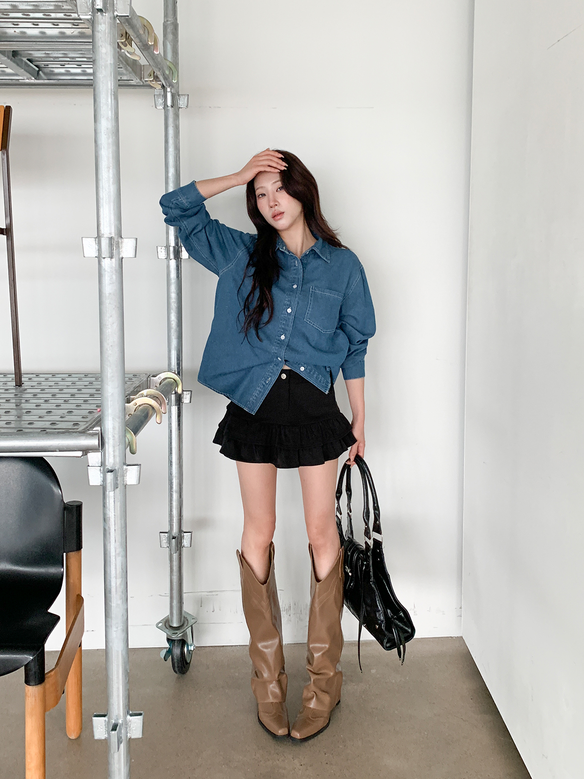 높여주는 데님셔츠로 앞에 포켓이 있어 포인트가 되고 캐주얼한 무드를 자아내며