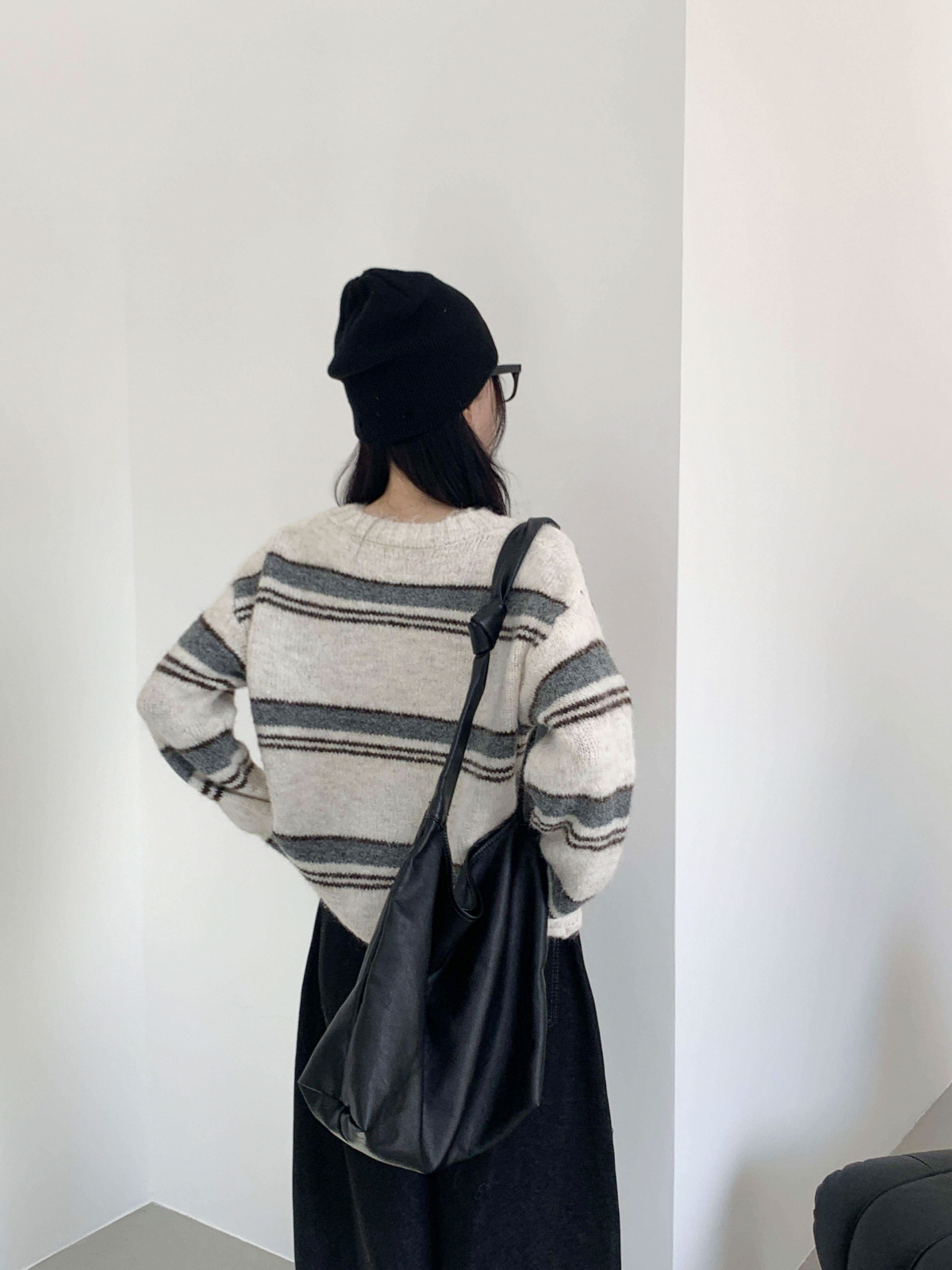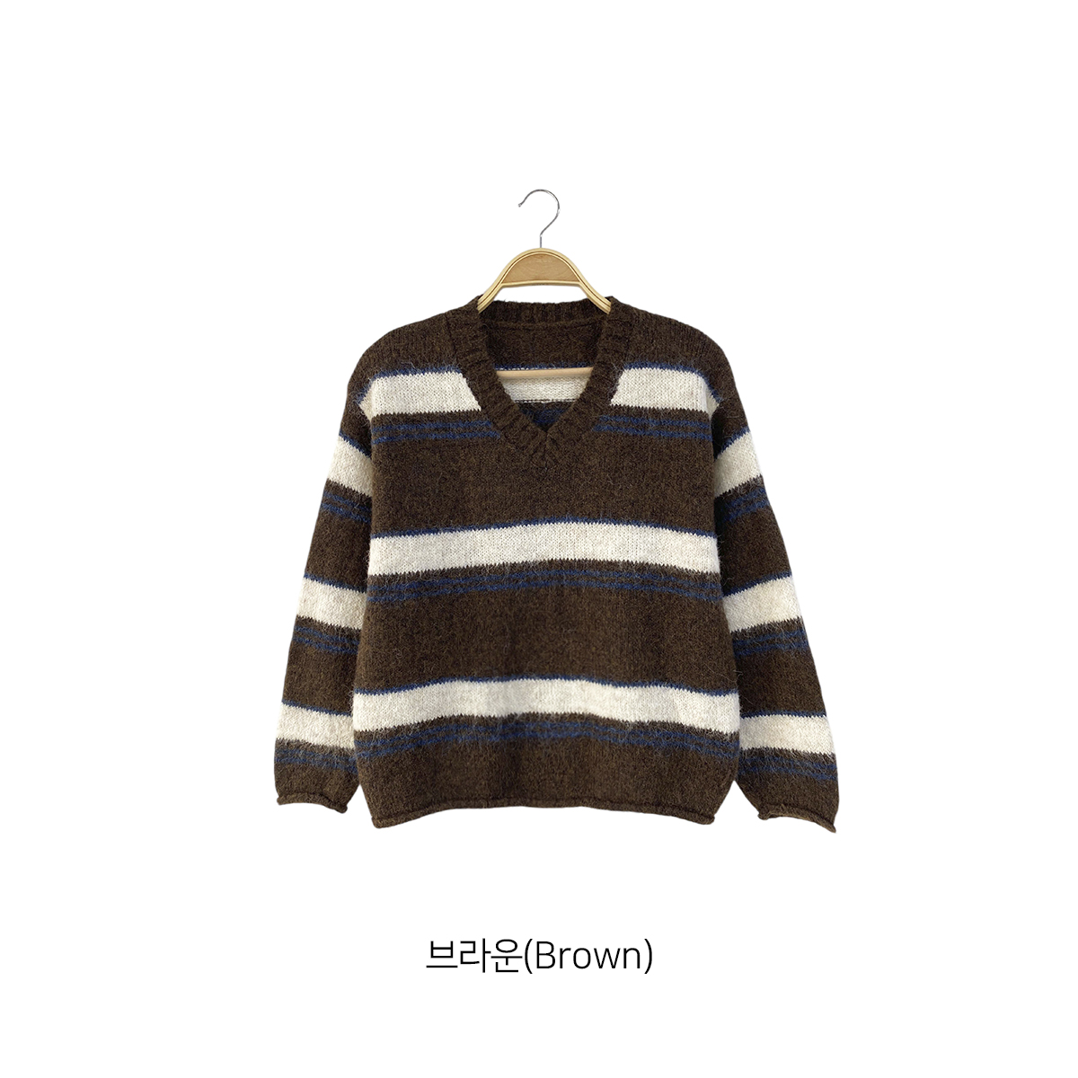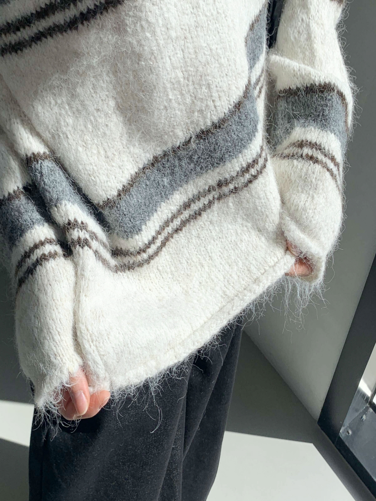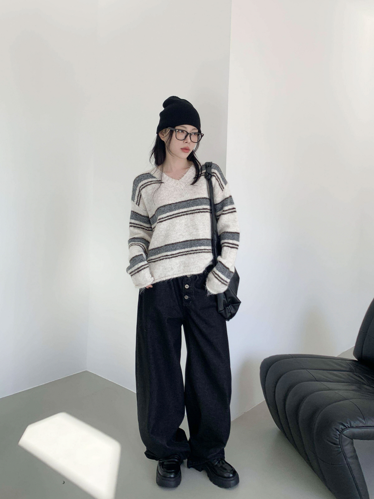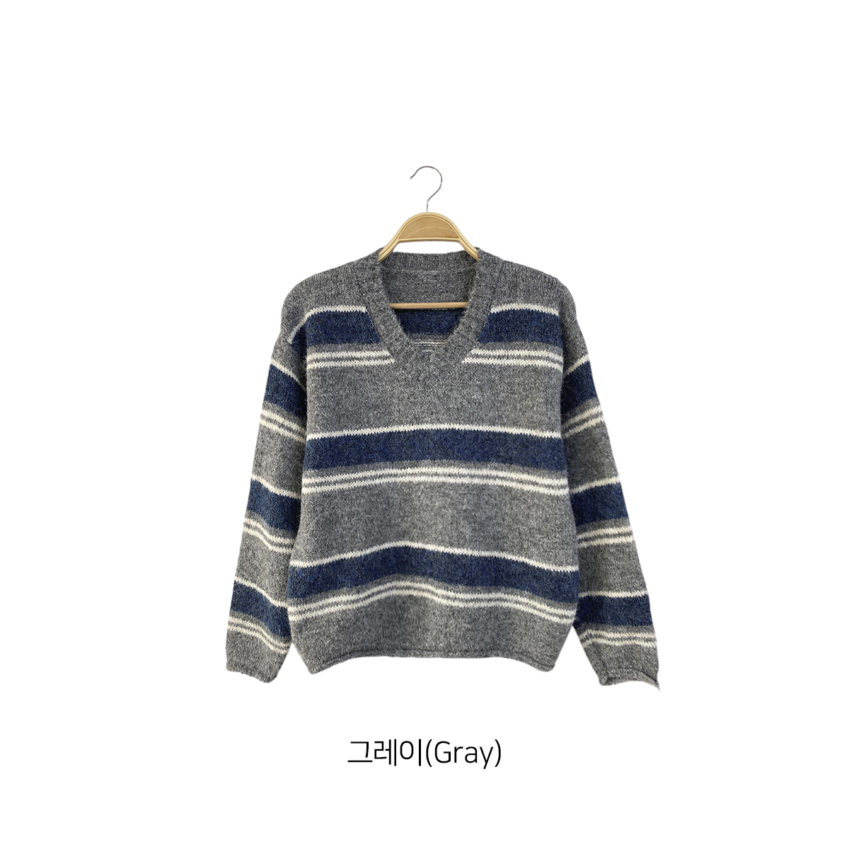 [ NT6049K5A-소프드 불규칙 단가라 오버핏 브이넥 니트 ]