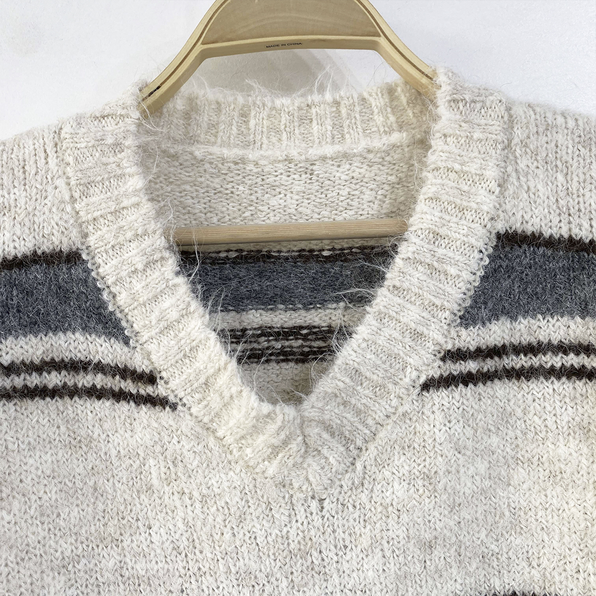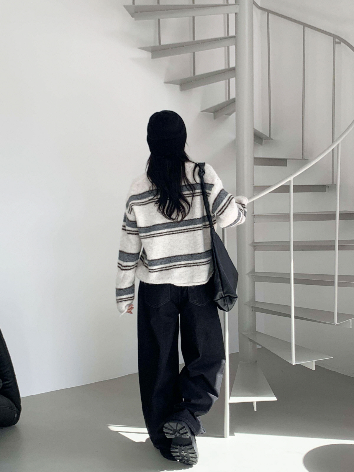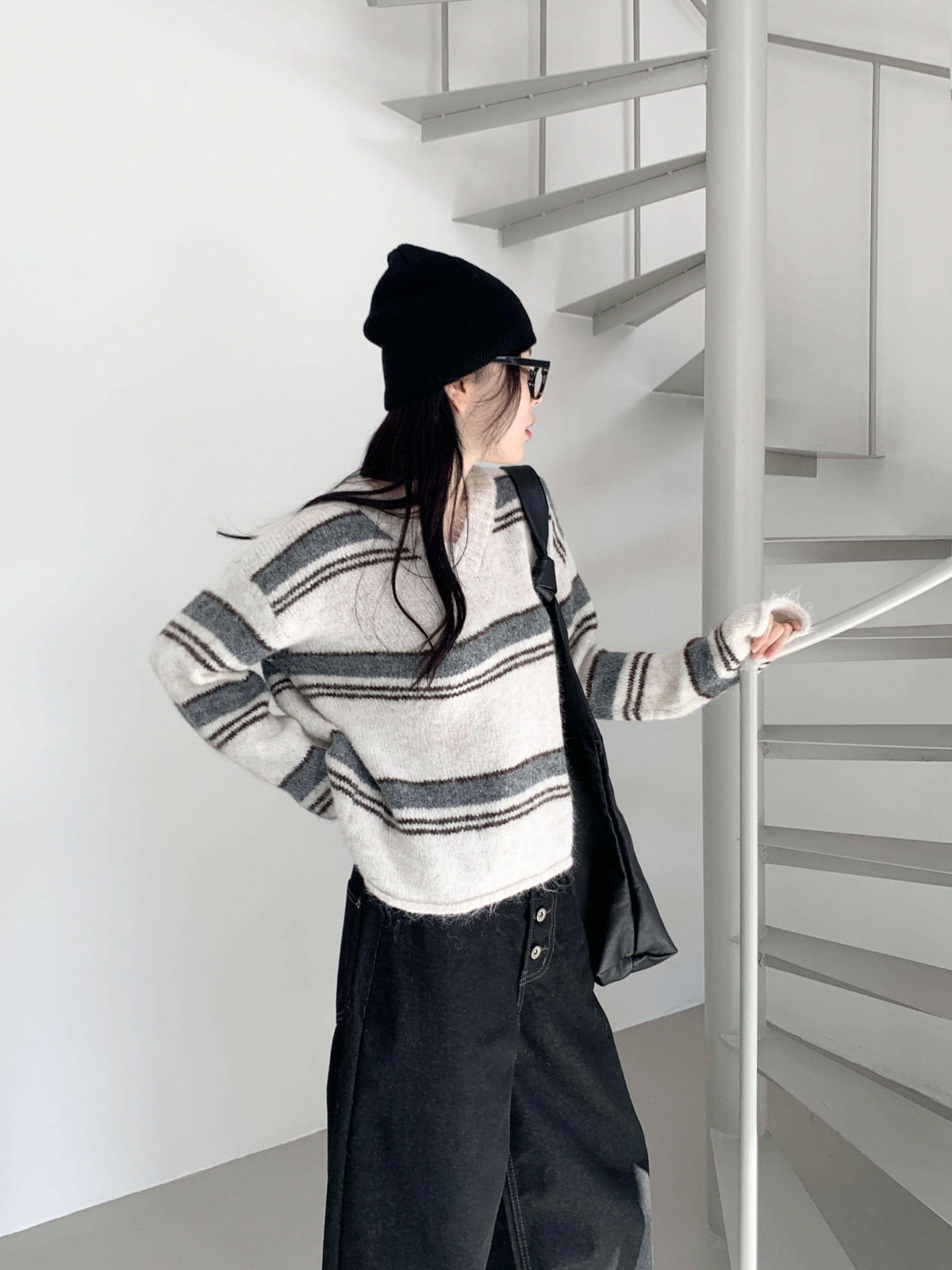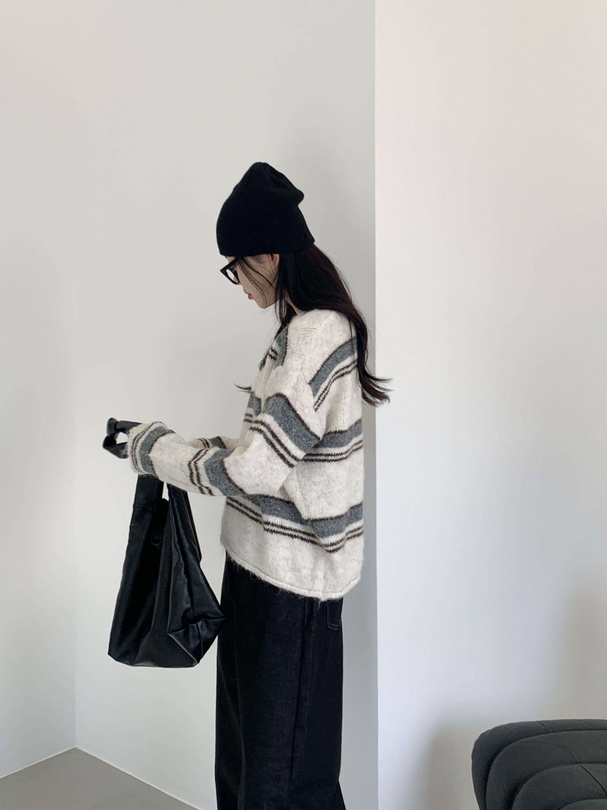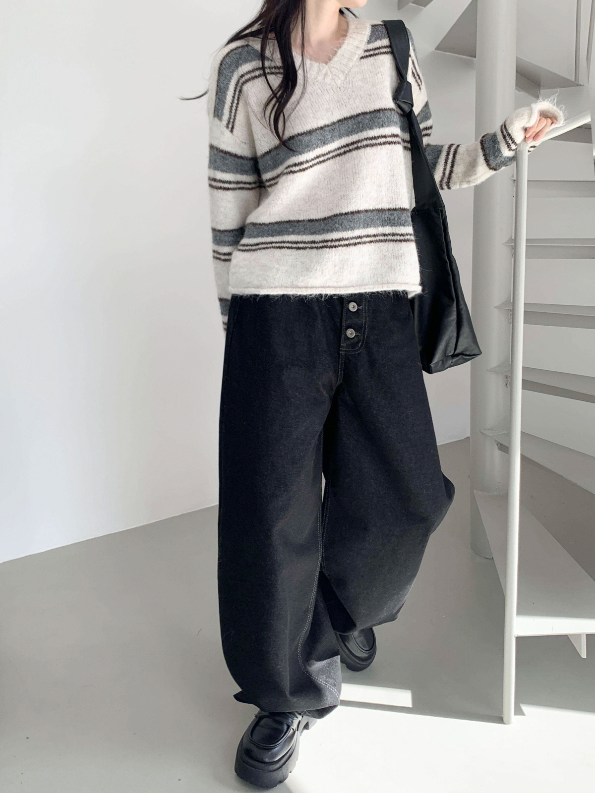 [ NT6049K5A-소프드 불규칙 단가라 오버핏 브이넥 니트 ]