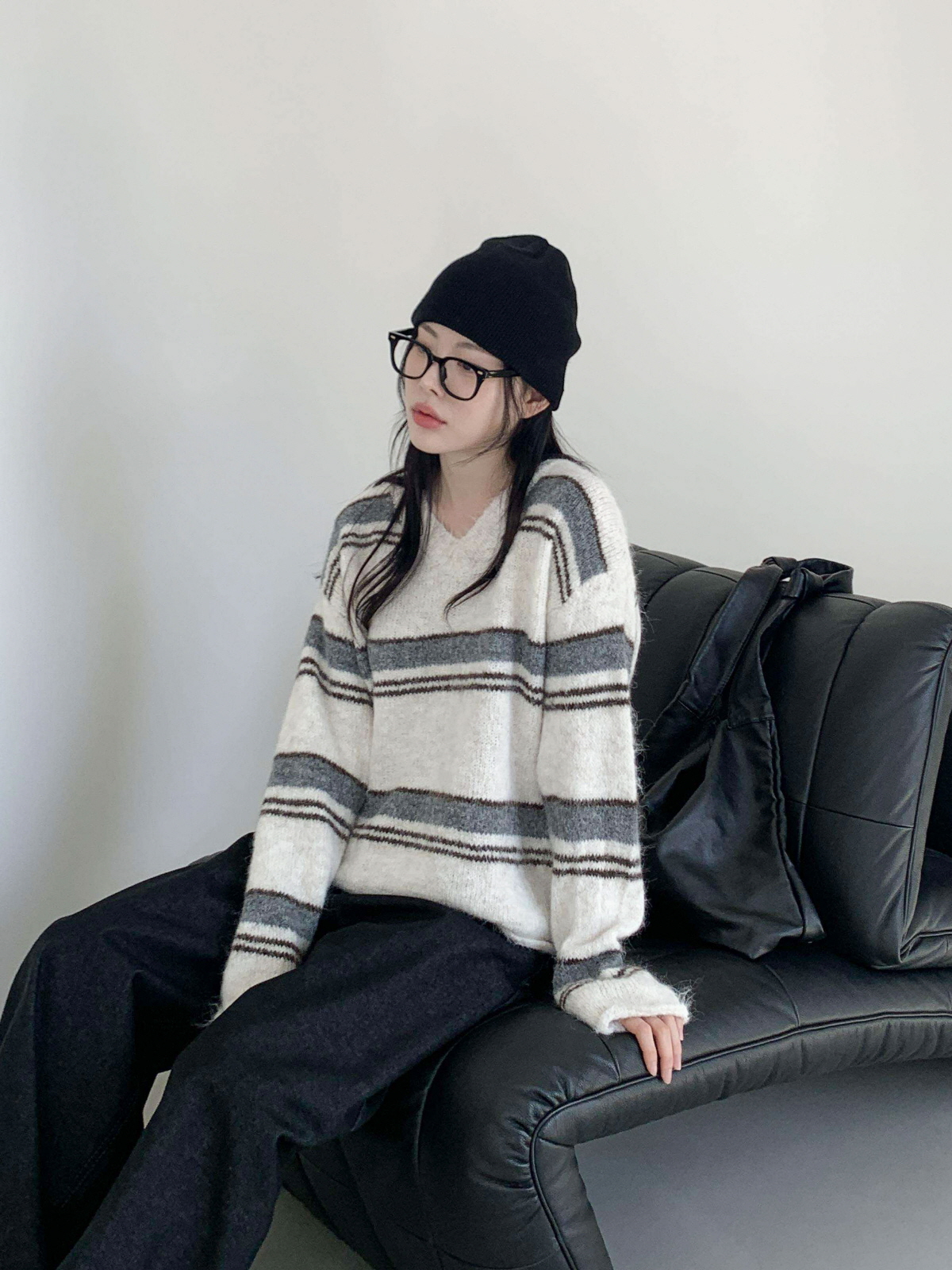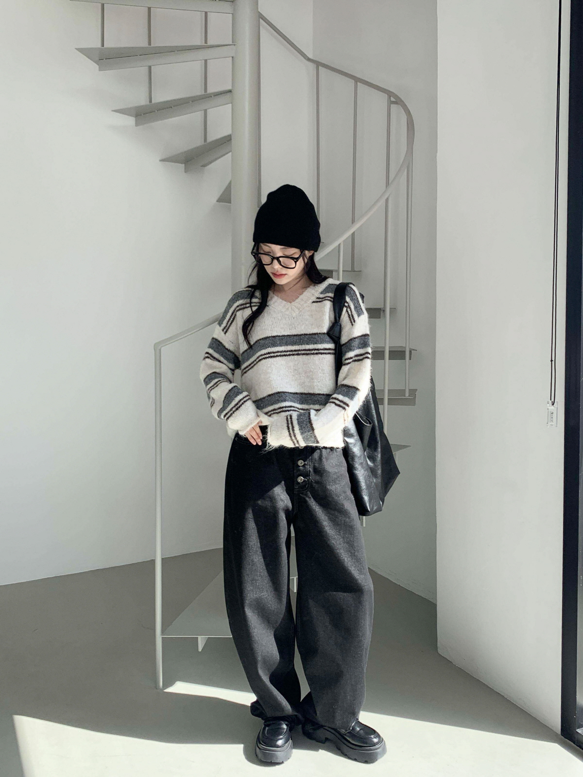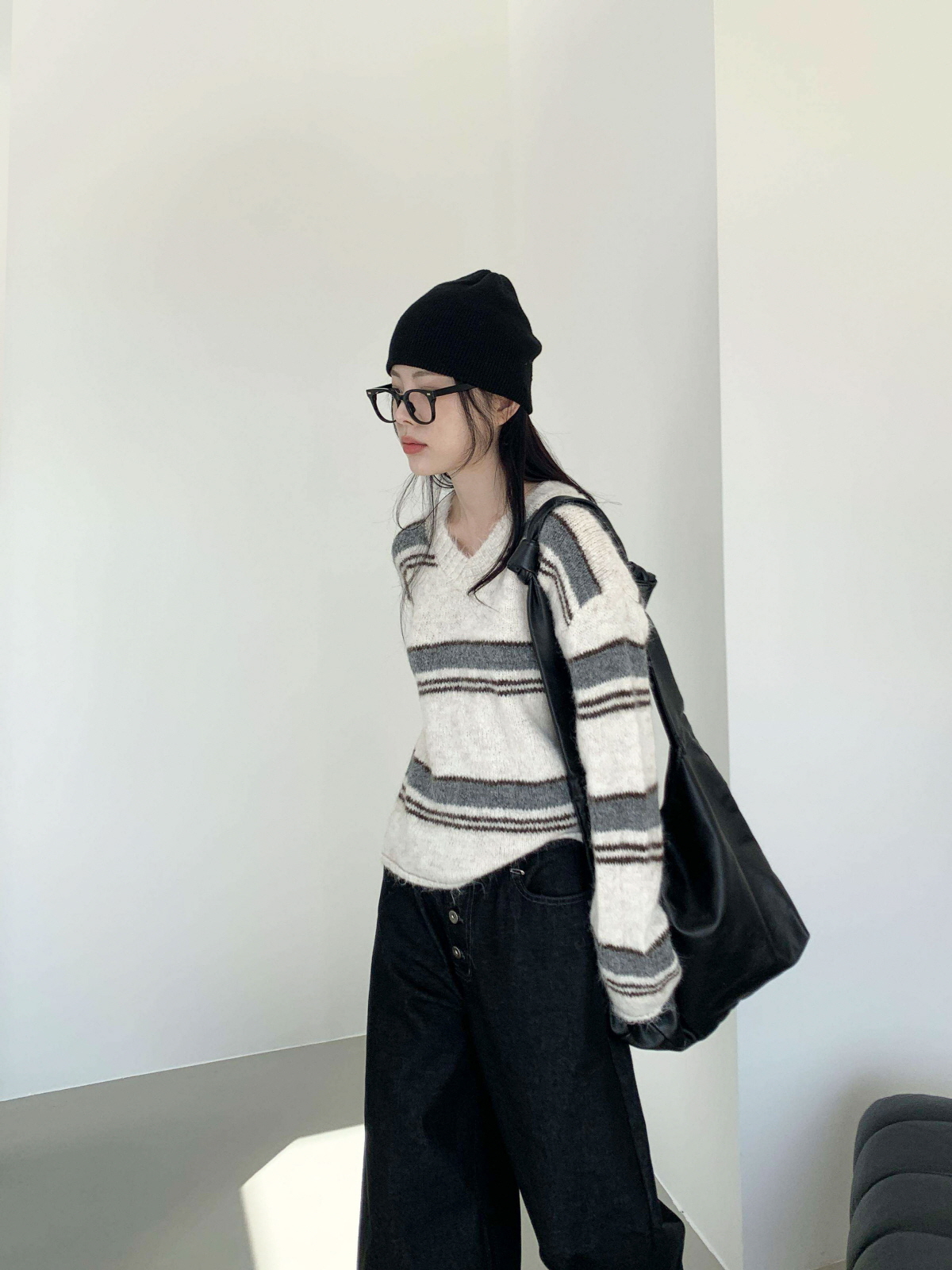 #니트#브이넥니트#여성니트#데일리니트#니트코디#데일리코디#페미닌#러블리#캐쥬얼#데일리#오버핏니트#겨울루즈핏니트