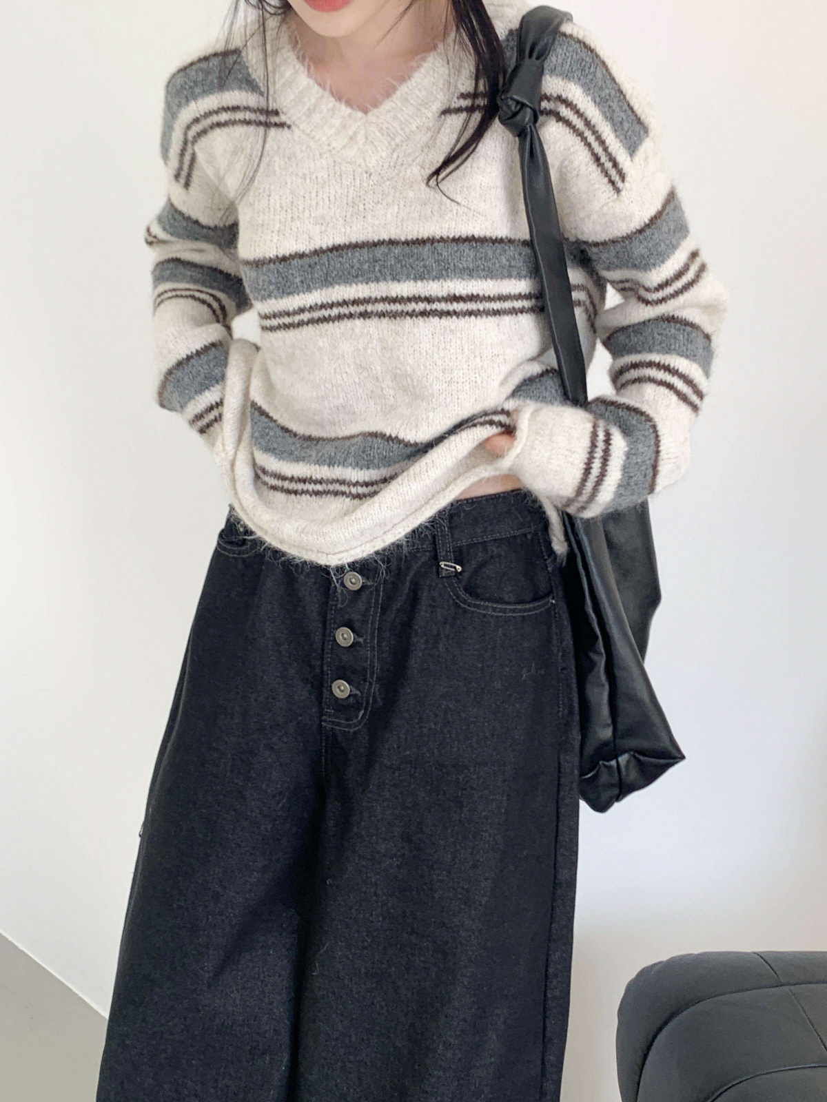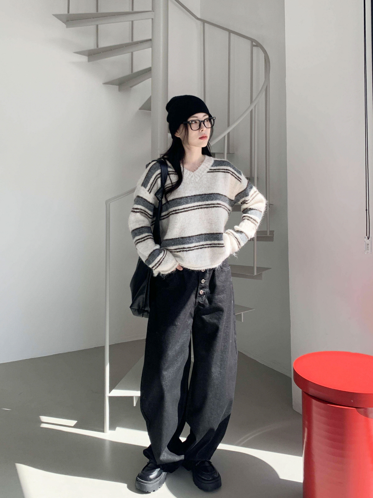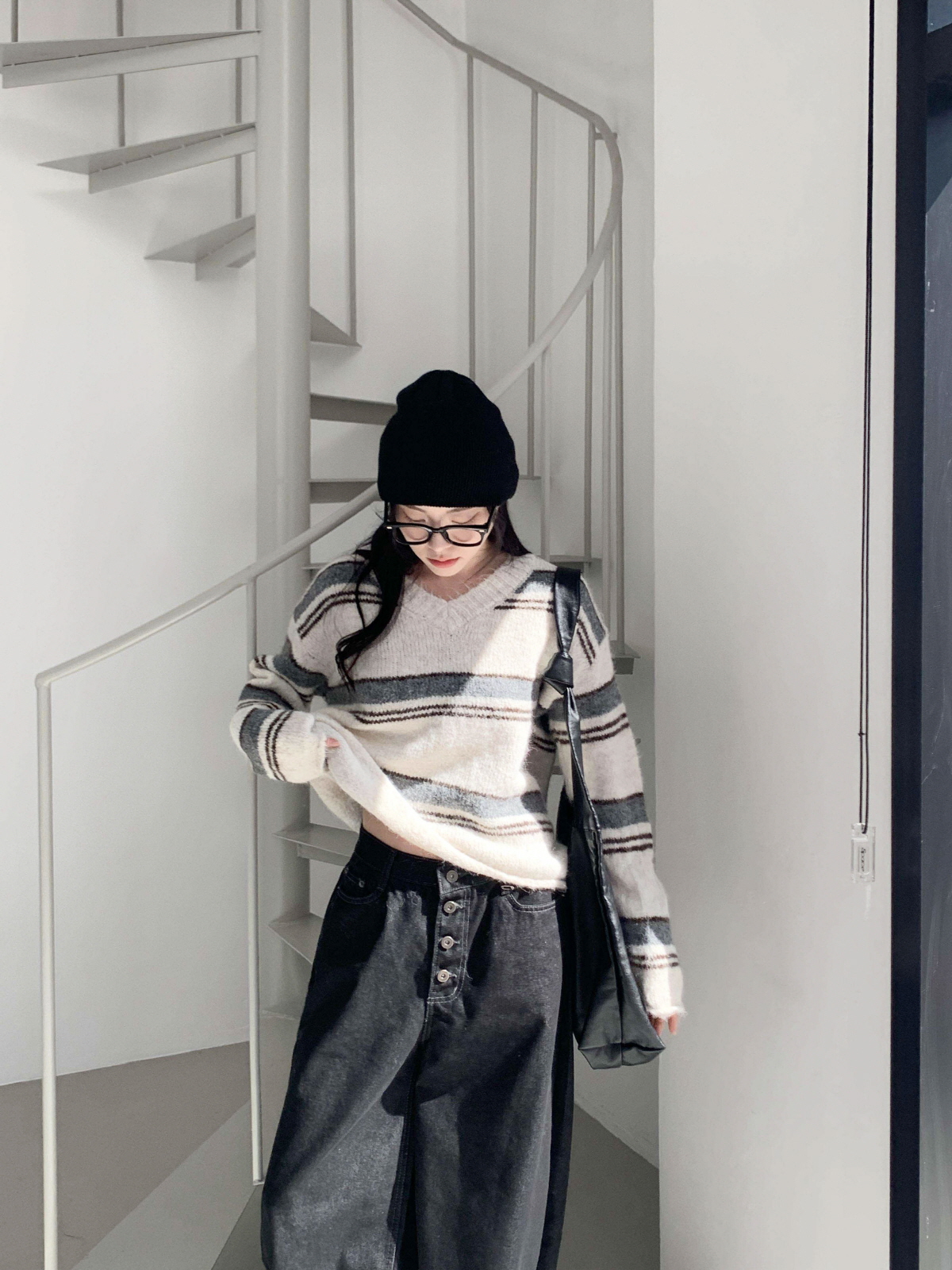 #니트#브이넥니트#여성니트#데일리니트#니트코디#데일리코디#페미닌#러블리#캐쥬얼#데일리#오버핏니트#겨울루즈핏니트