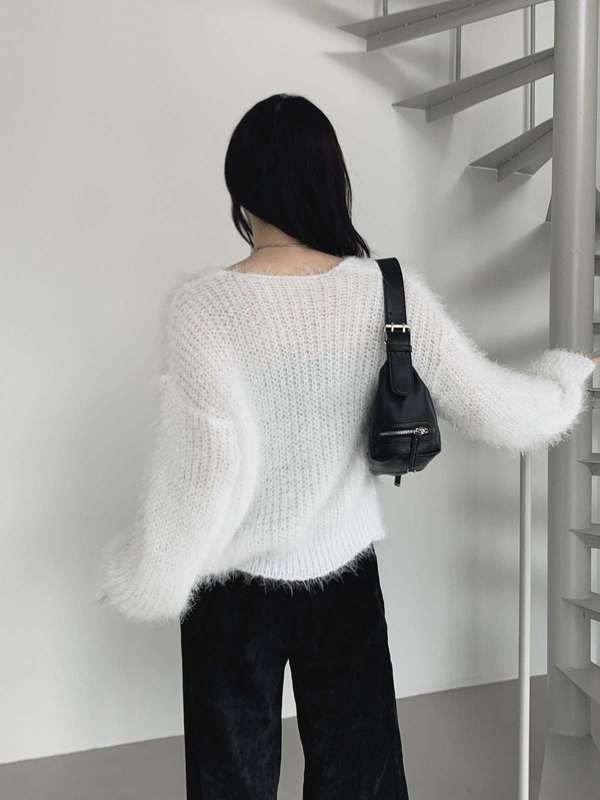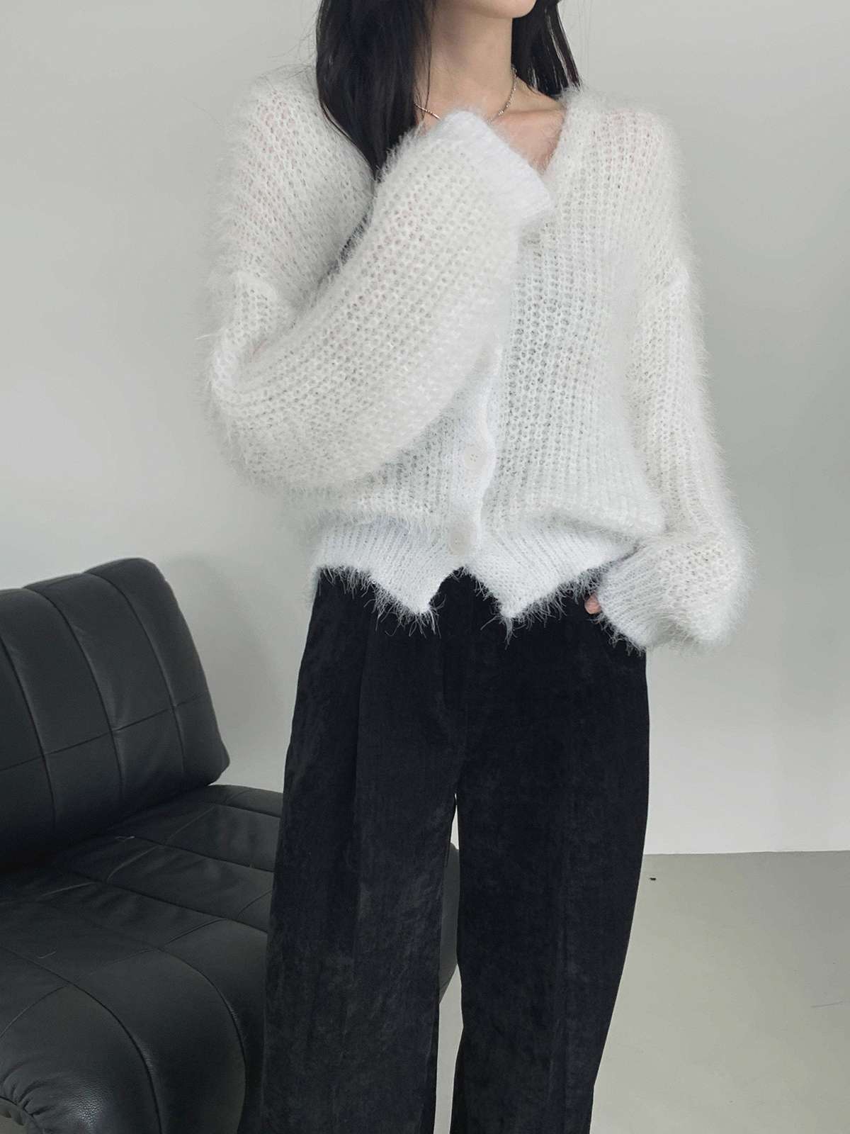 여리여리한 무드에 루즈핏 부클 울 니트 가디건