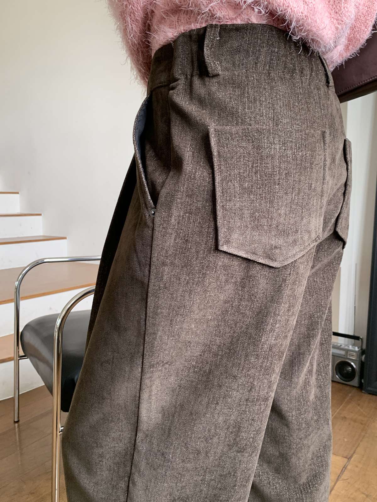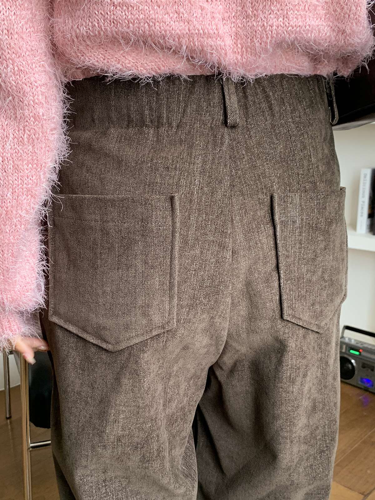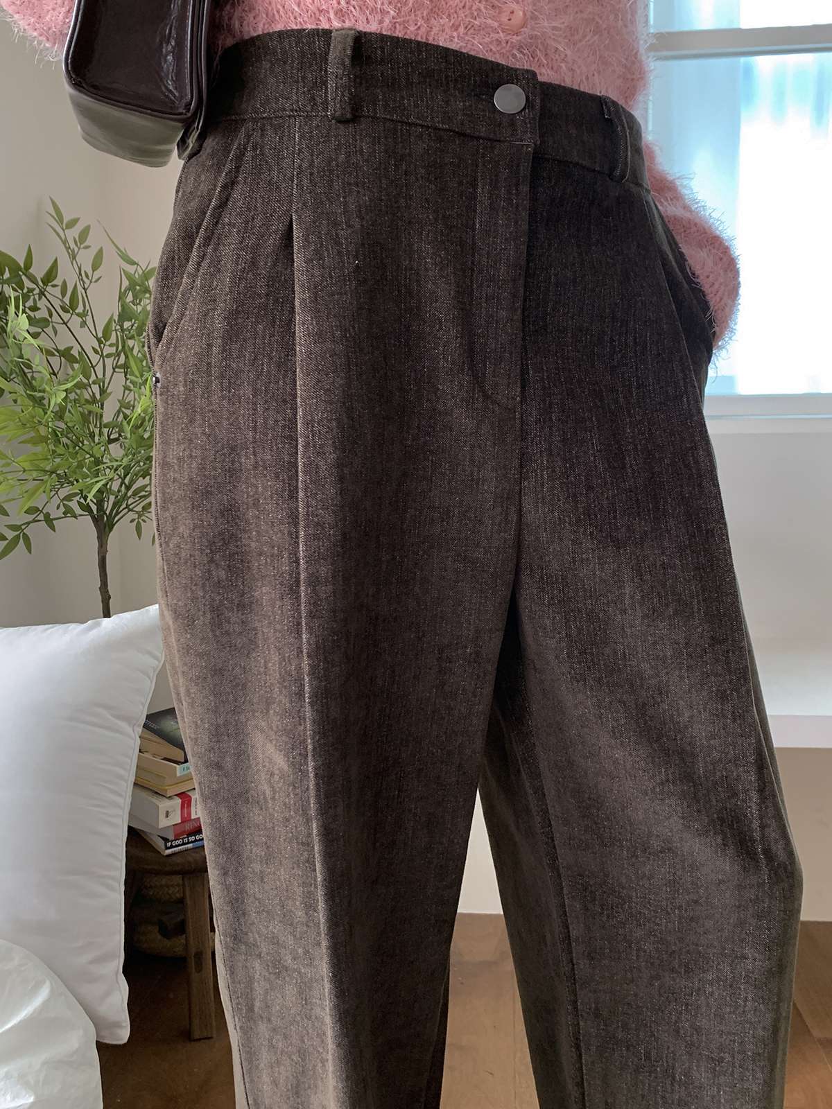고급스러운 질감의 스웨이드 핀턱 배기핏 기모 슬랙스