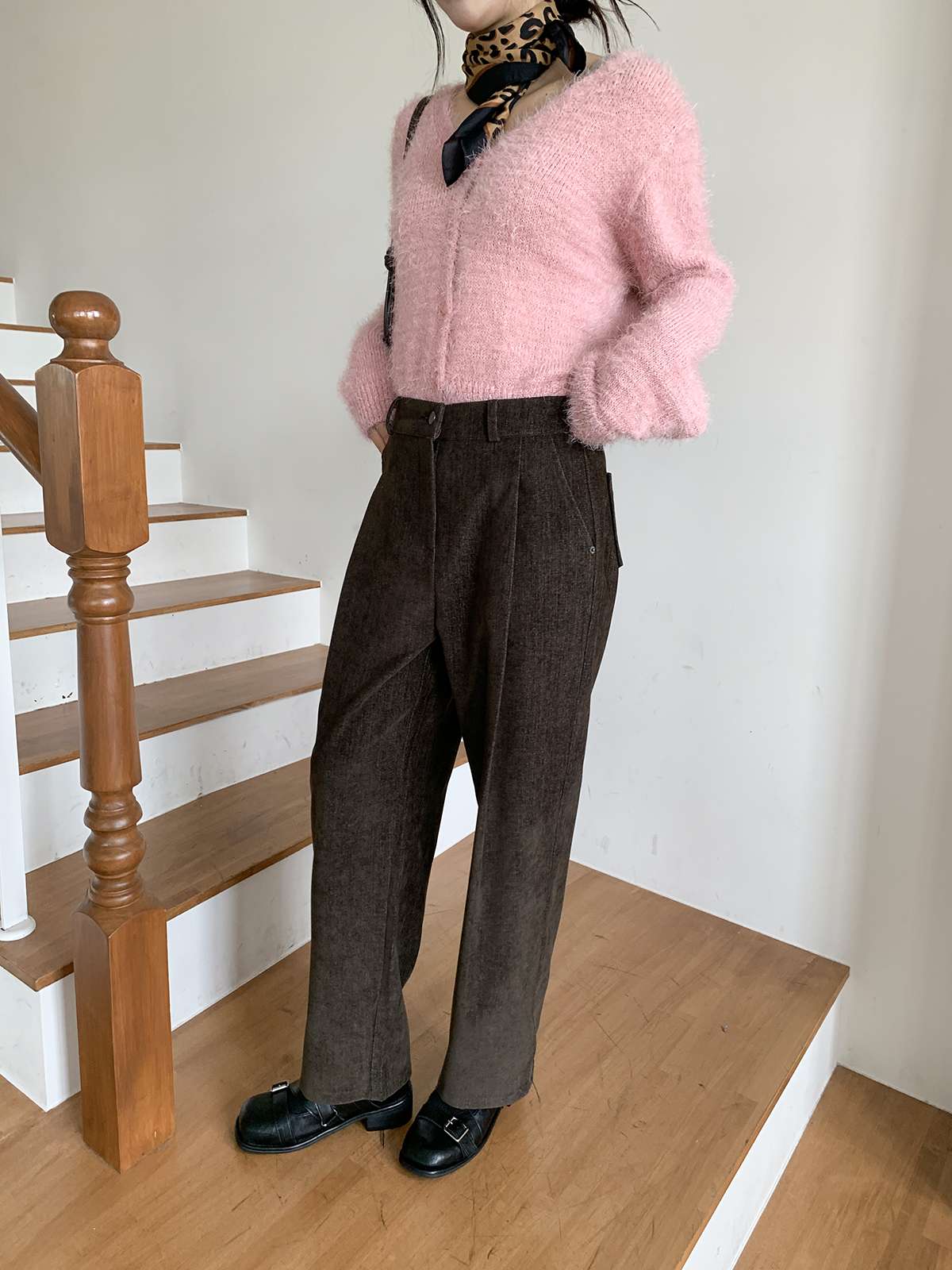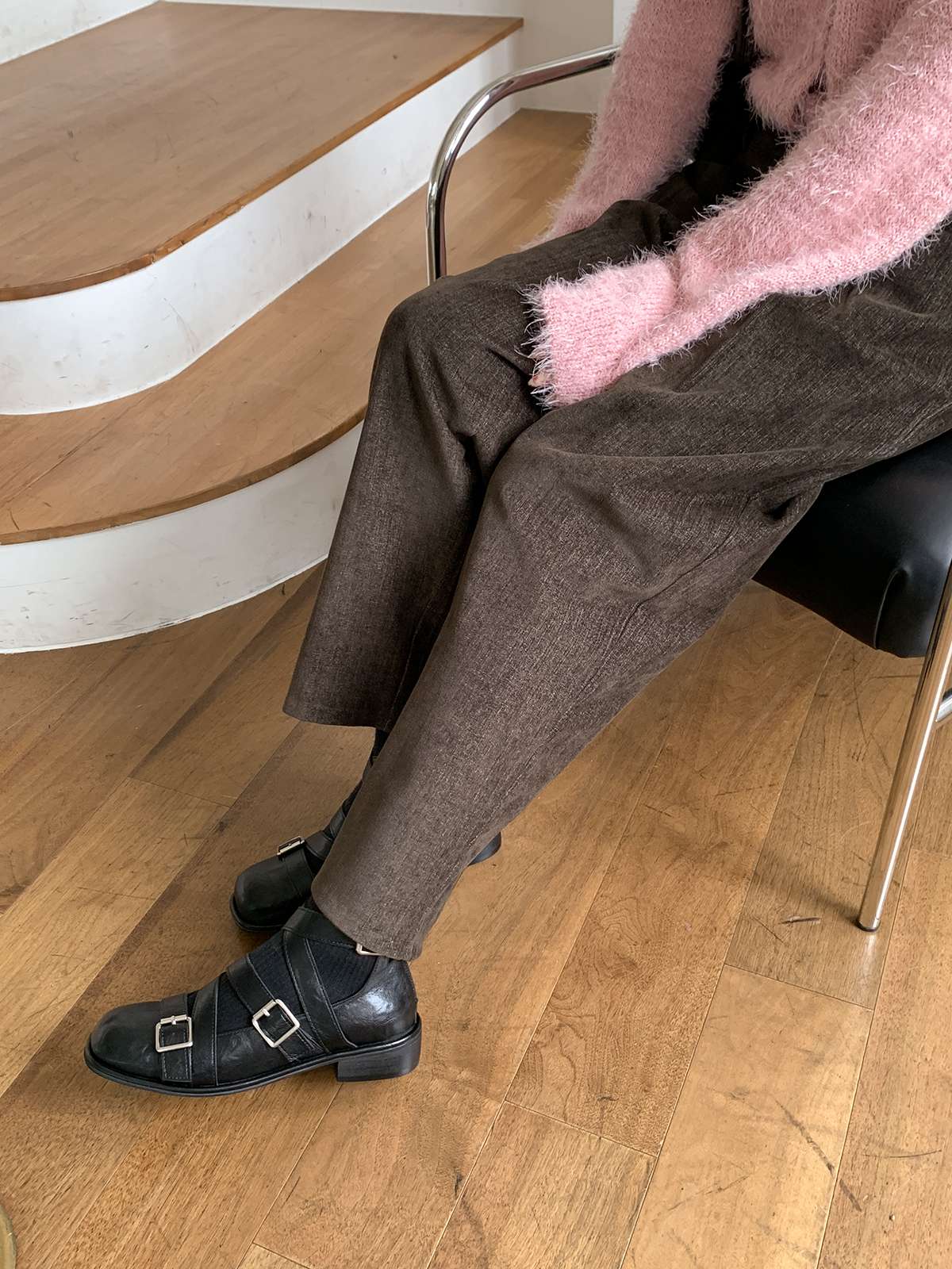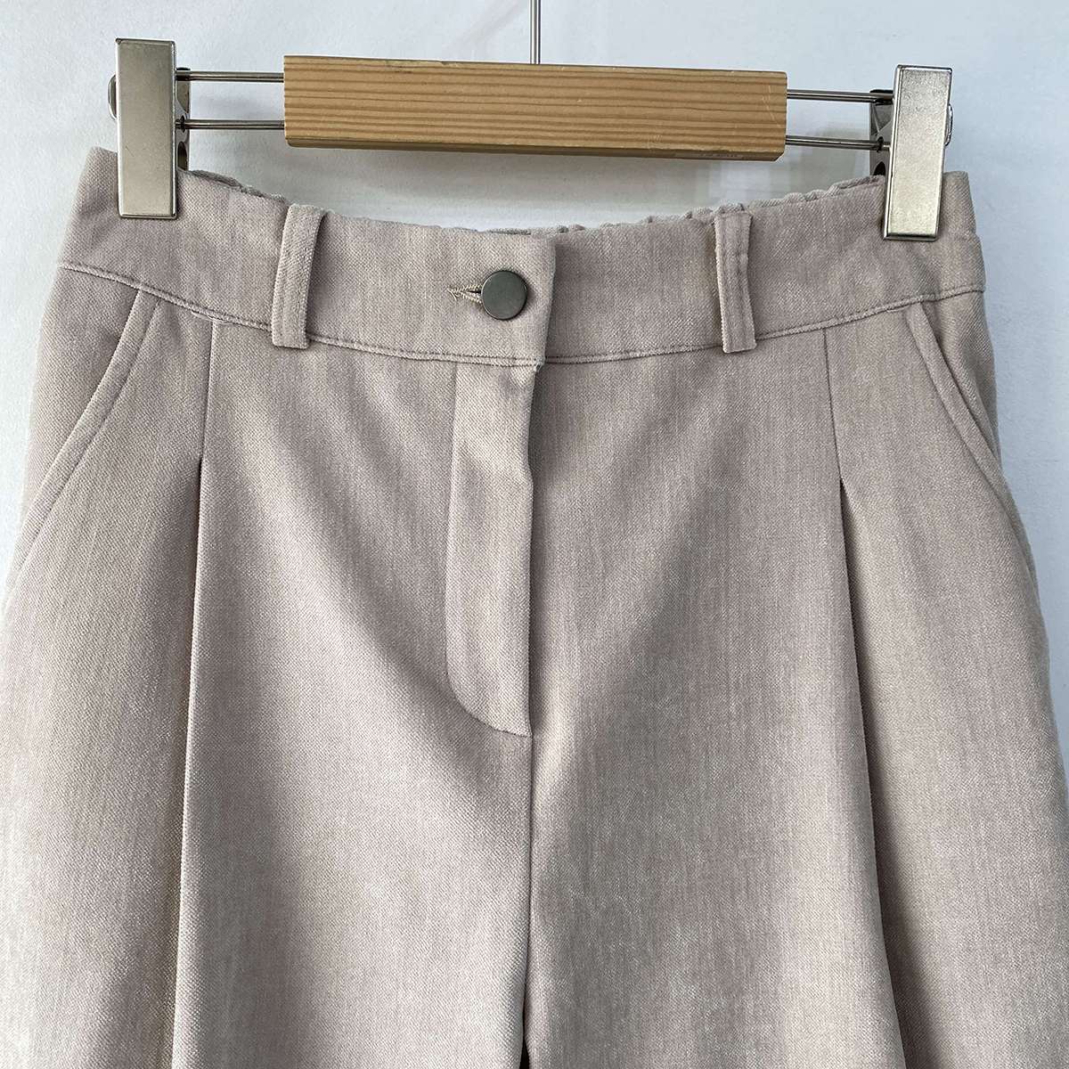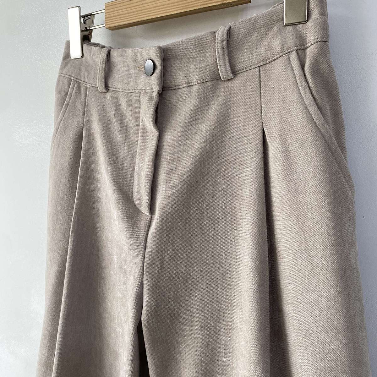 고급스러운 질감의 스웨이드 핀턱 배기핏 기모 슬랙스
