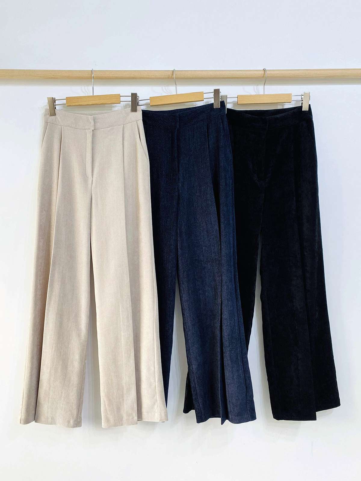 [ PT15550K5A-디플리 원핀턱 벨벳 와이드 슬랙스 ]