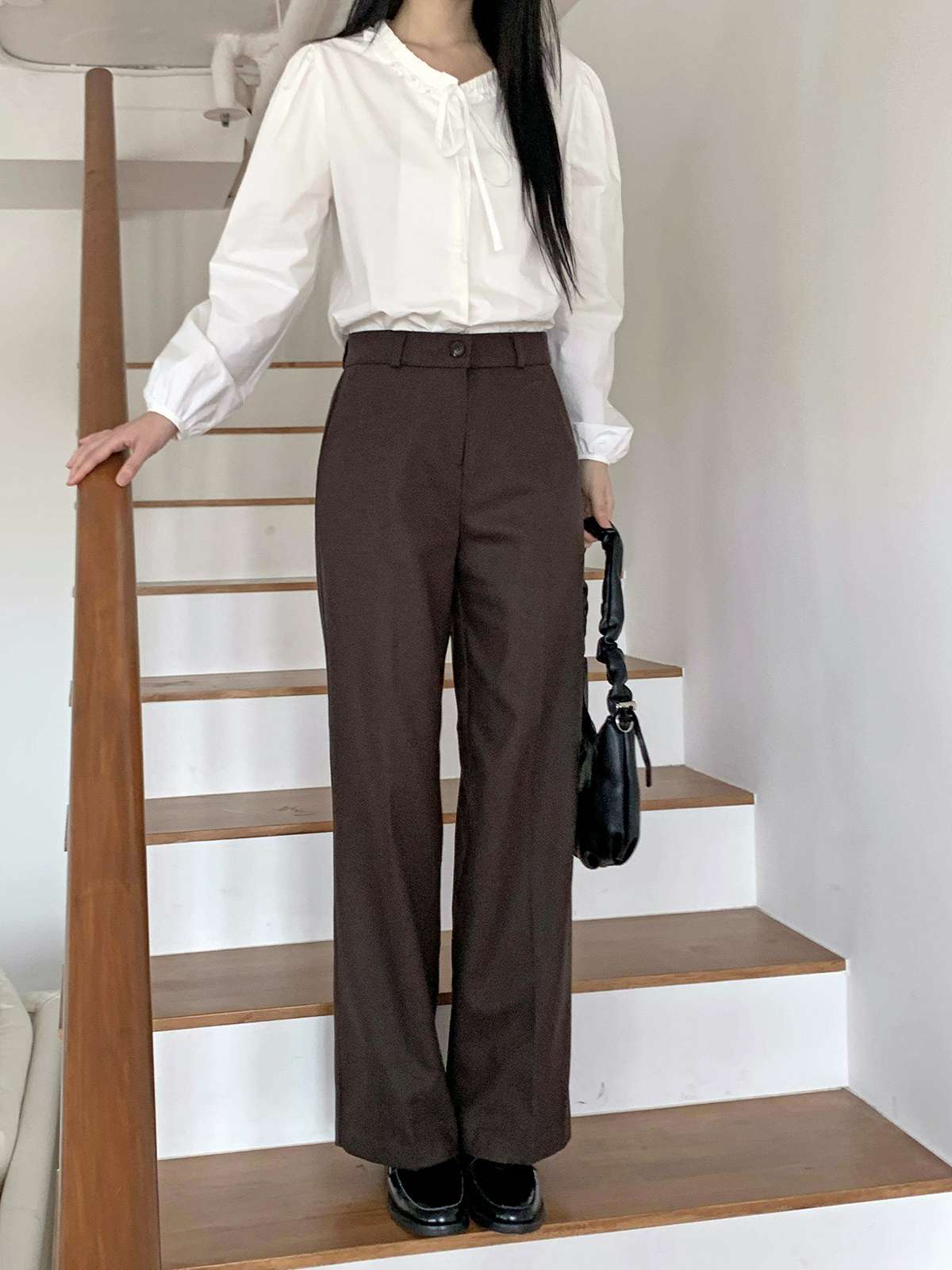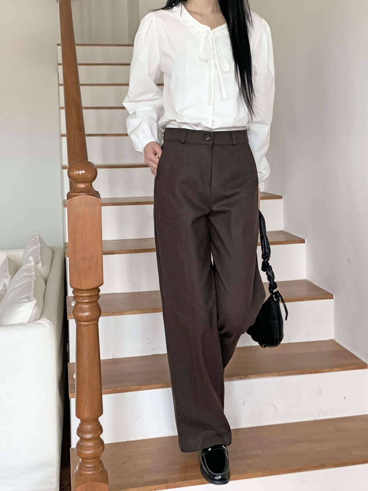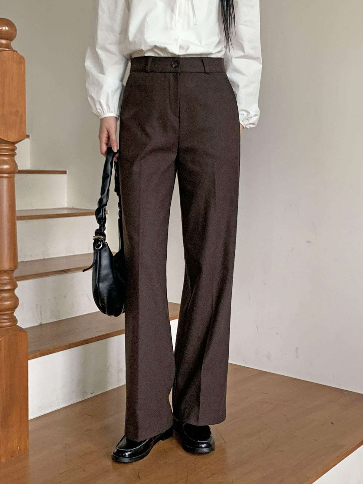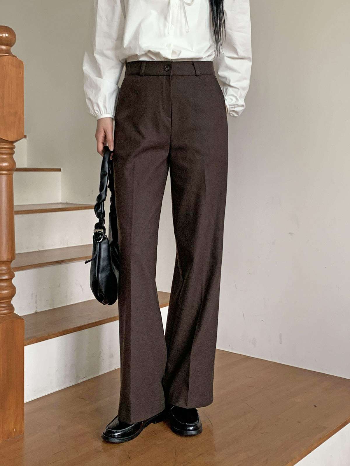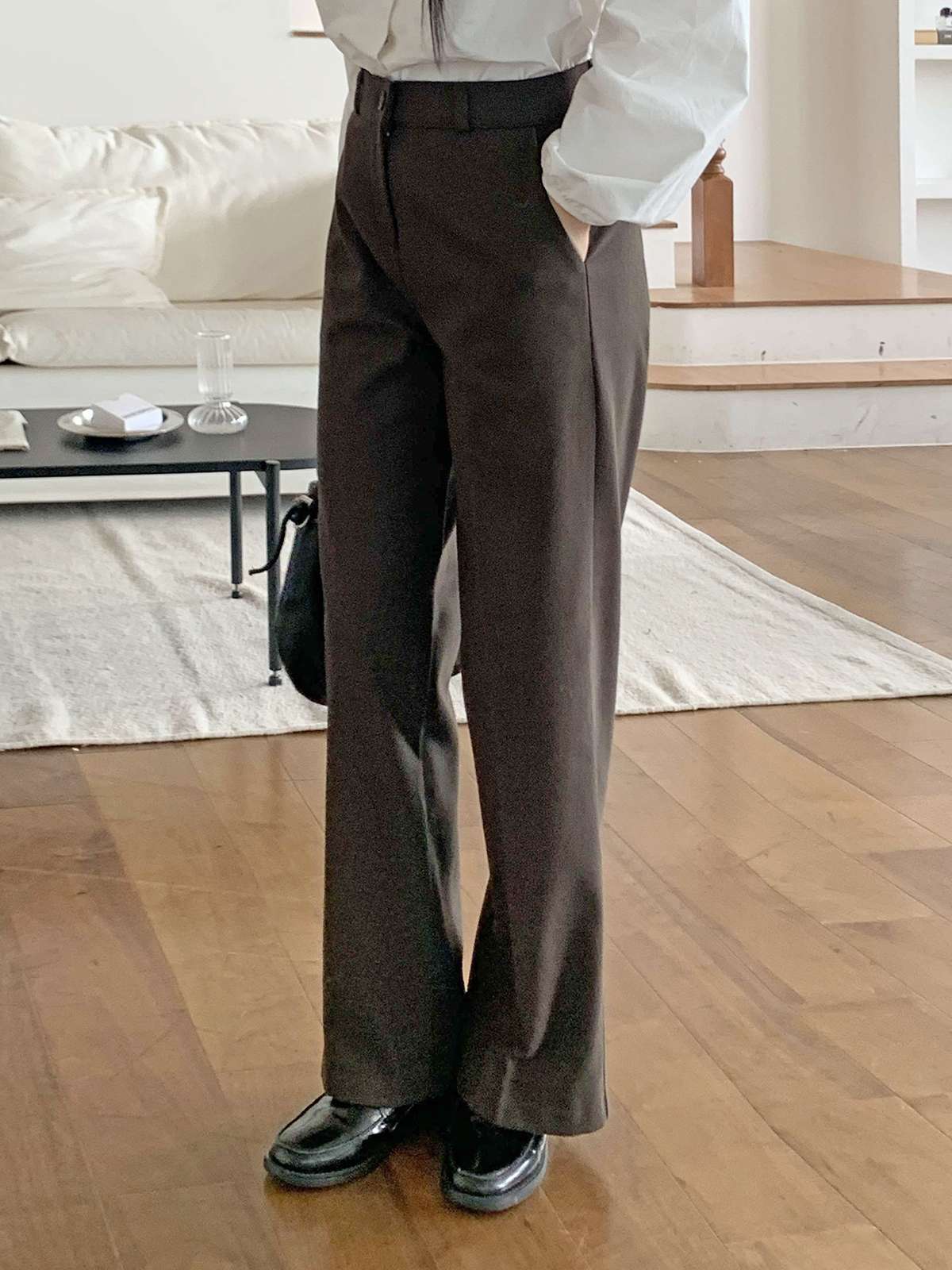 따뜻하고 단정한 모직 기모 일자 슬랙스