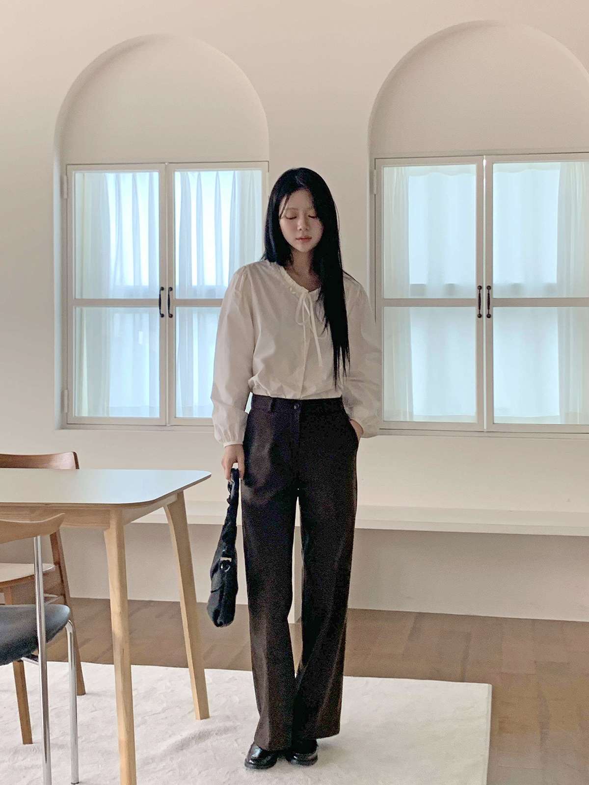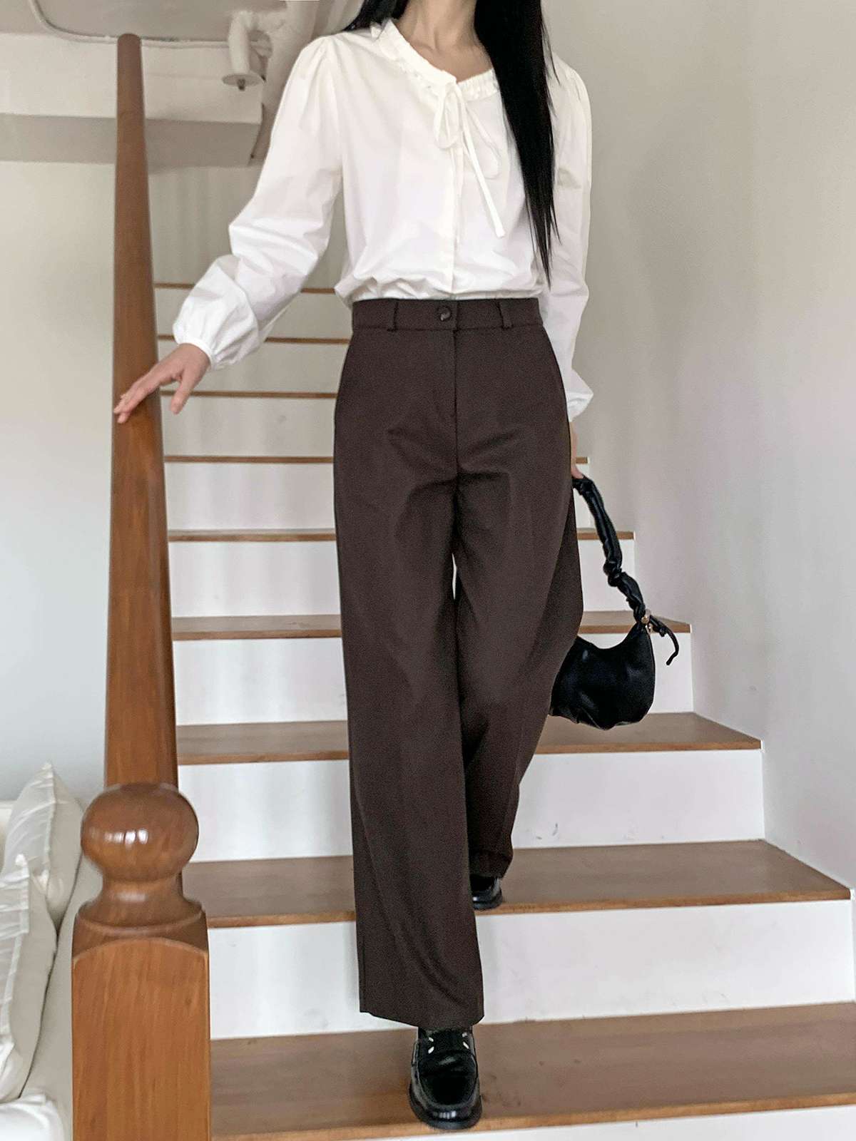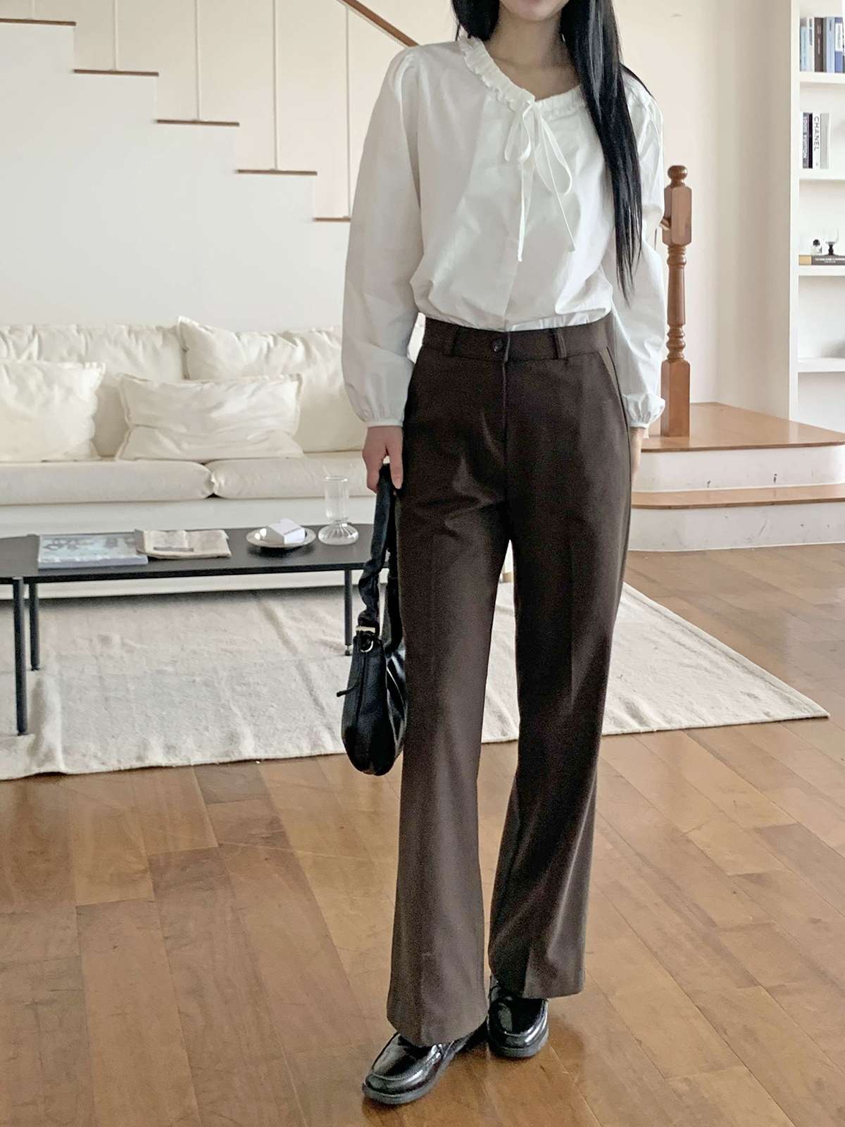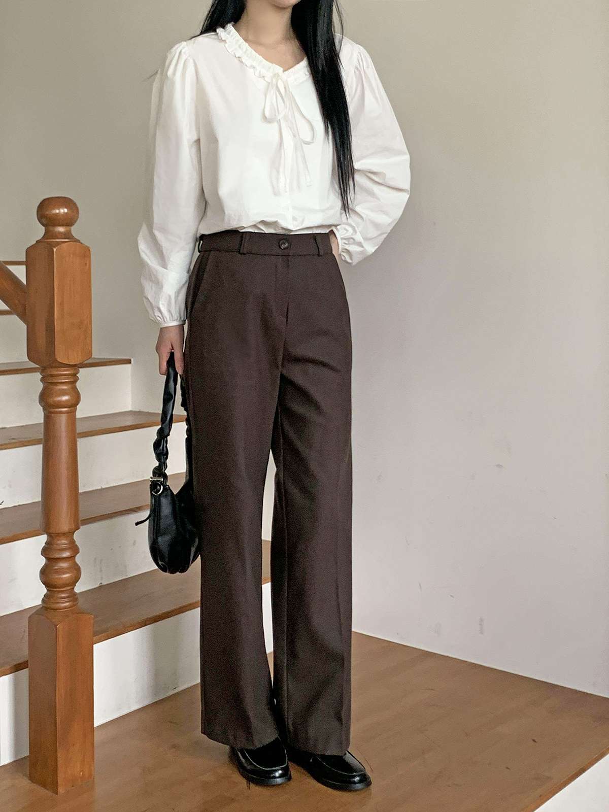 따뜻하고 단정한 모직 기모 일자 슬랙스