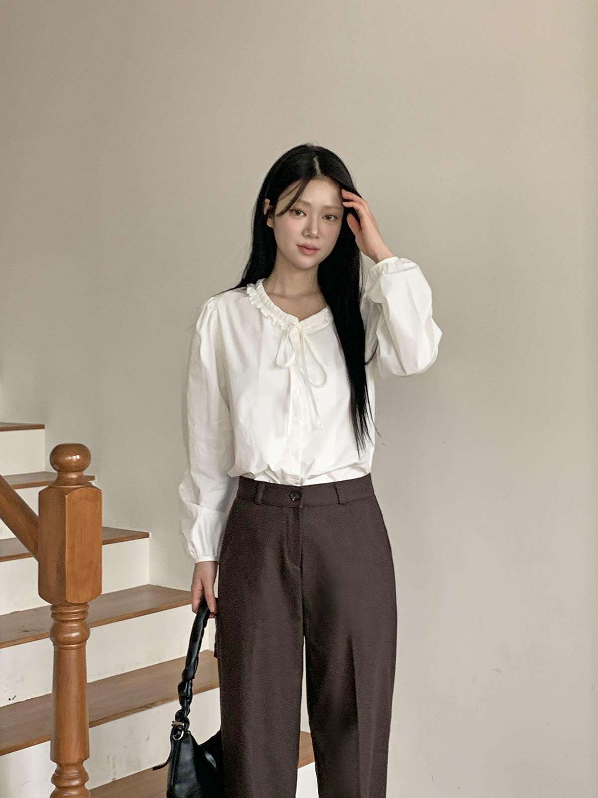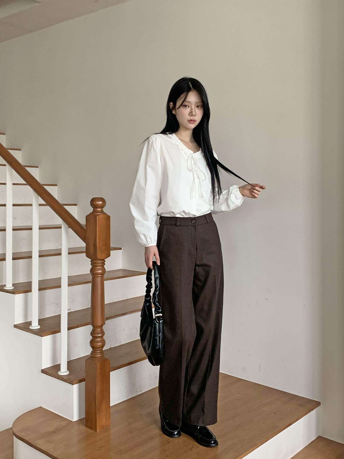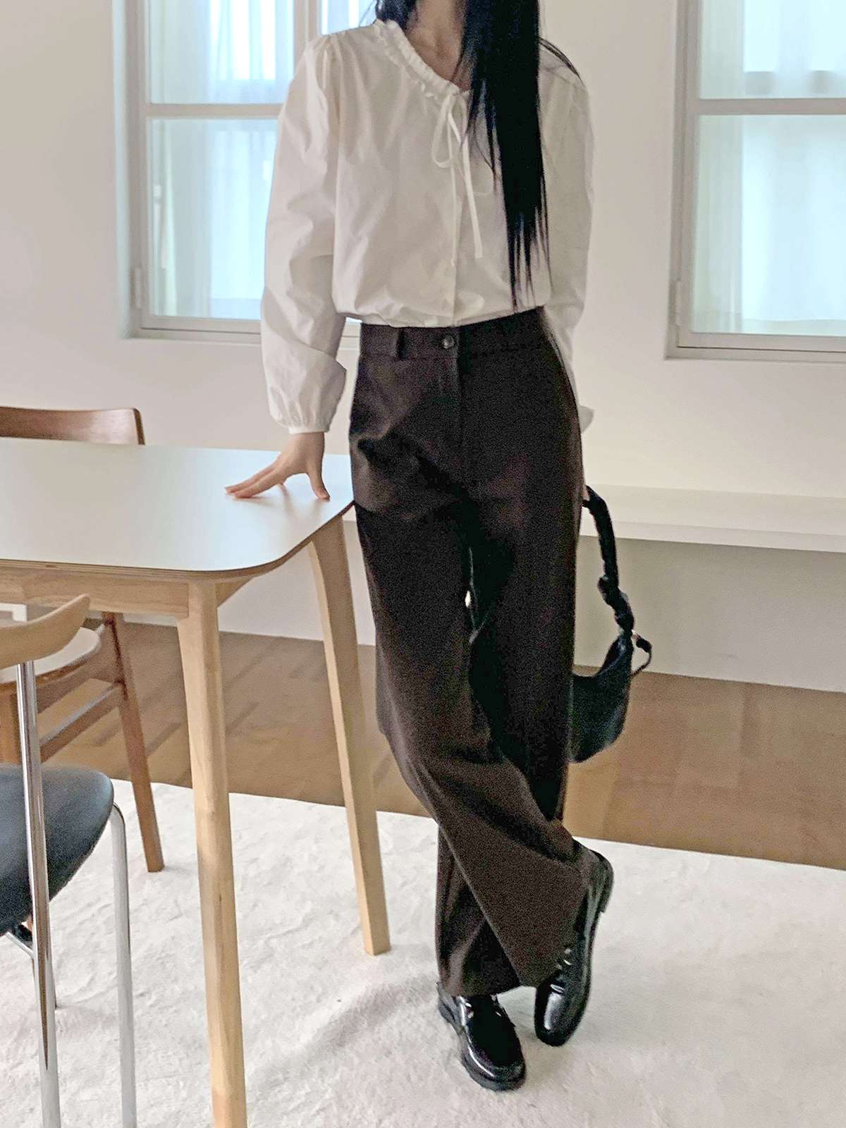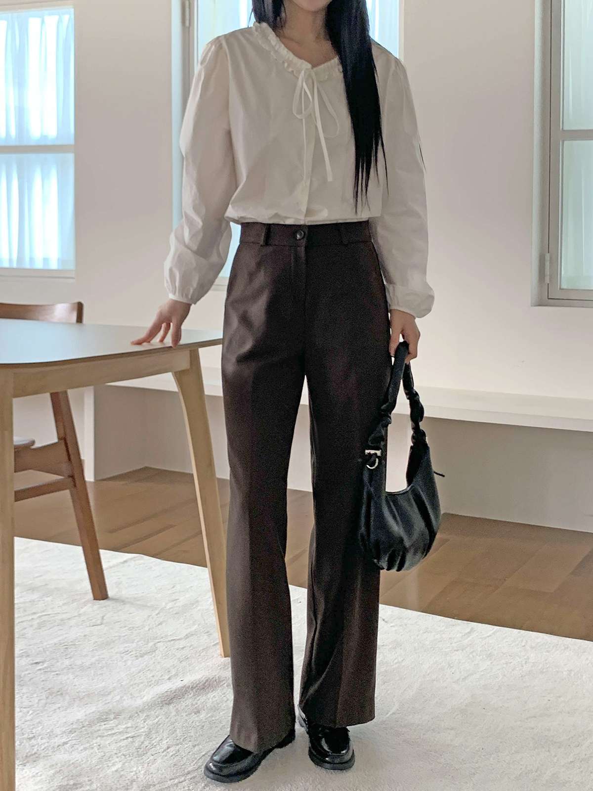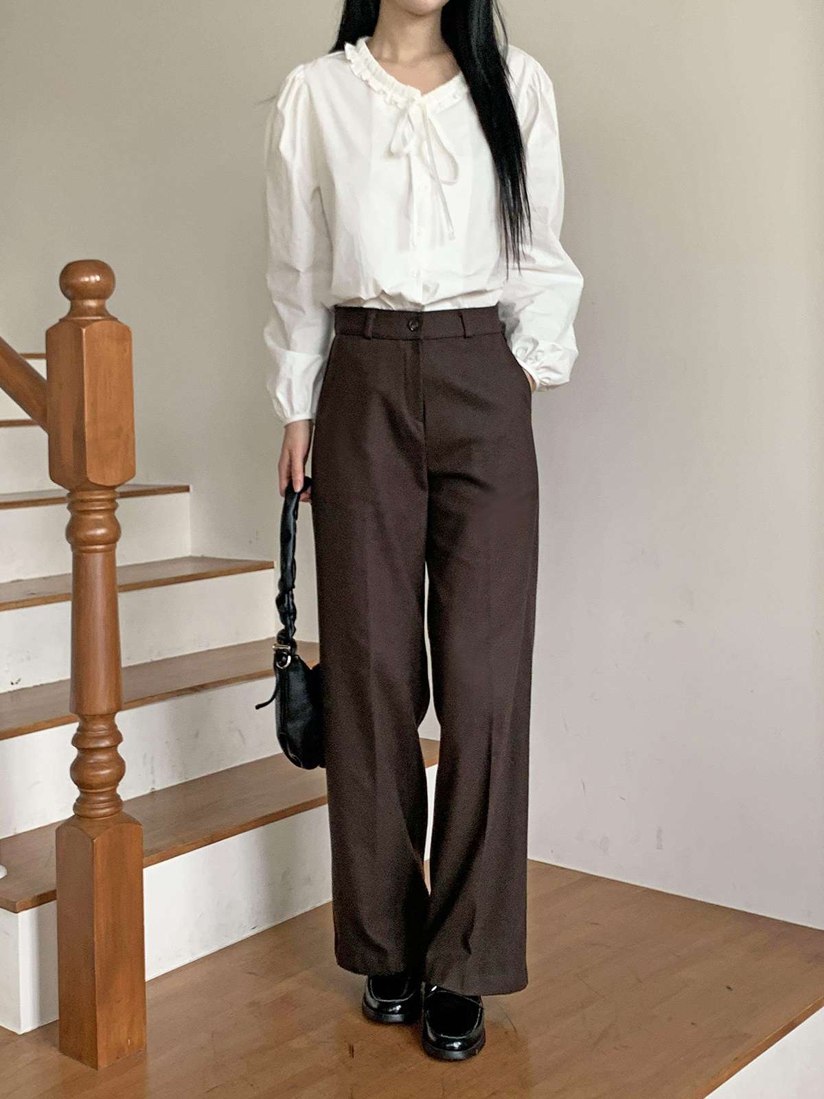 따뜻하고 단정한 모직 기모 일자 슬랙스