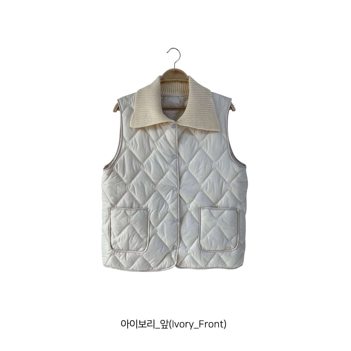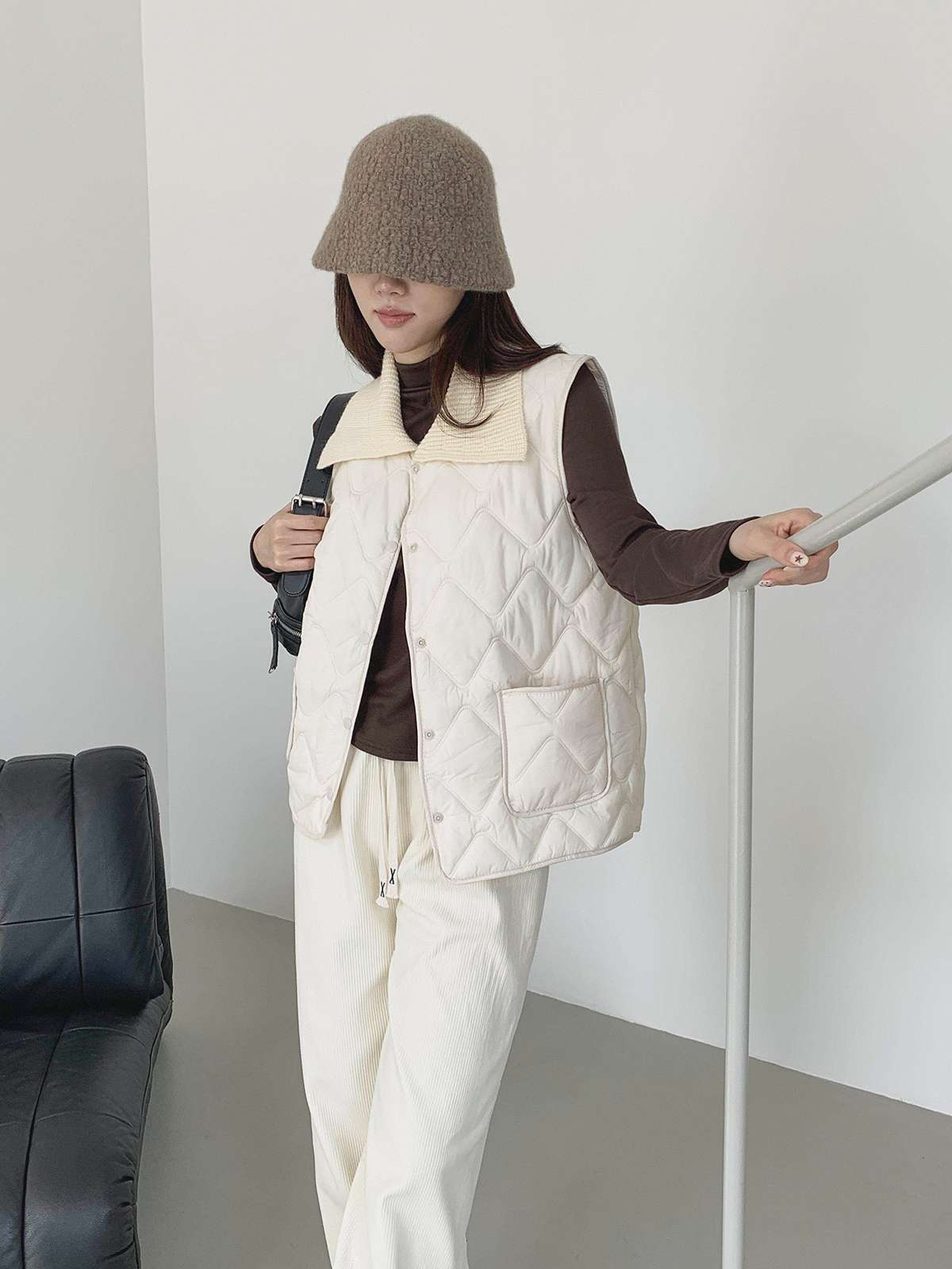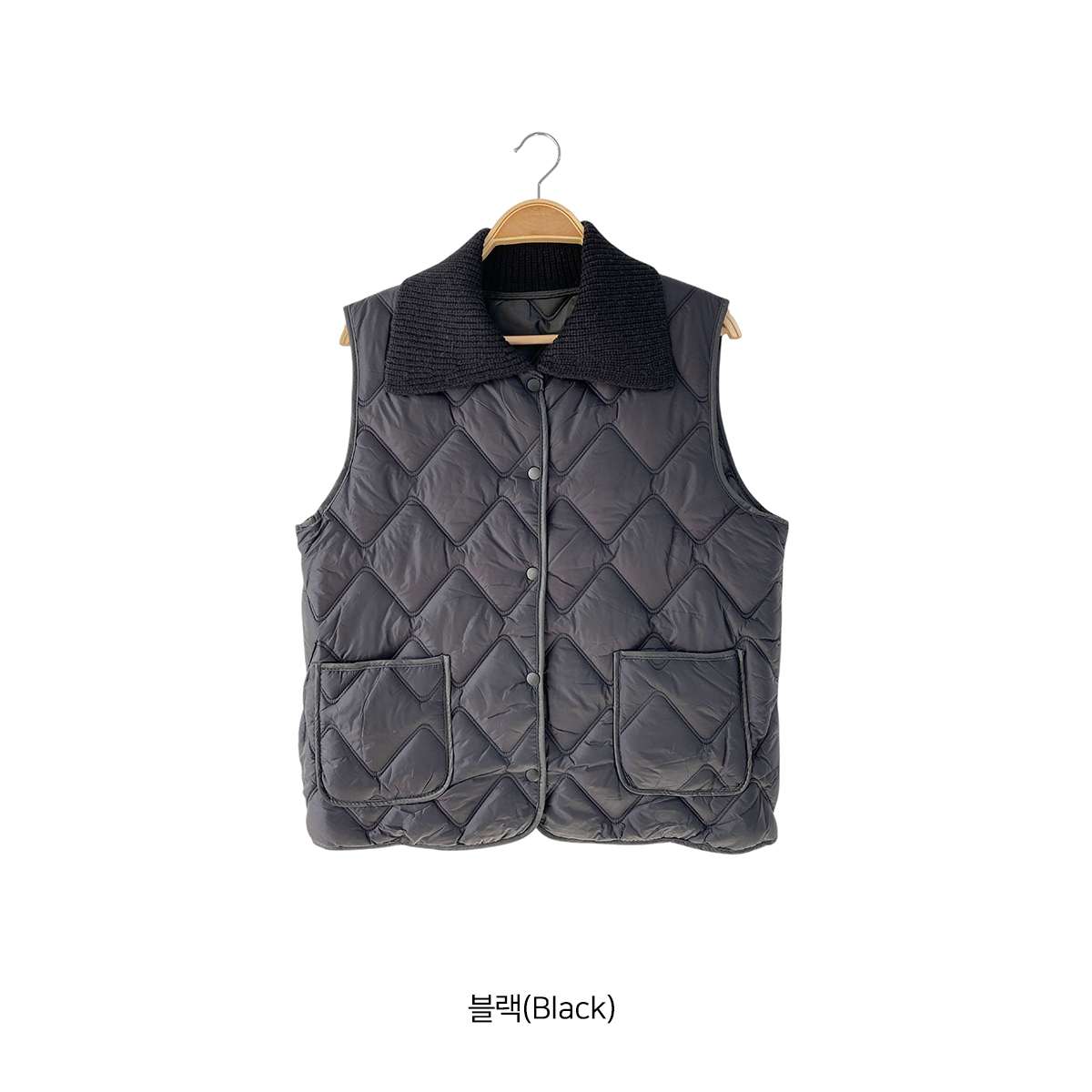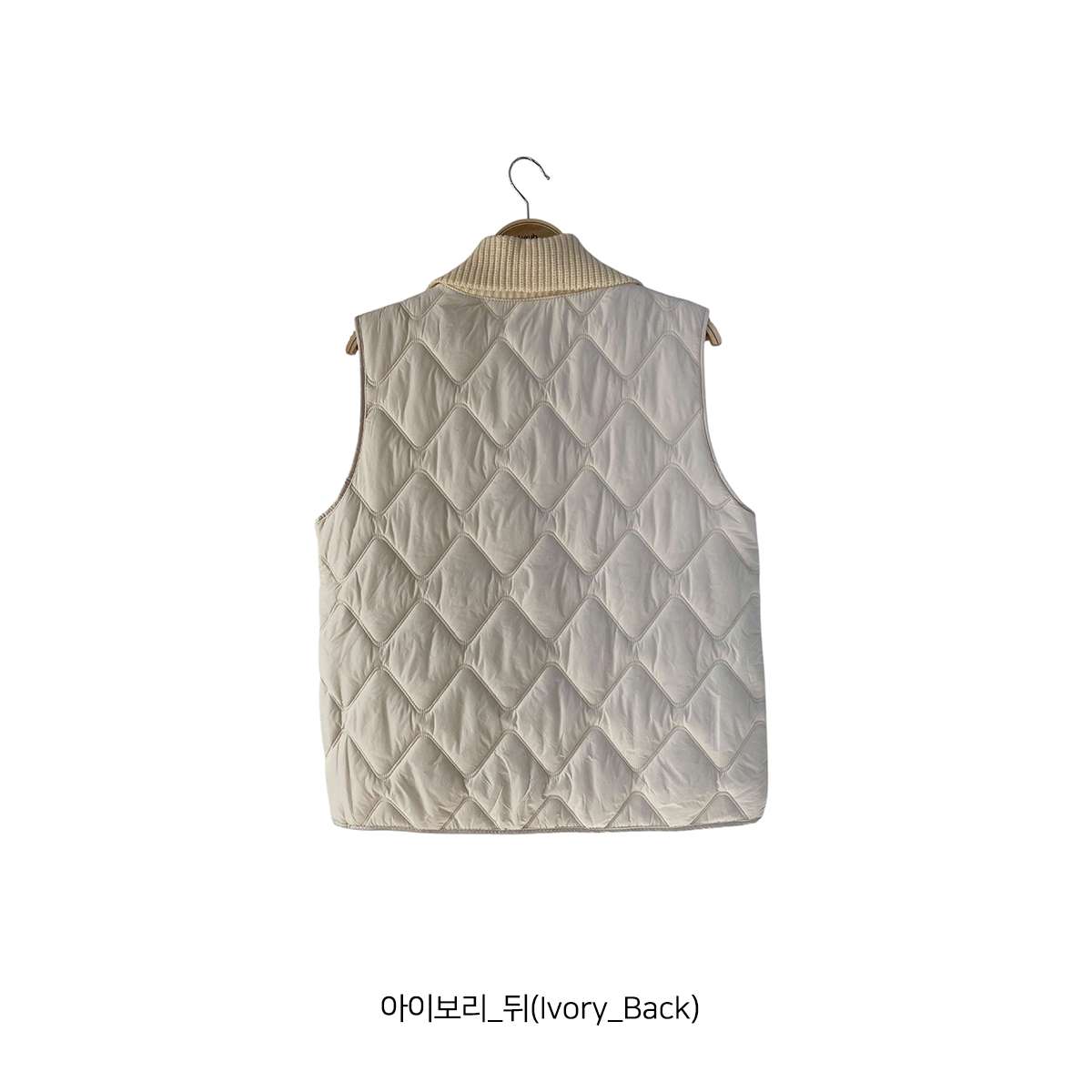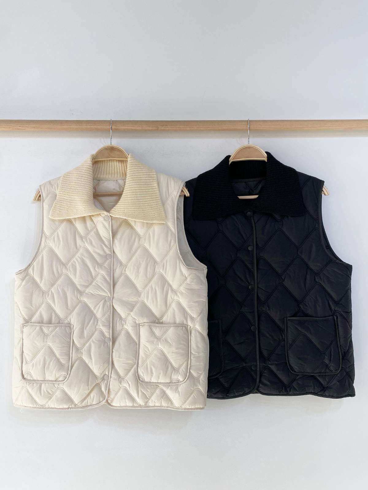 [ VT1398K5A-로렌블 니트 카라 퀼팅 경량 패딩 조끼 ]