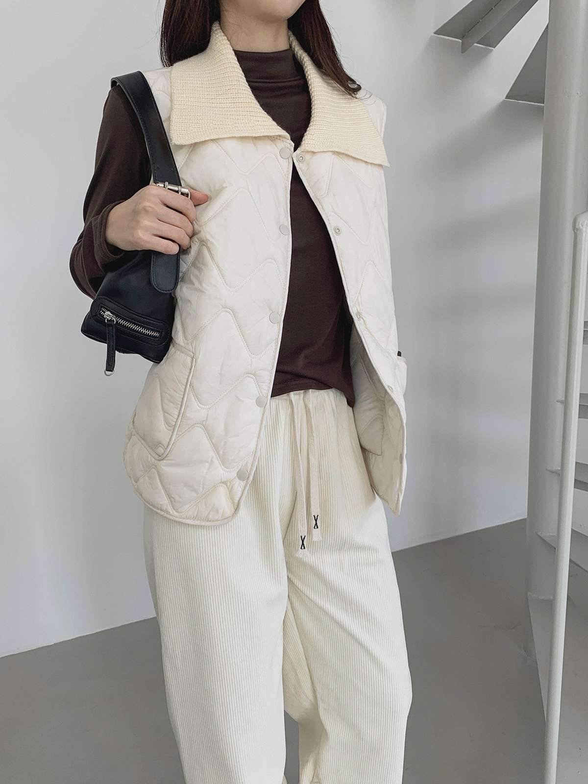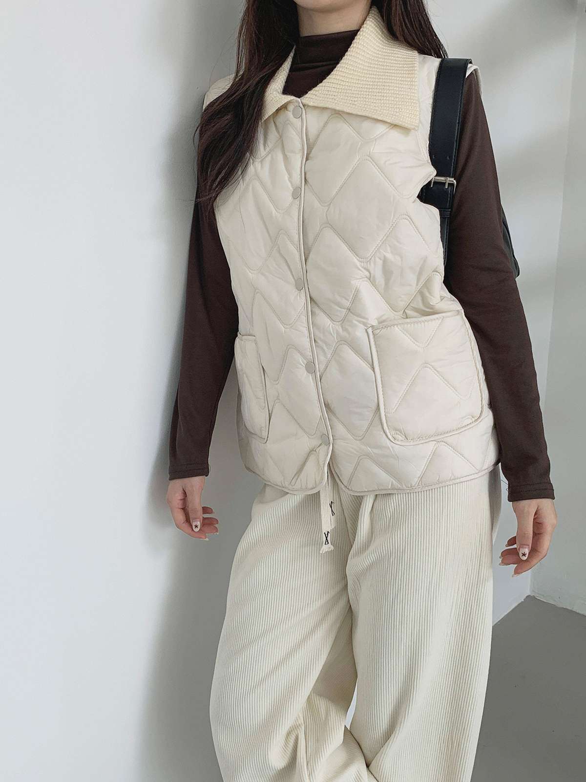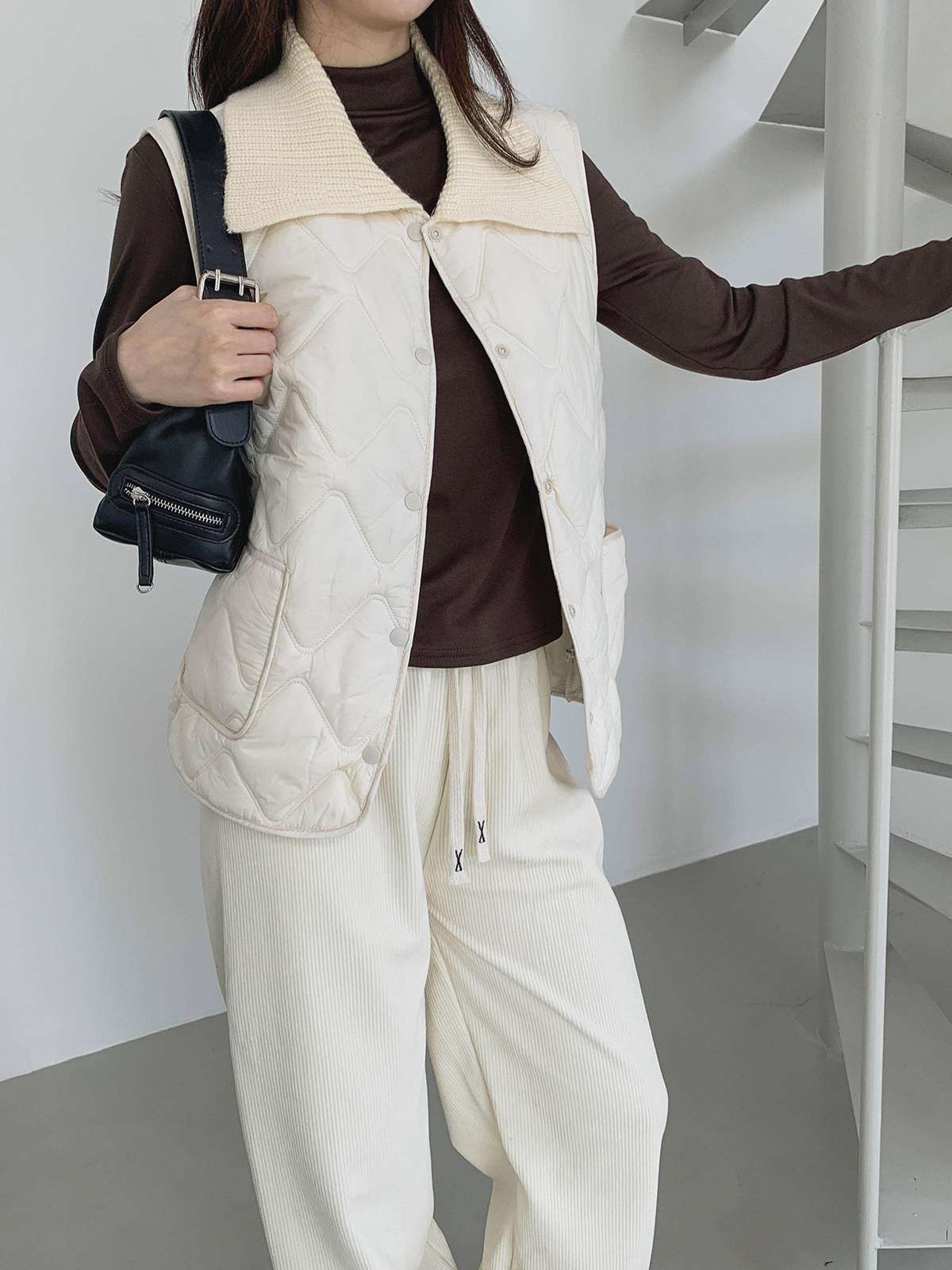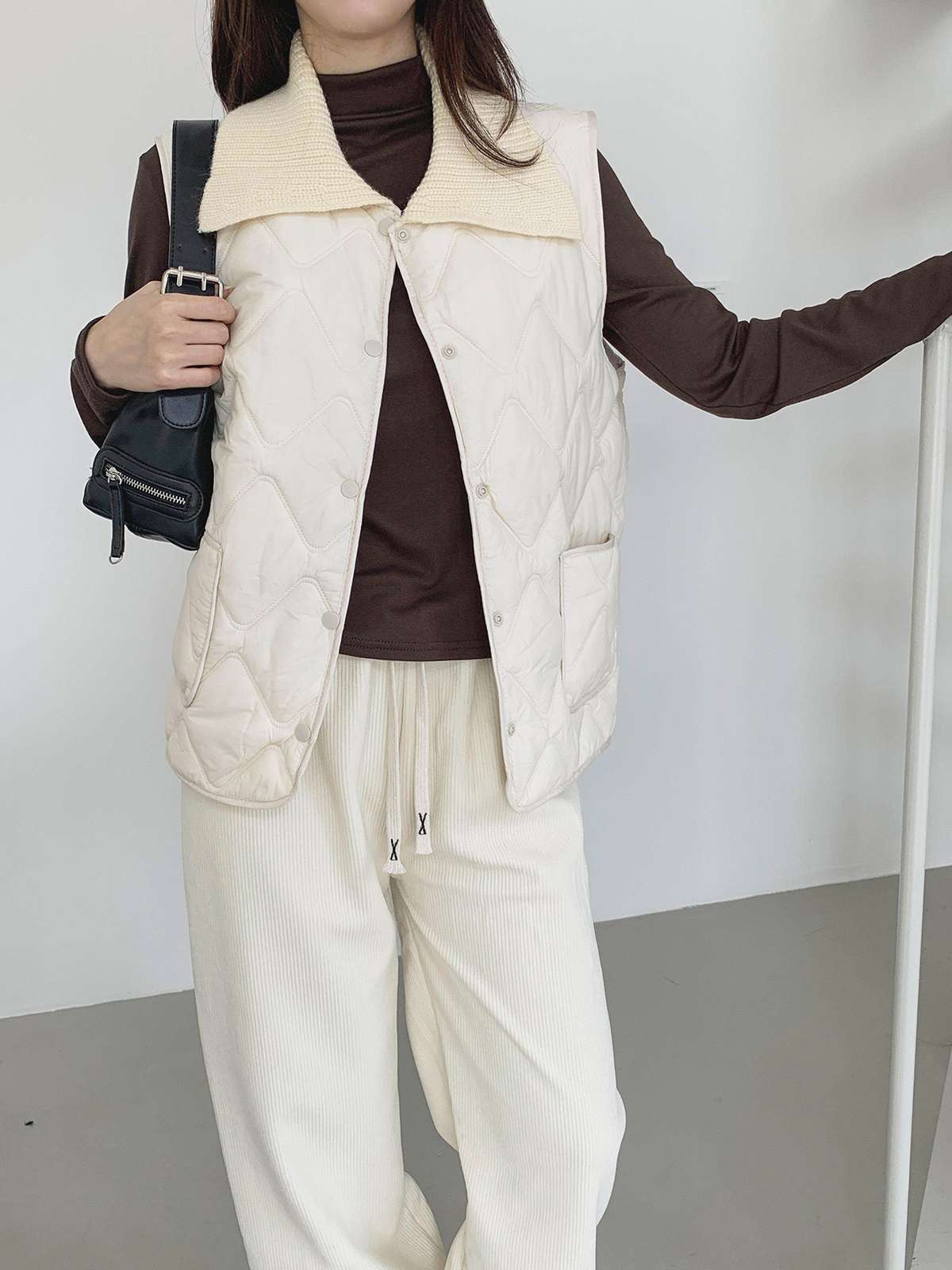 [ VT1398K5A-로렌블 니트 카라 퀼팅 경량 패딩 조끼 ]