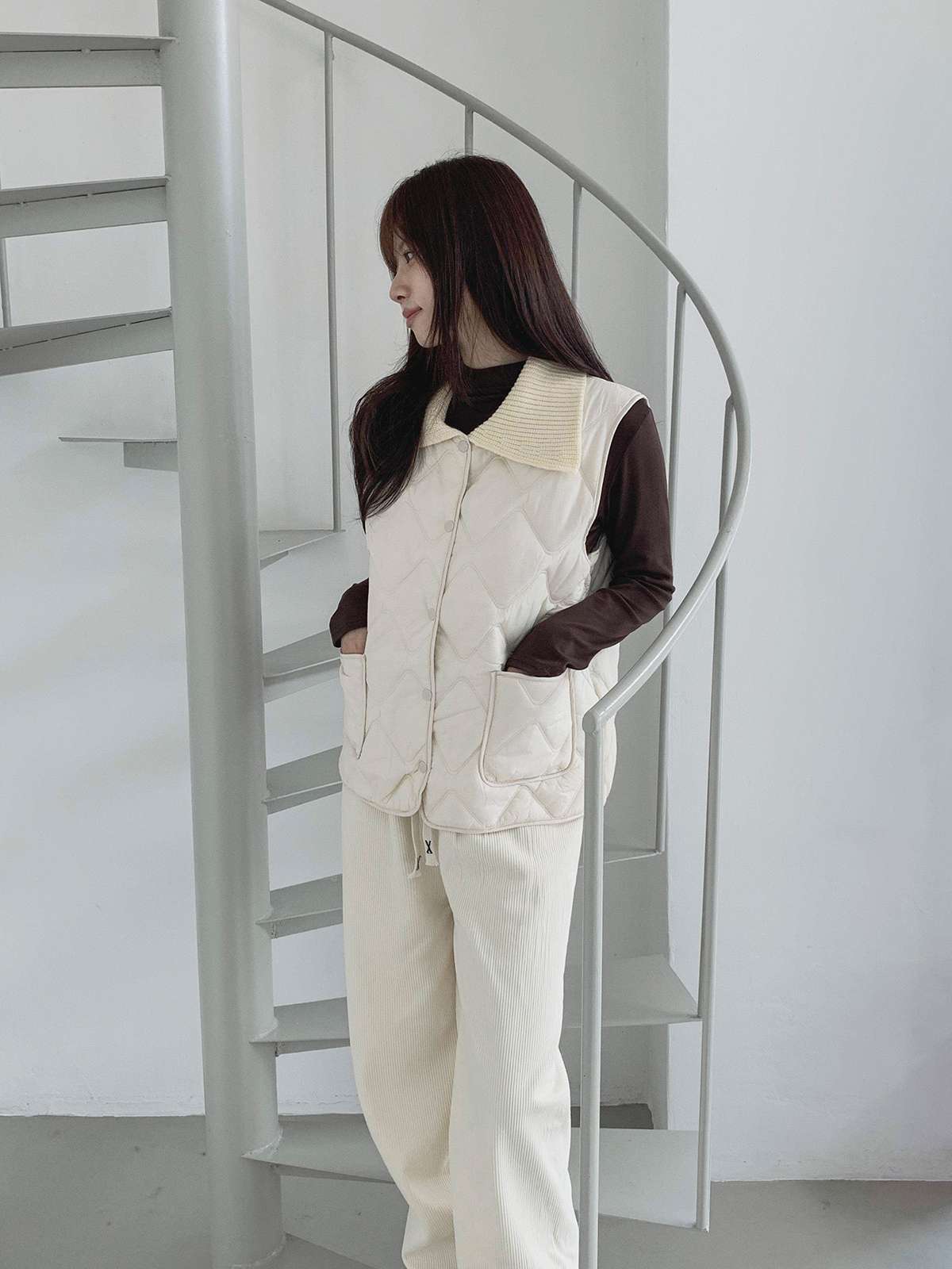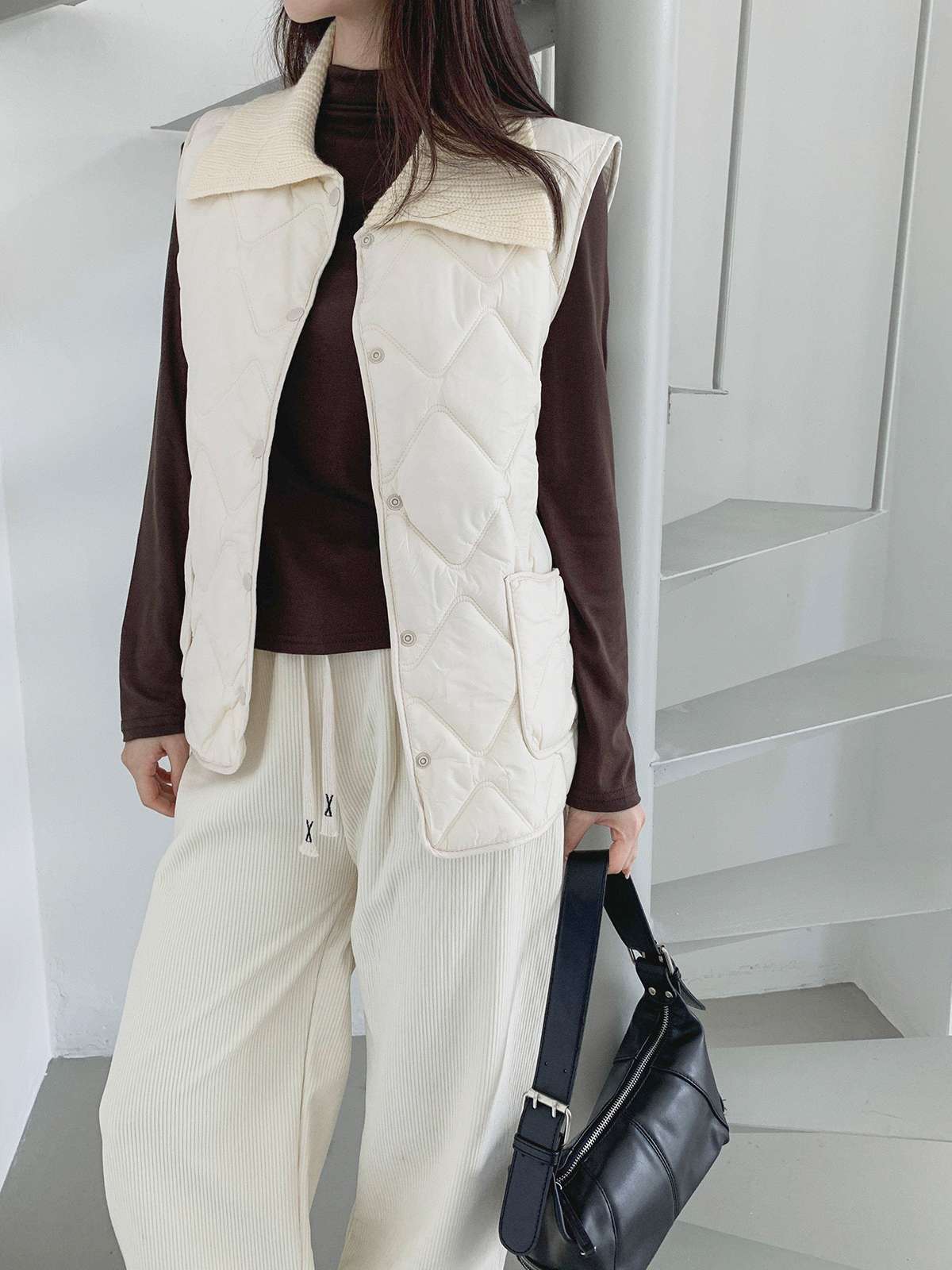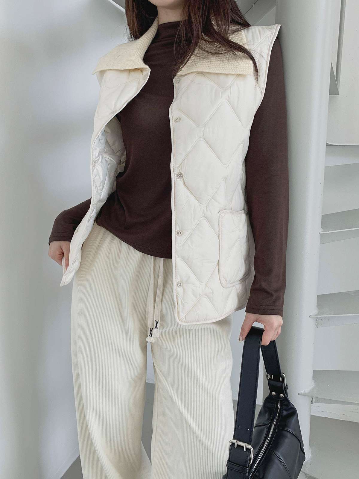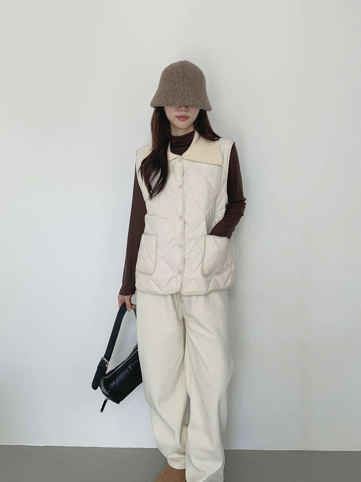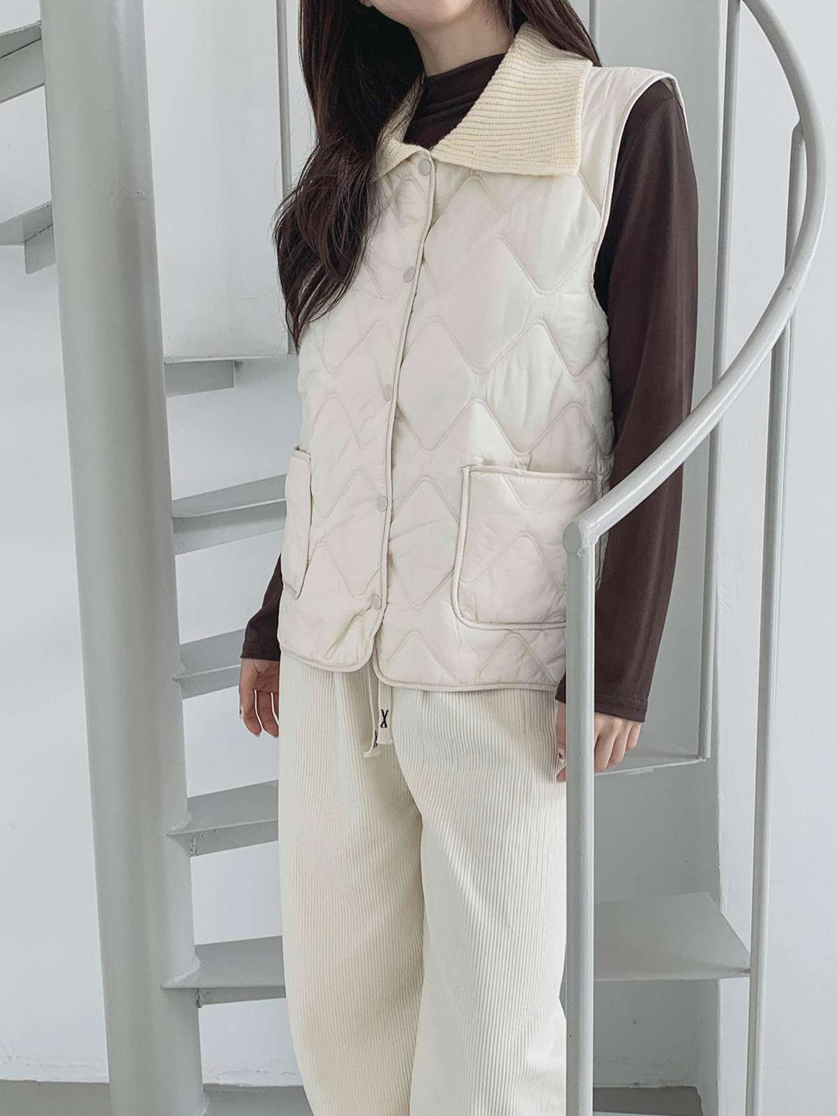 [ VT1398K5A-로렌블 니트 카라 퀼팅 경량 패딩 조끼 ]