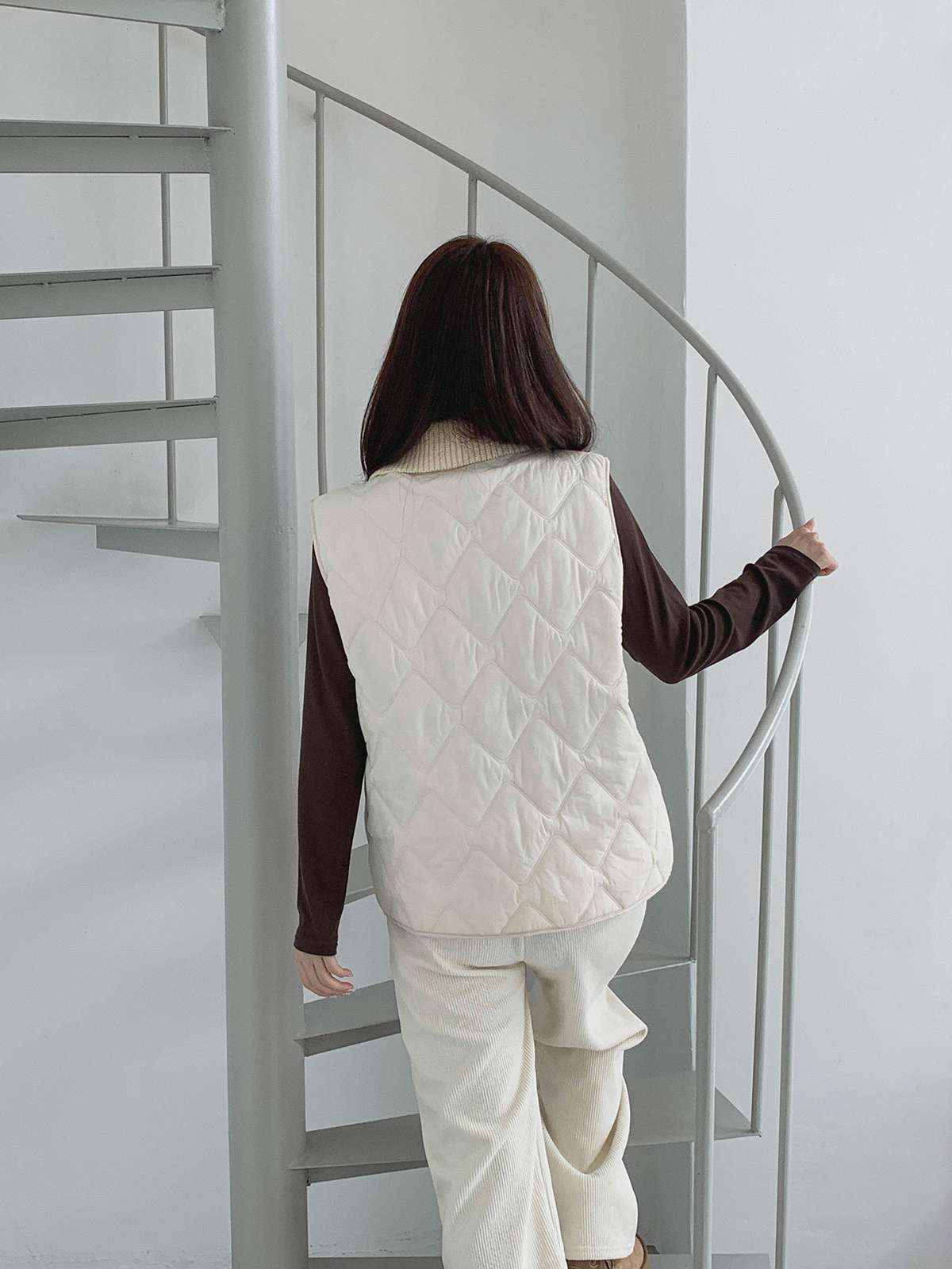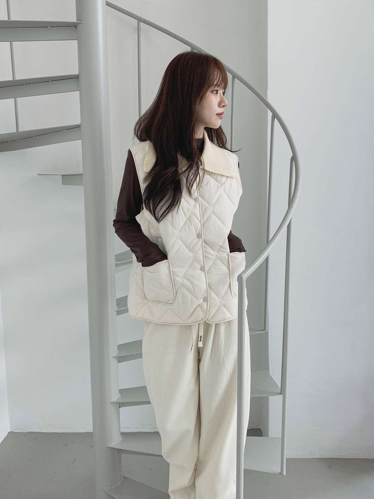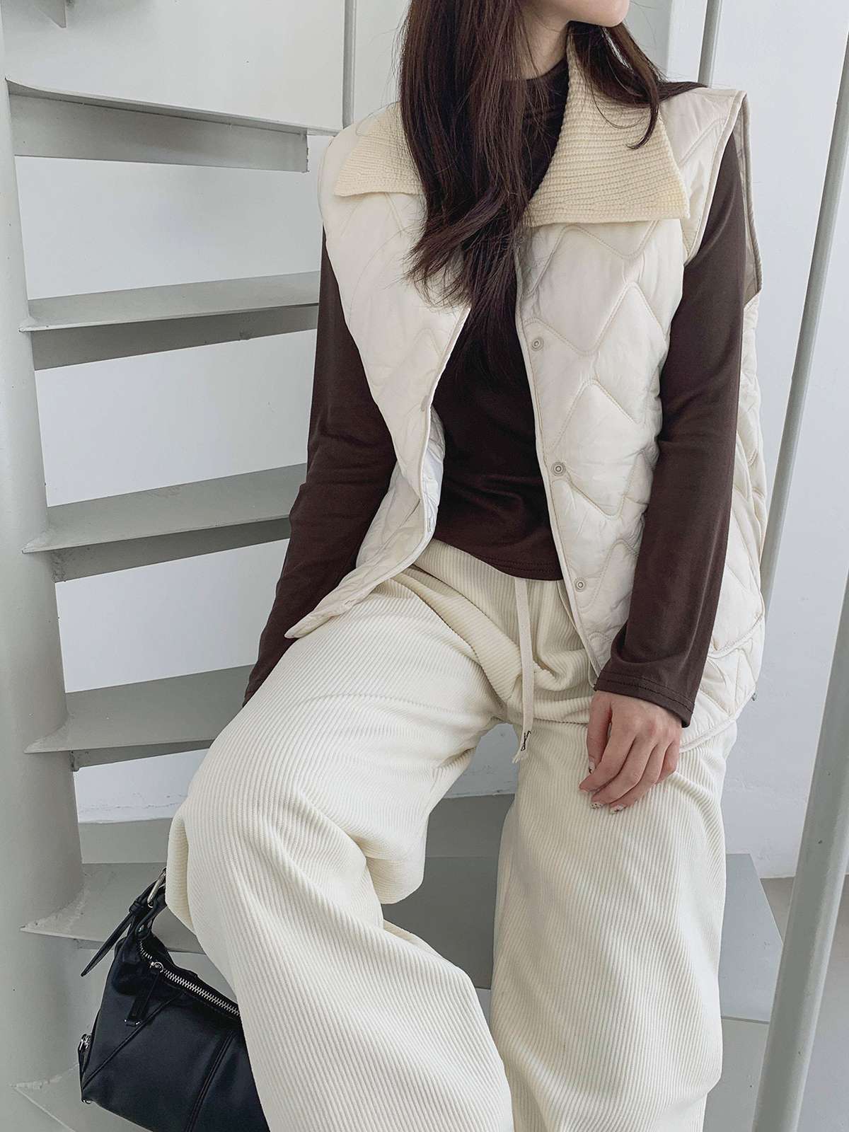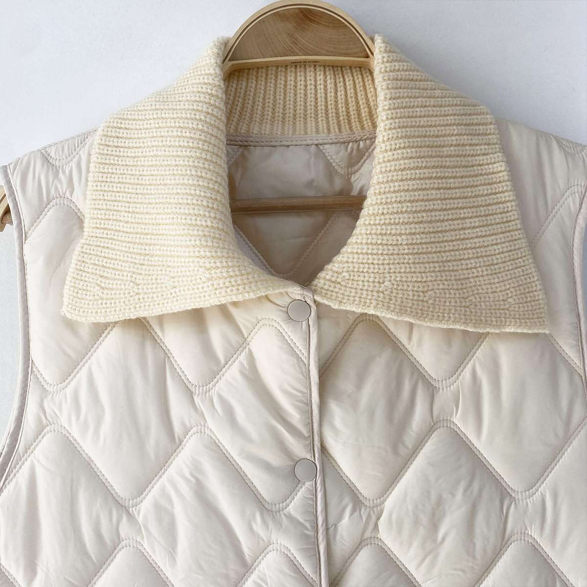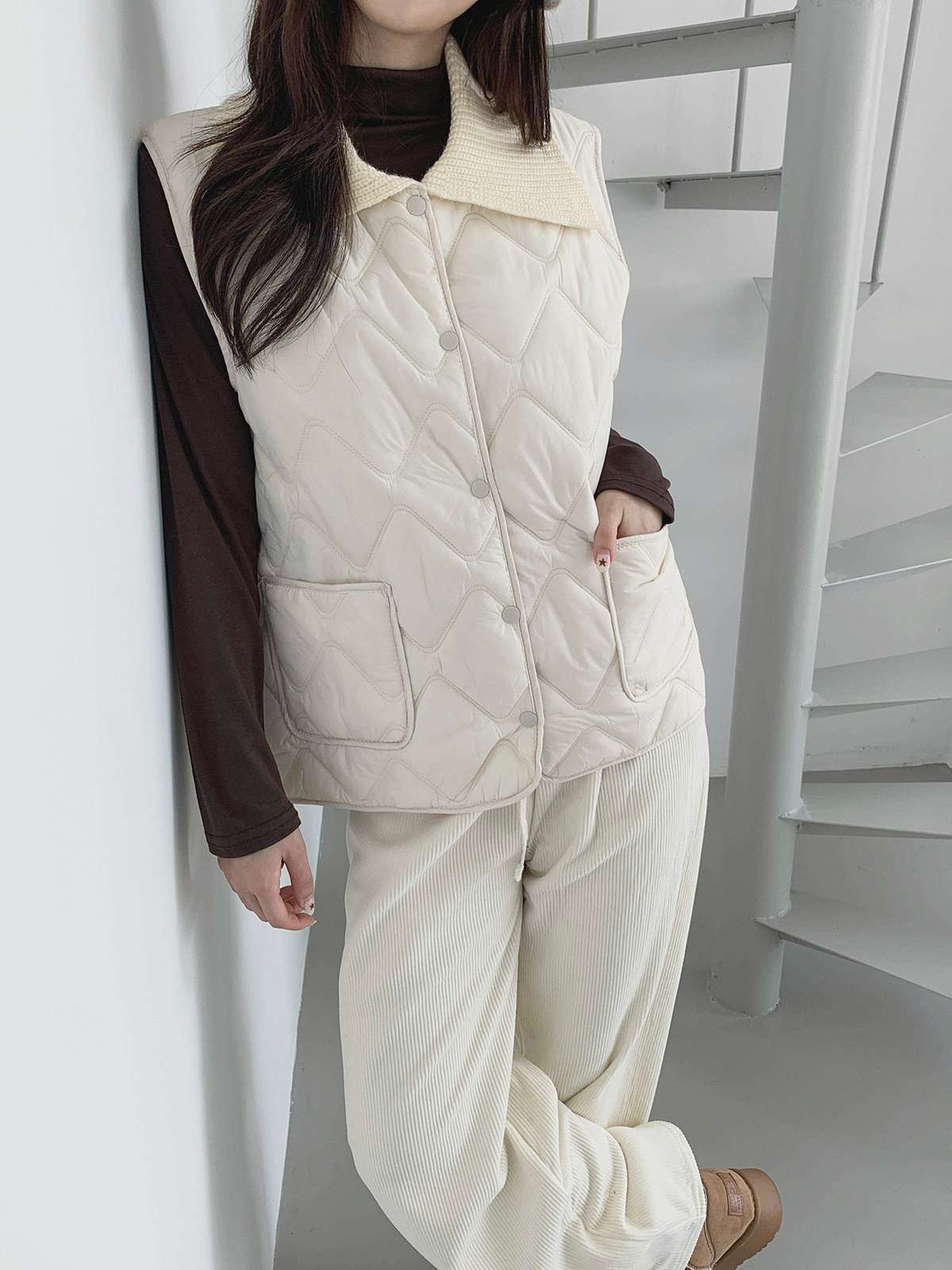 [ VT1398K5A-로렌블 니트 카라 퀼팅 경량 패딩 조끼 ]