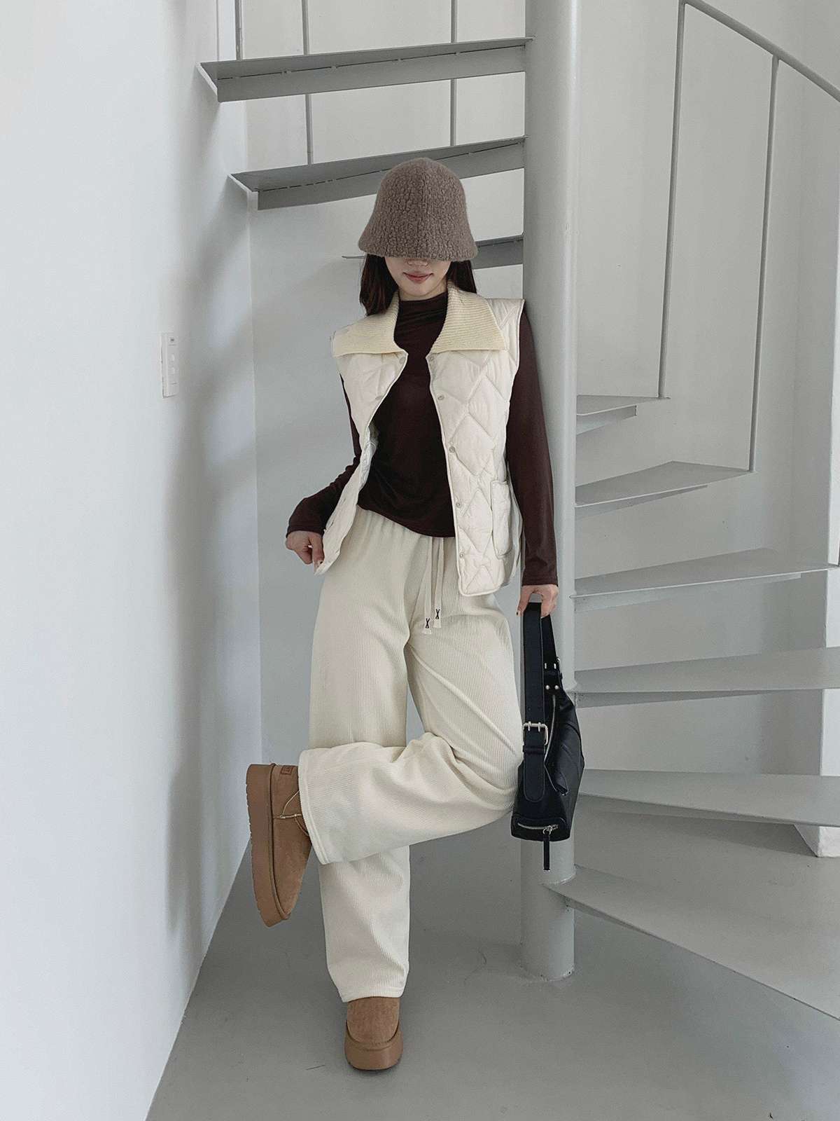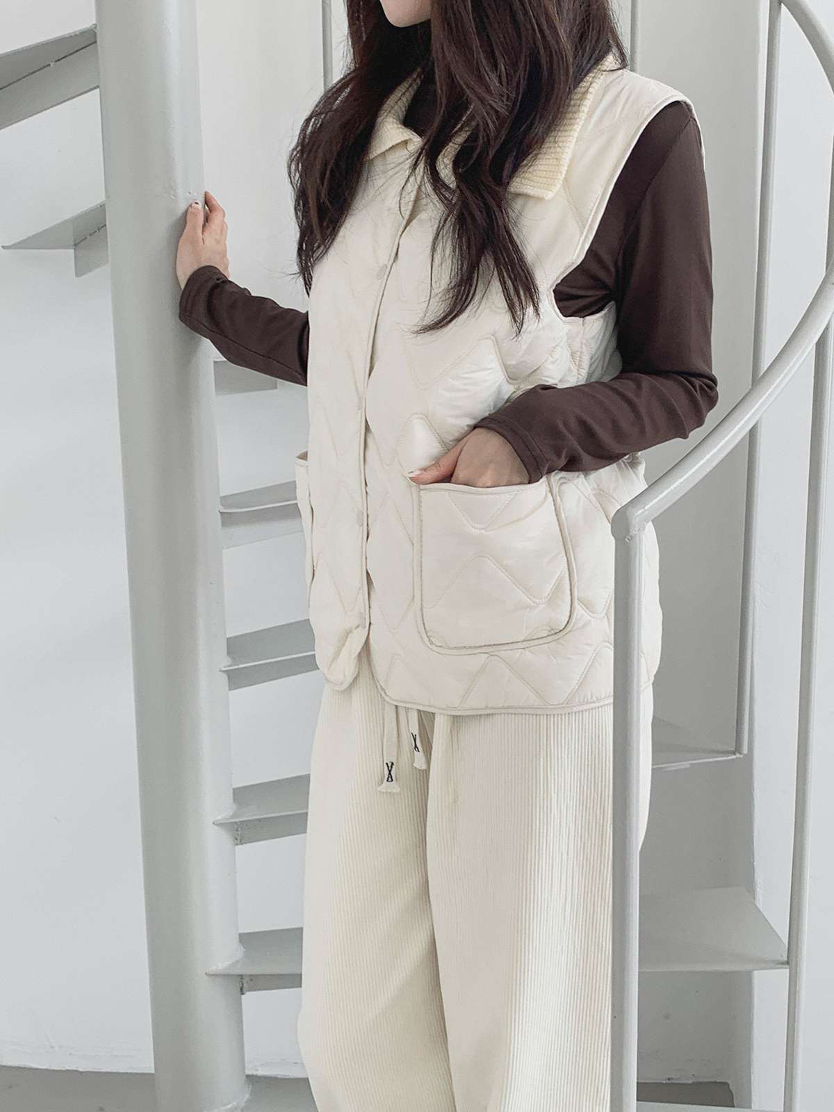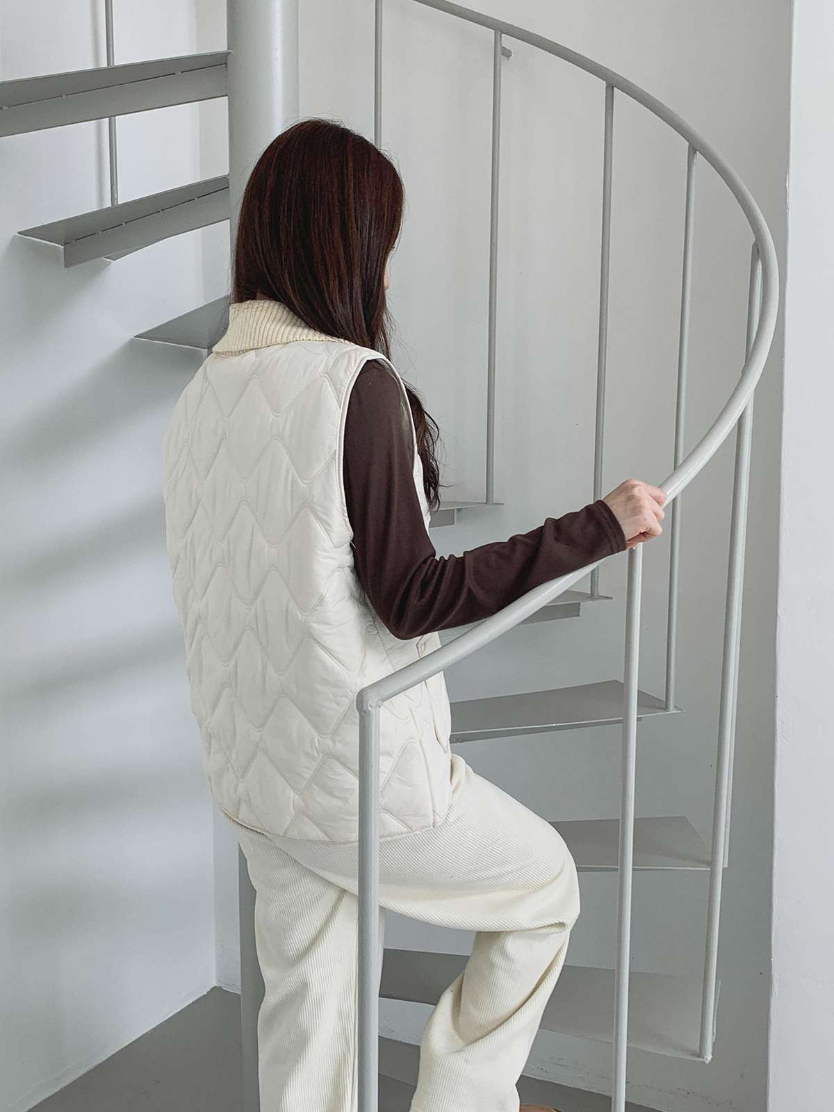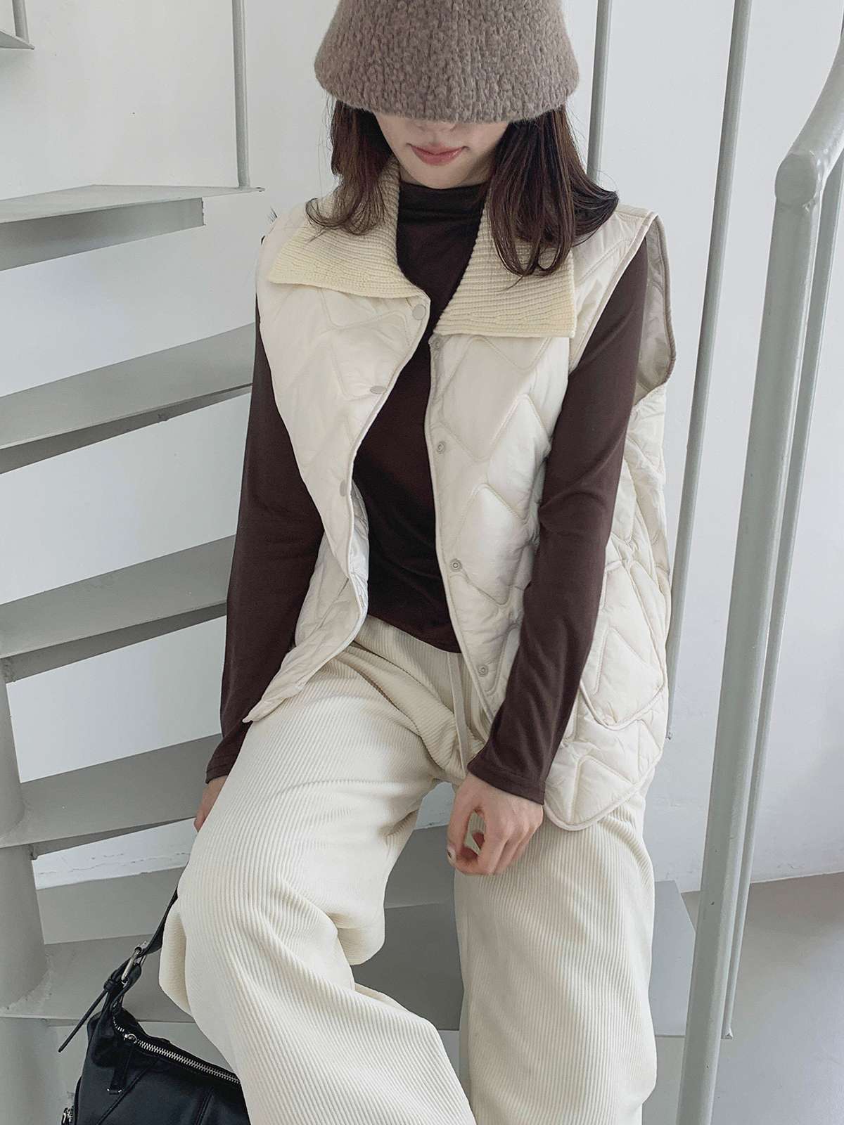 [ VT1398K5A-로렌블 니트 카라 퀼팅 경량 패딩 조끼 ]