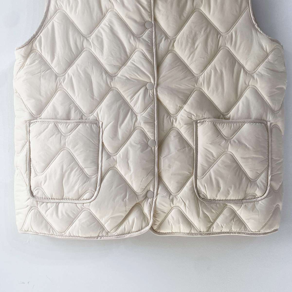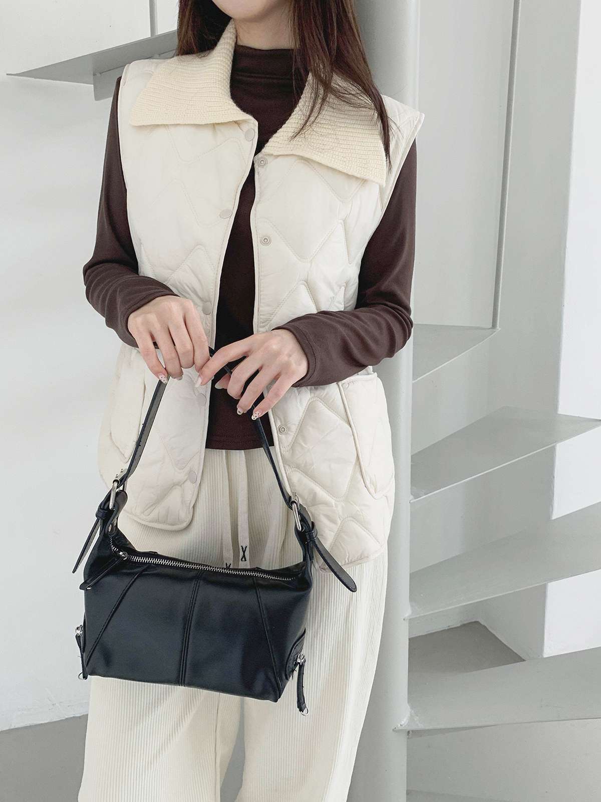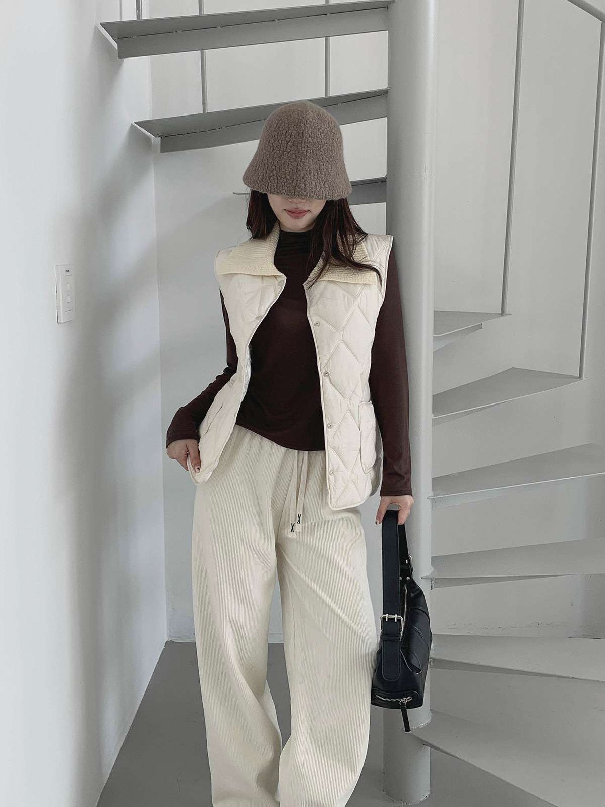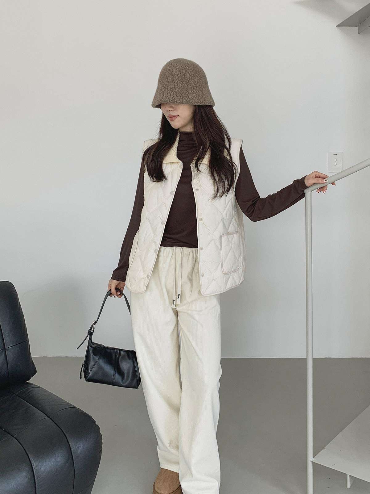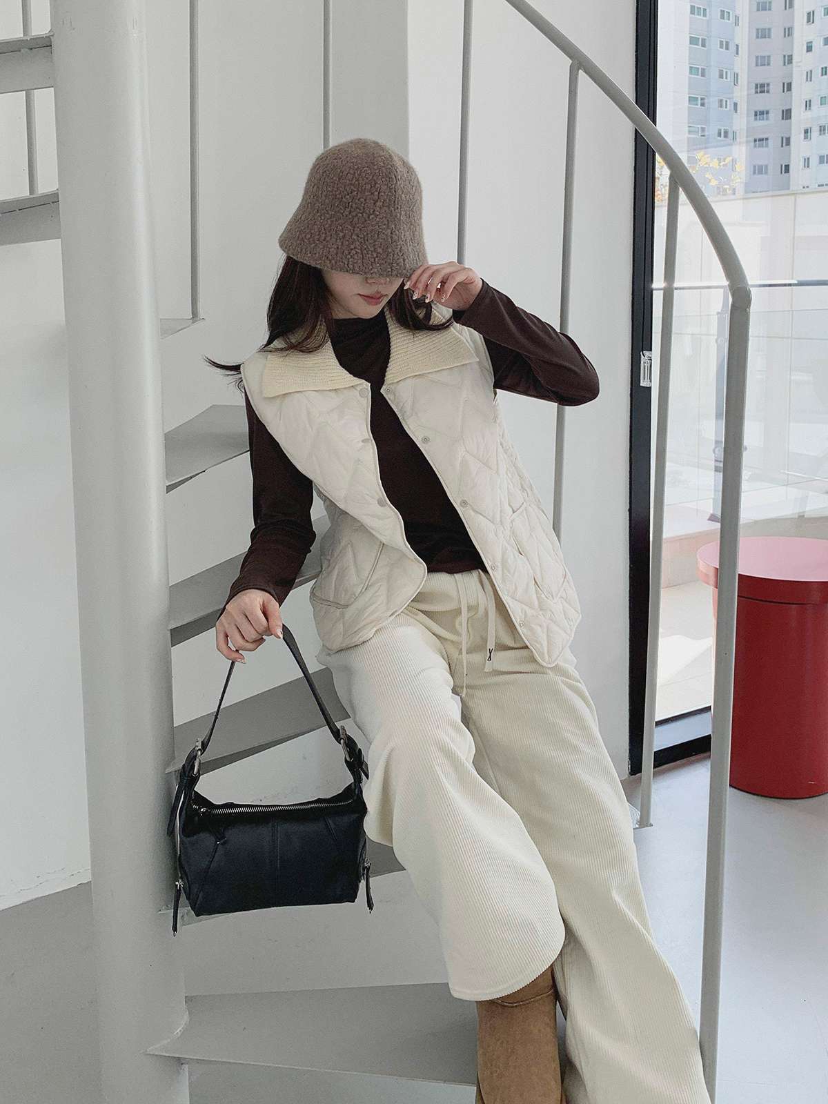 [ VT1398K5A-로렌블 니트 카라 퀼팅 경량 패딩 조끼 ]
