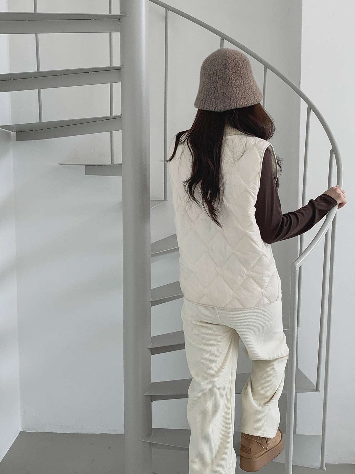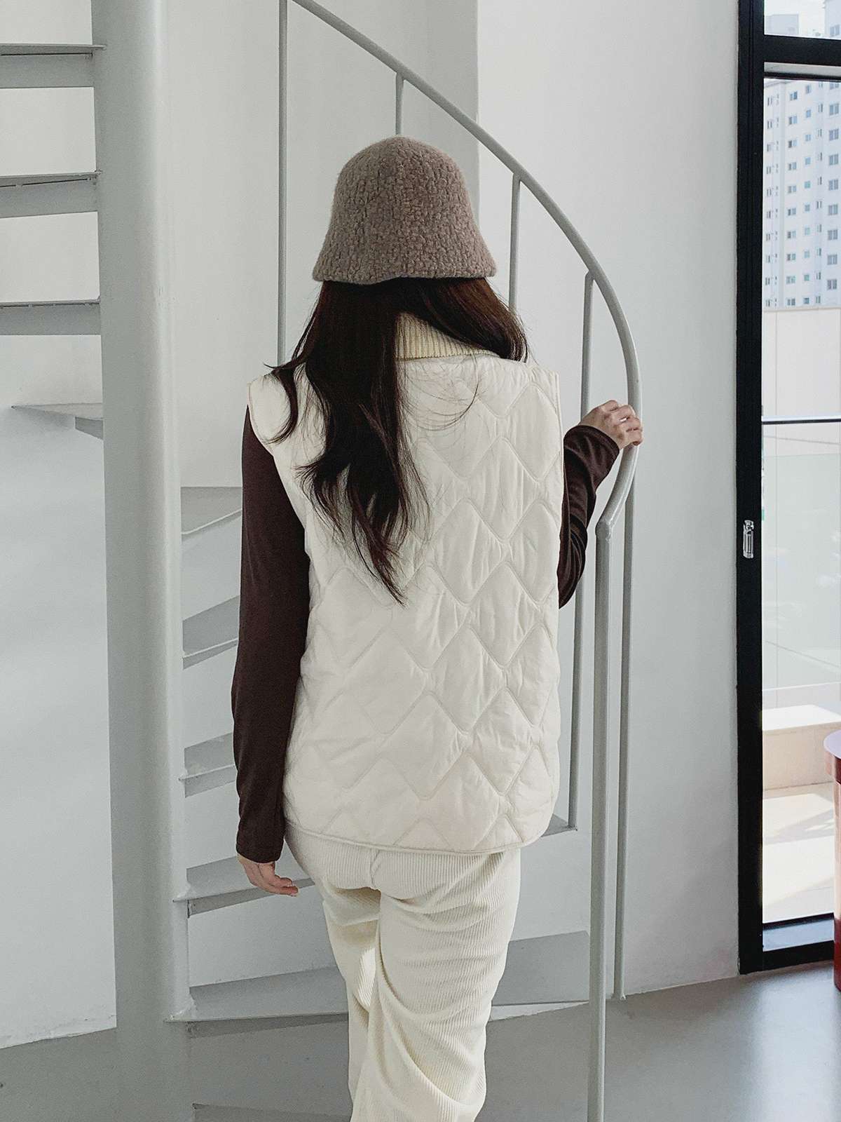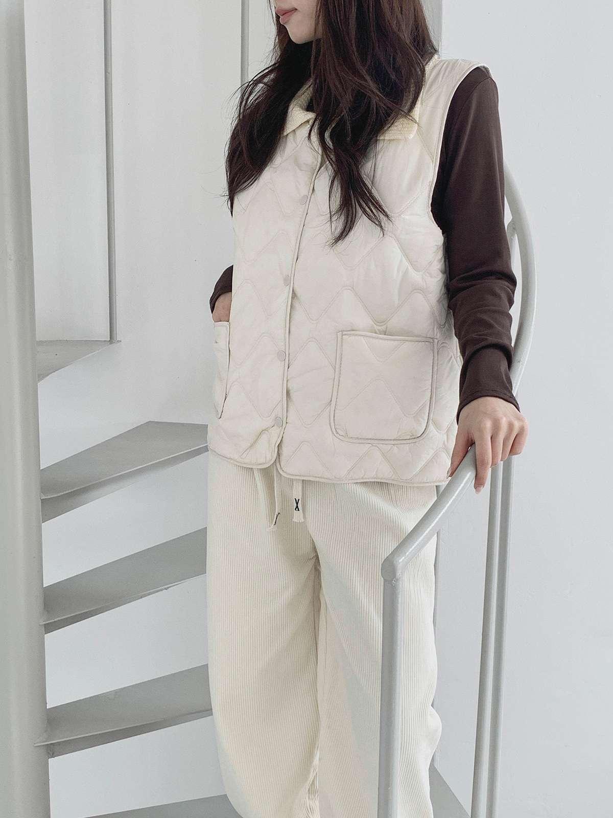 VT1398K5A-로렌블 니트 카라 퀼팅 경량 패딩 조끼