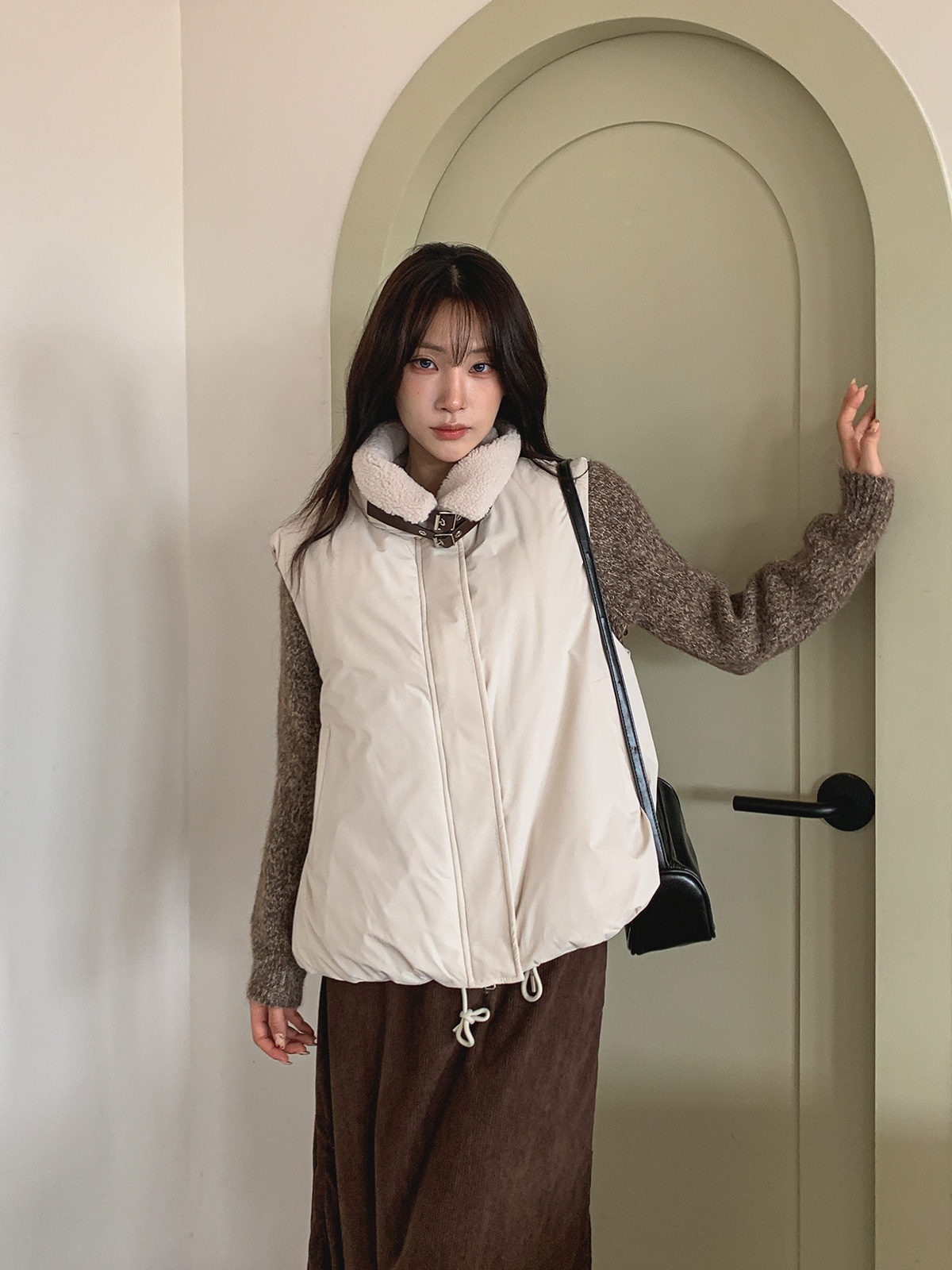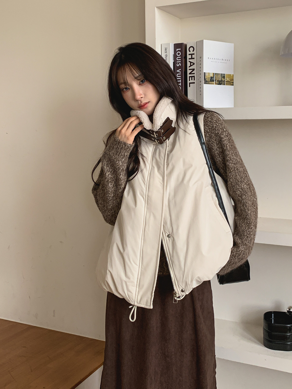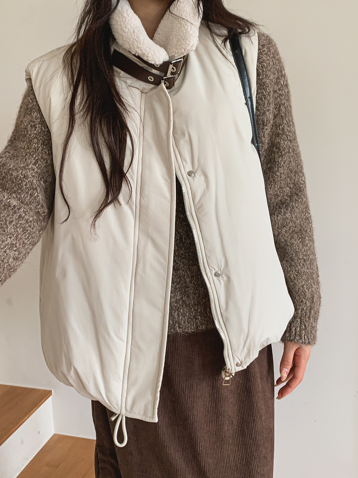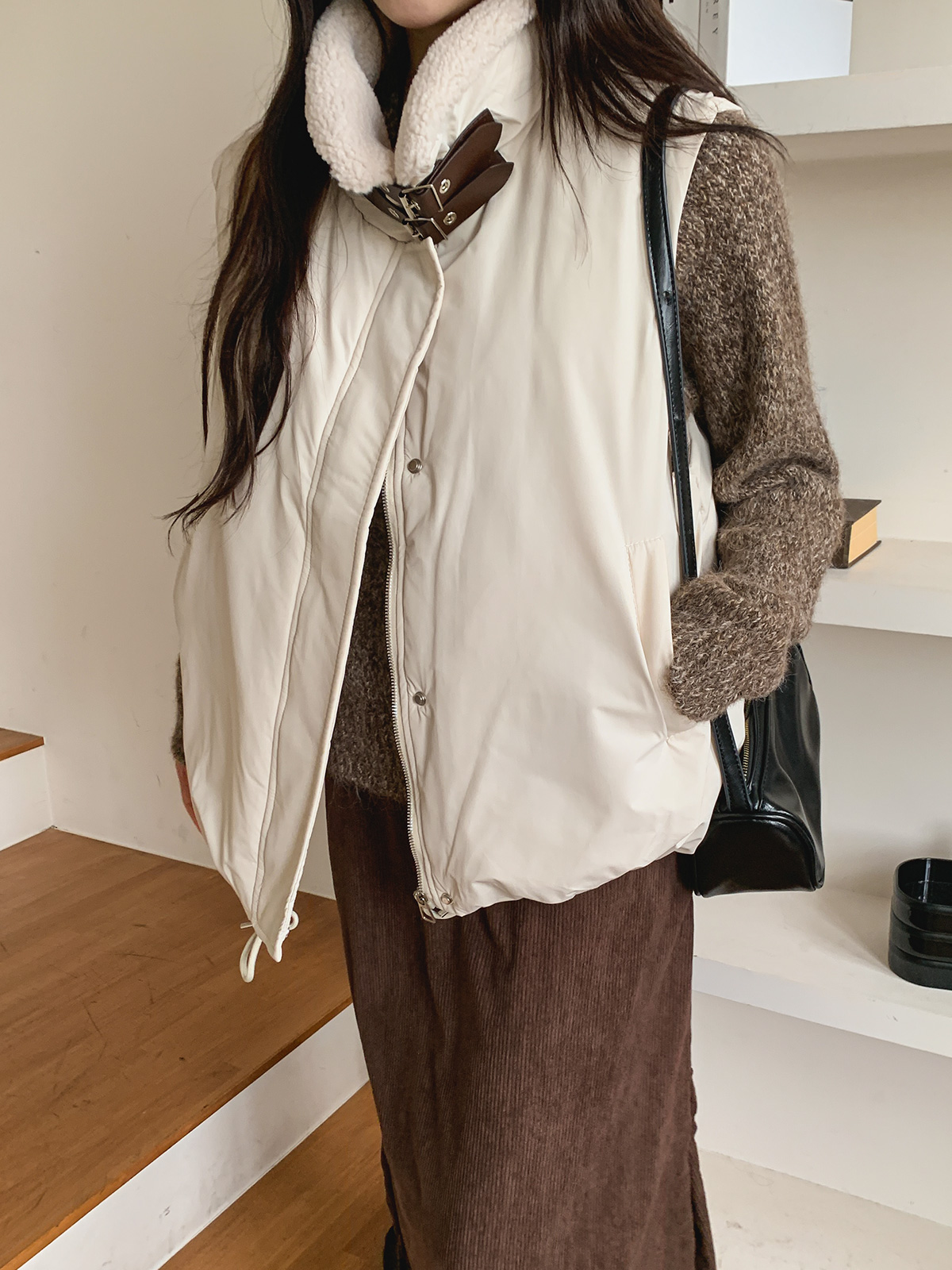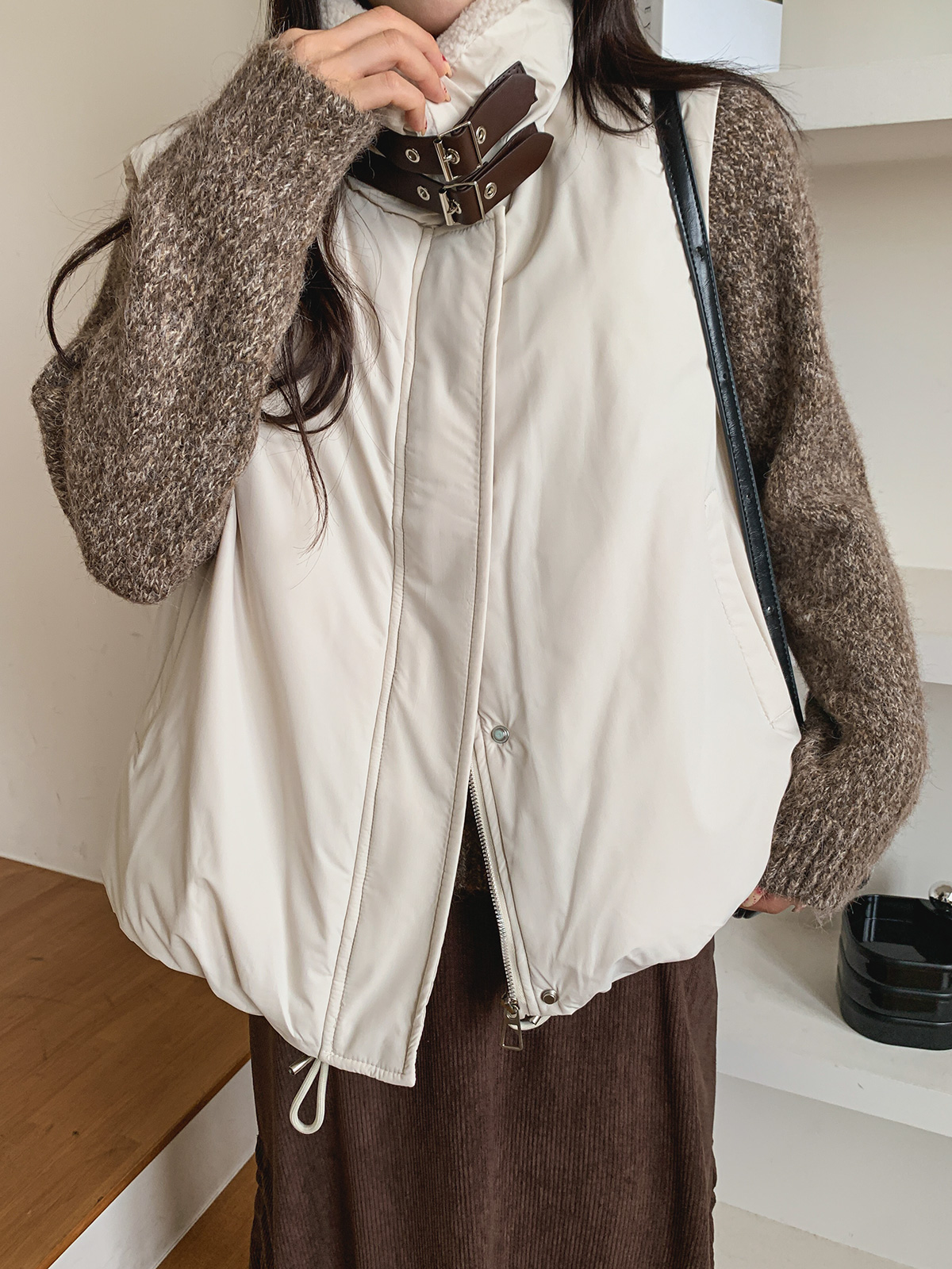 덤블 카라와 버클이 포인트인 패딩 베스트