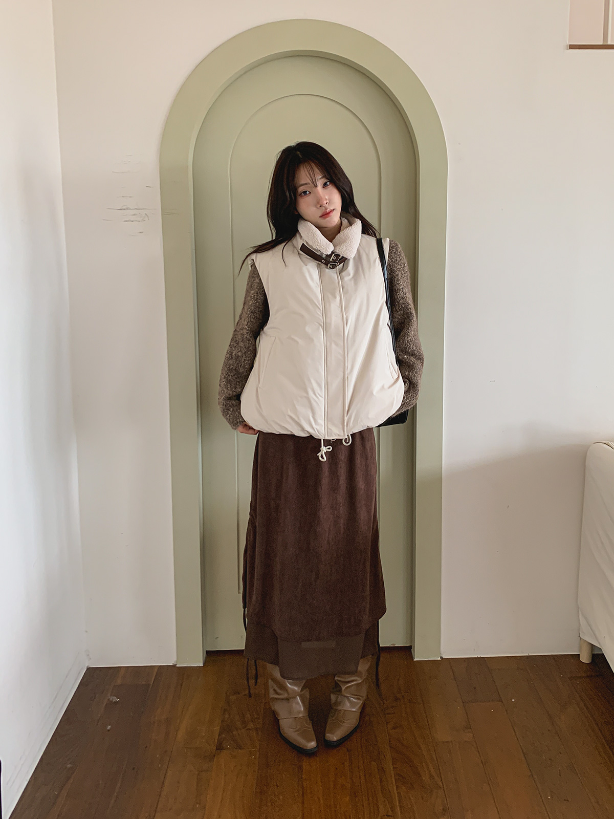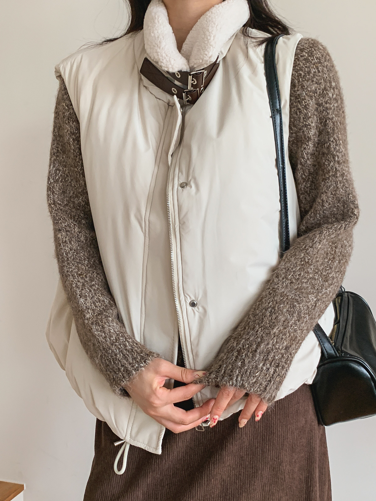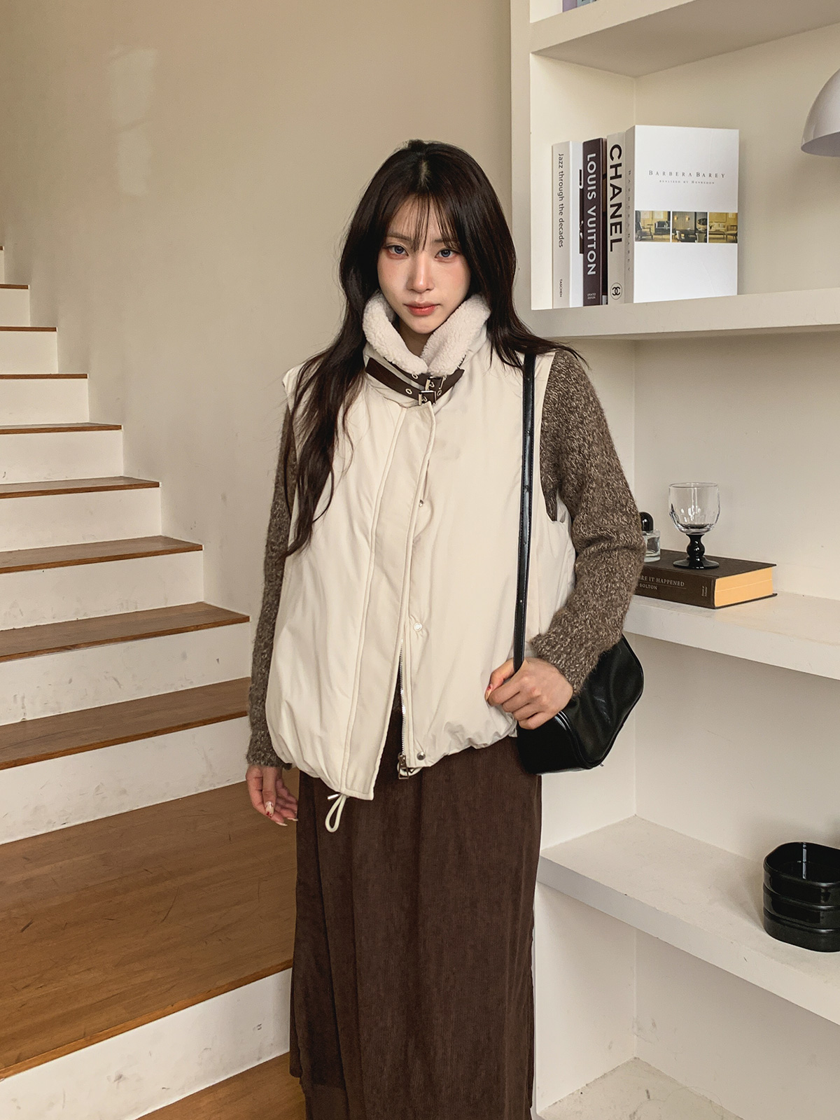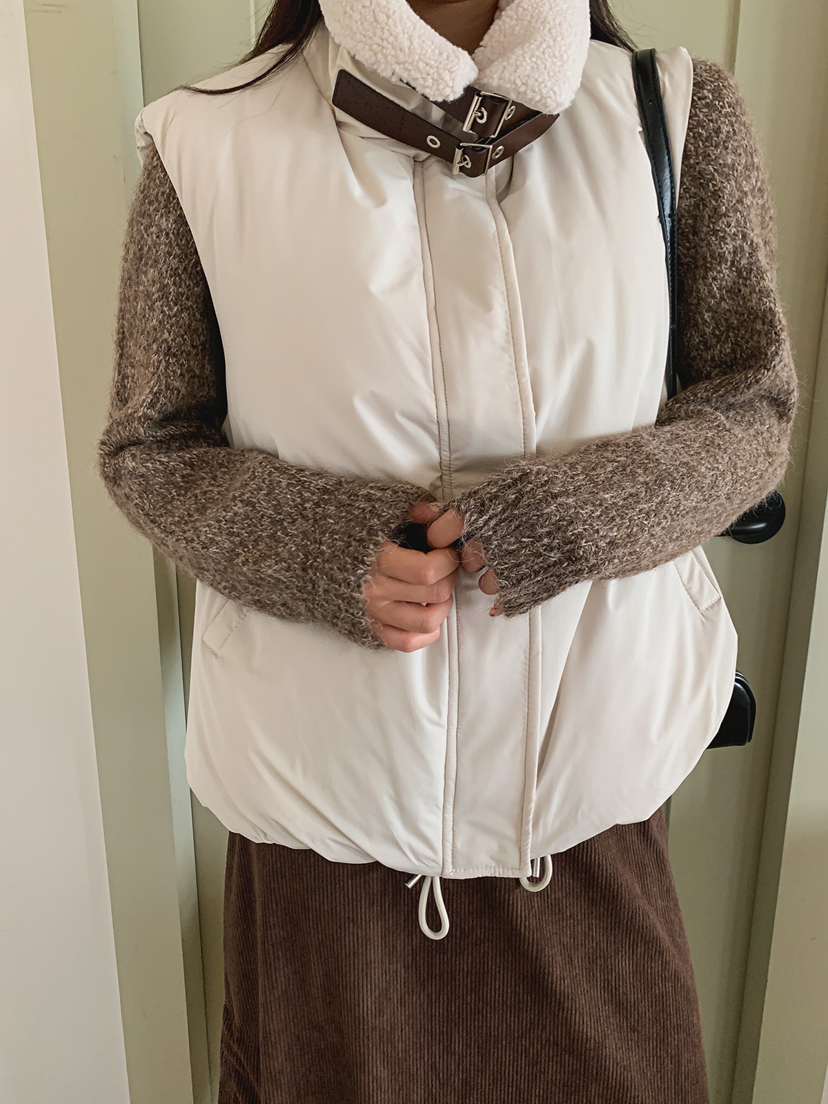 덤블 카라와 버클이 포인트인 패딩 베스트