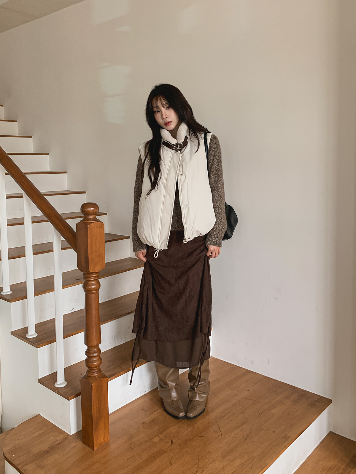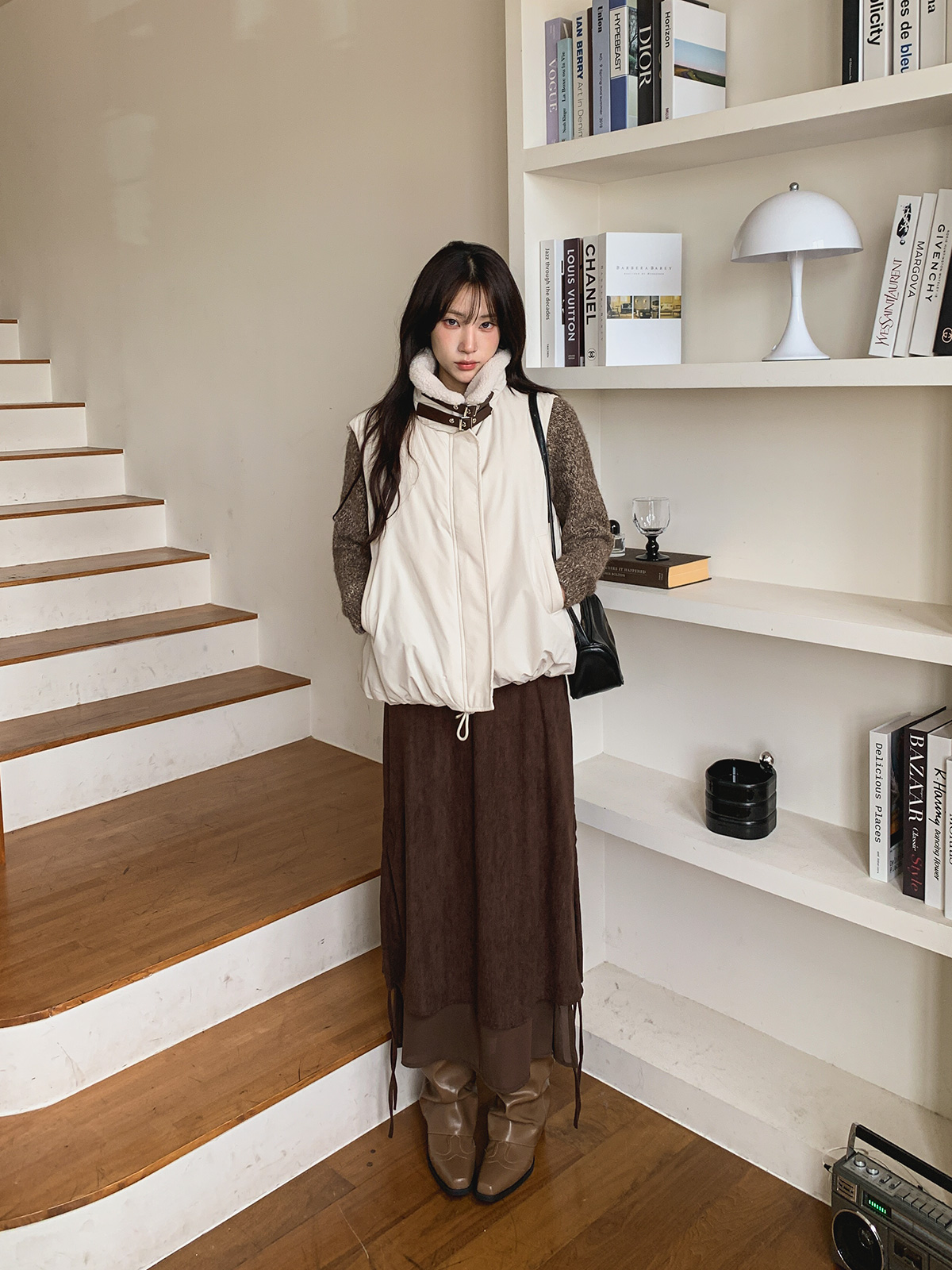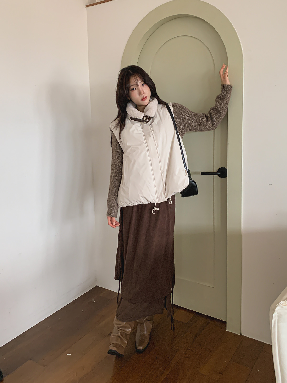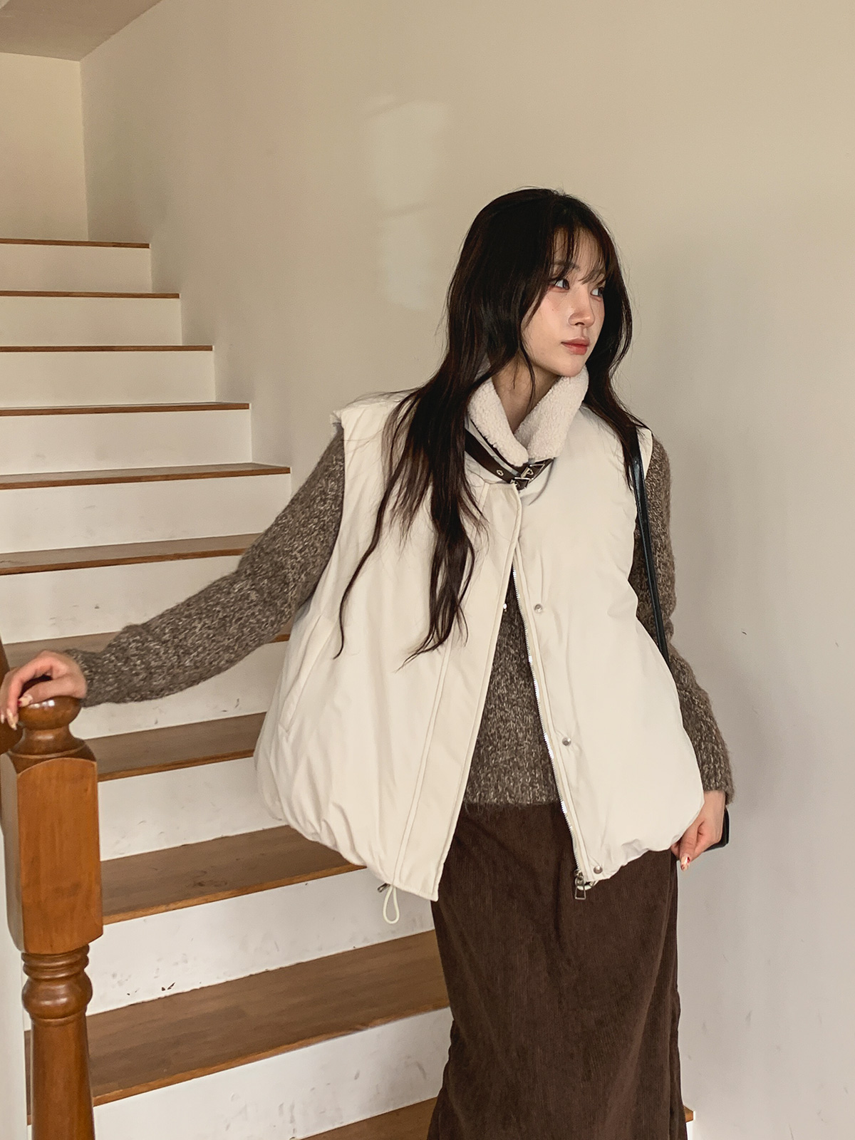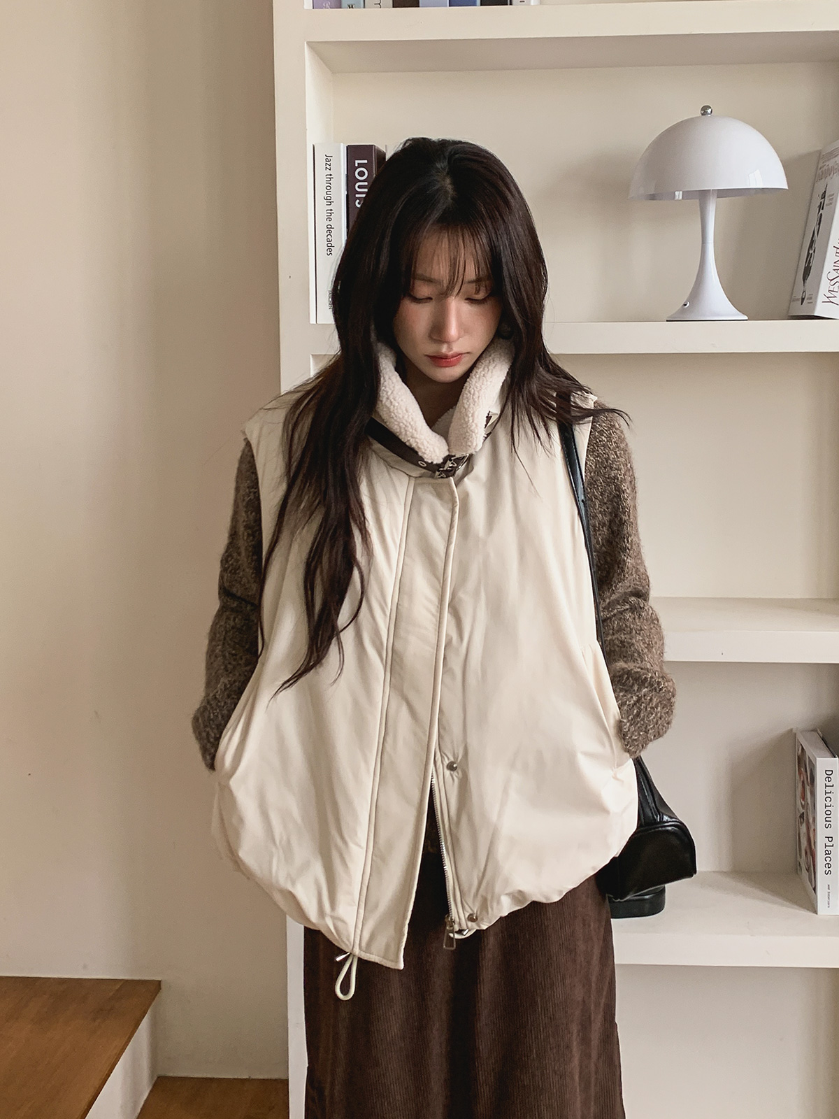 덤블 카라와 버클이 포인트인 패딩 베스트