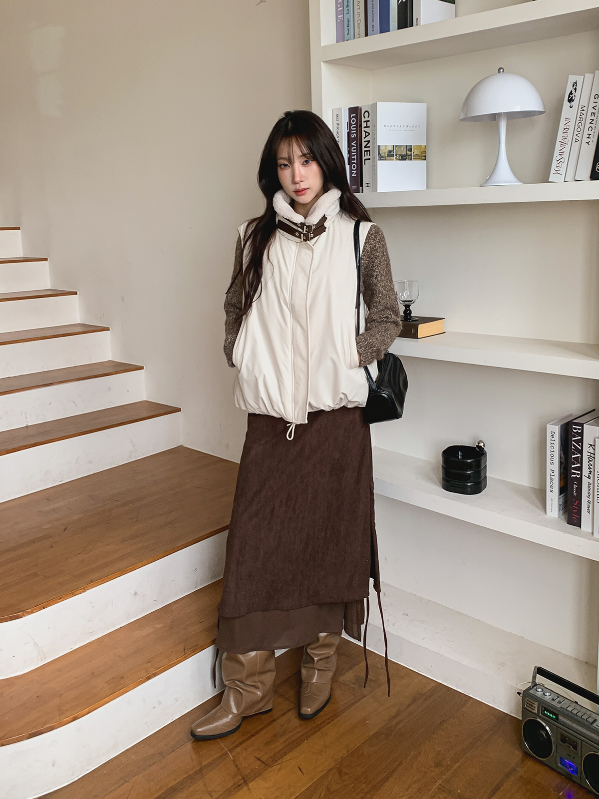 VT1399K5A-하리투 버클 덤블 카라 패딩 베스트
