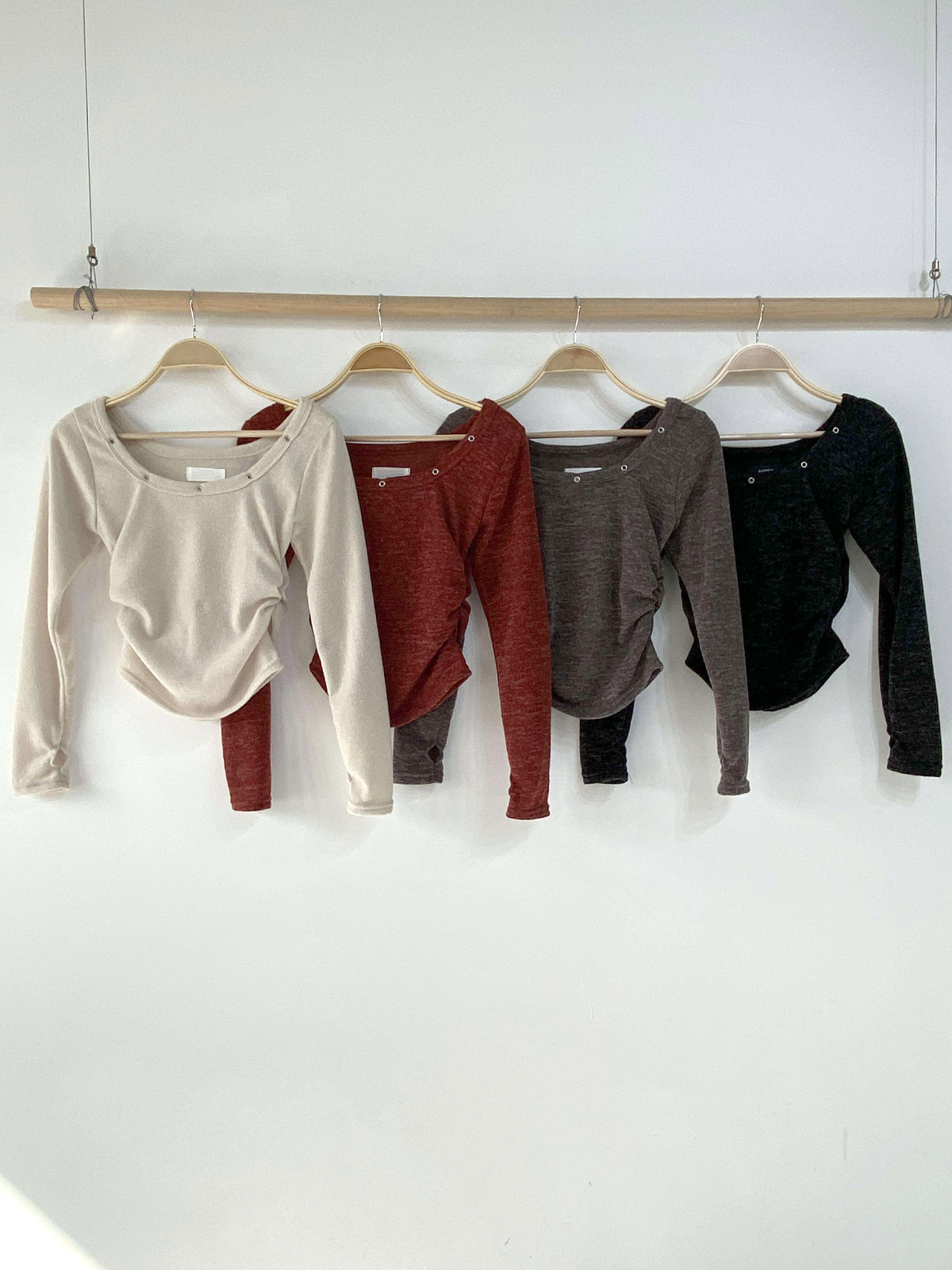 유니크한 U넥 셔링 니트 티셔츠입니다!