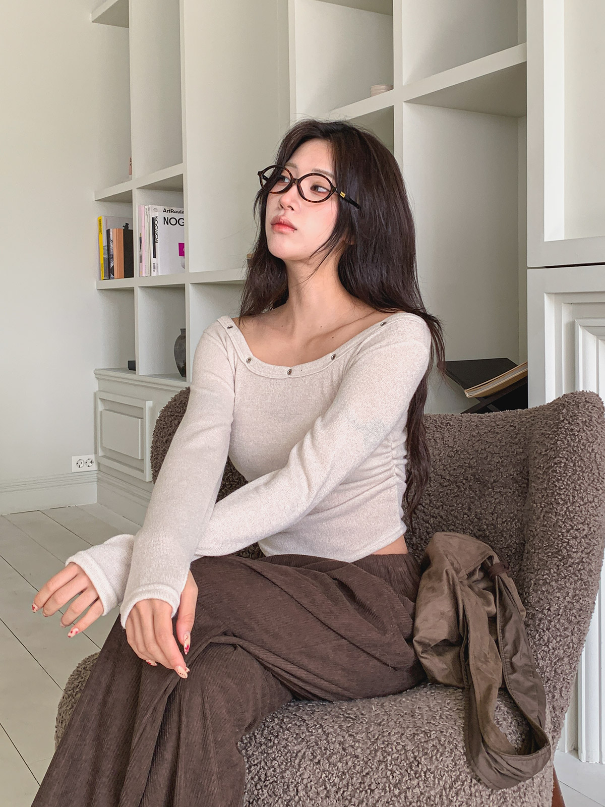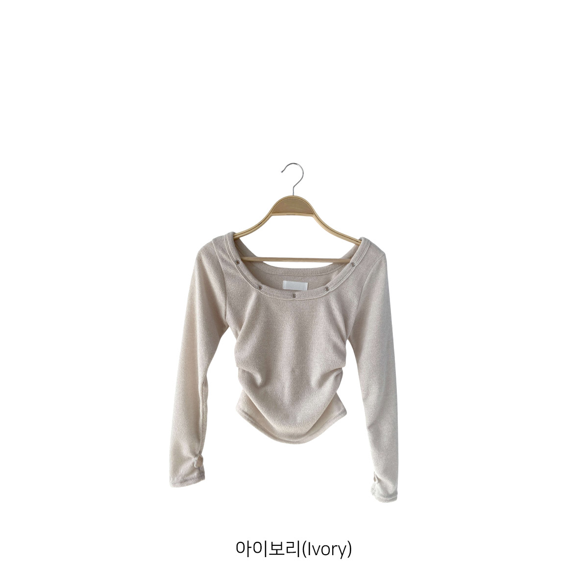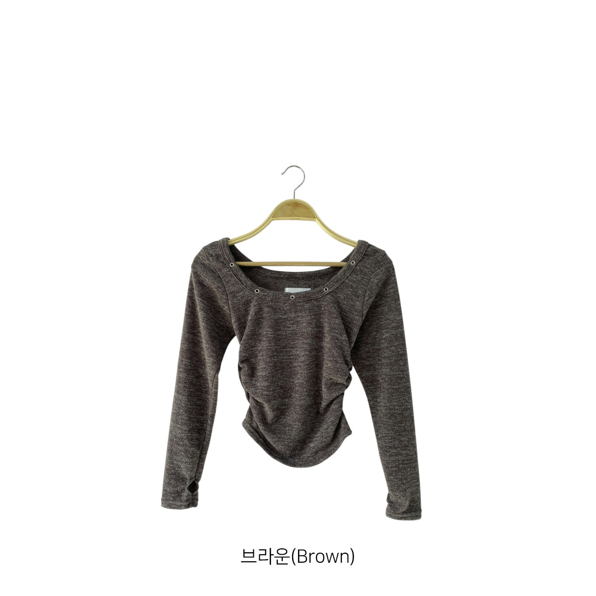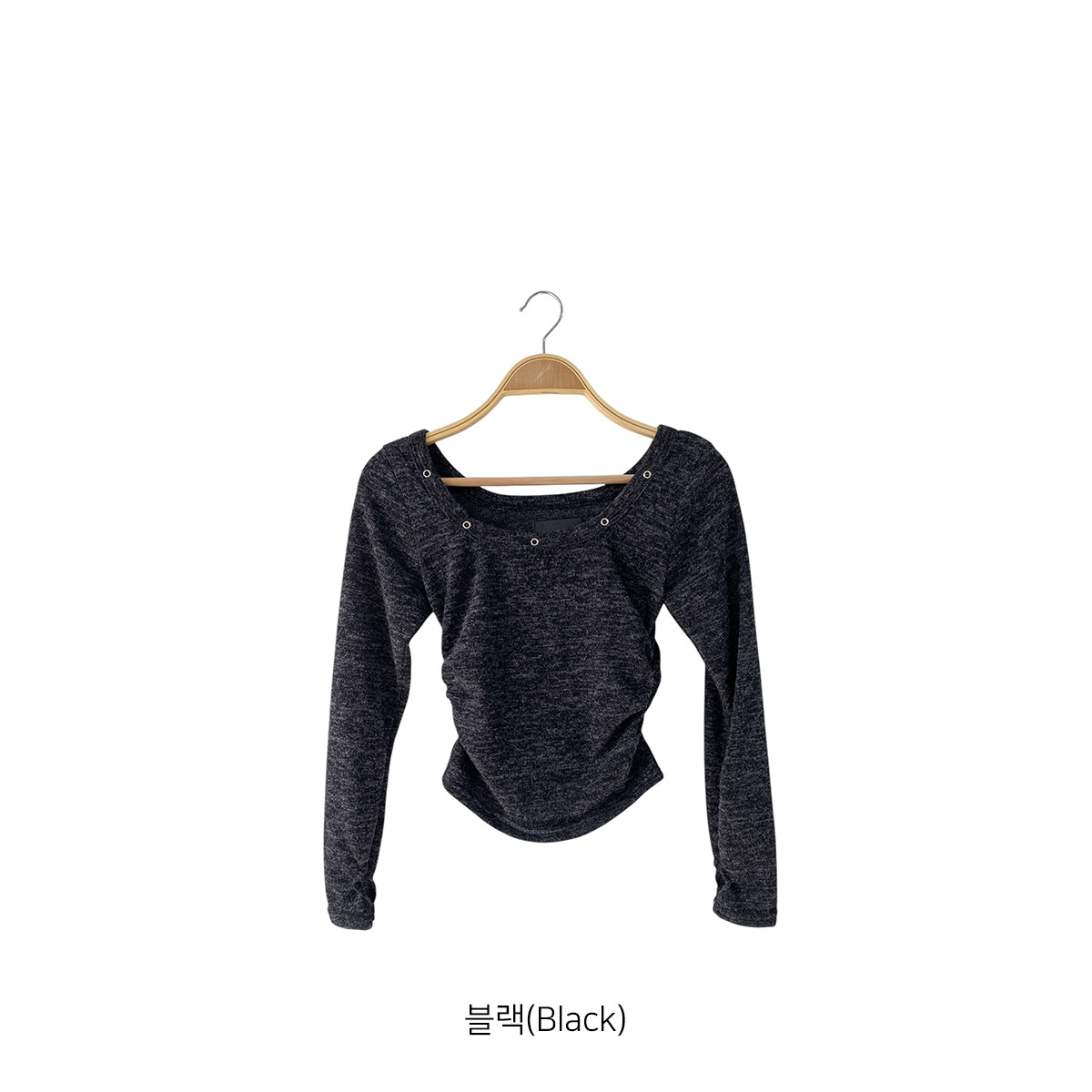아일렛 디테일이 포인트인 U넥 셔링 니트 티셔츠