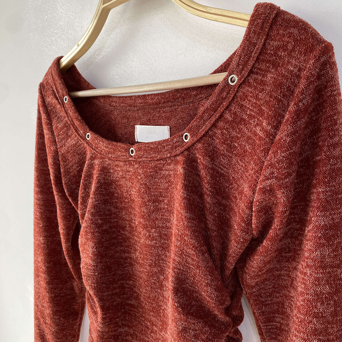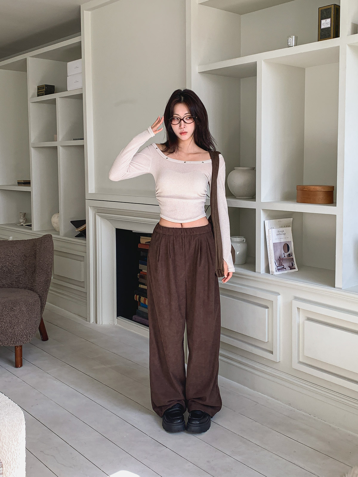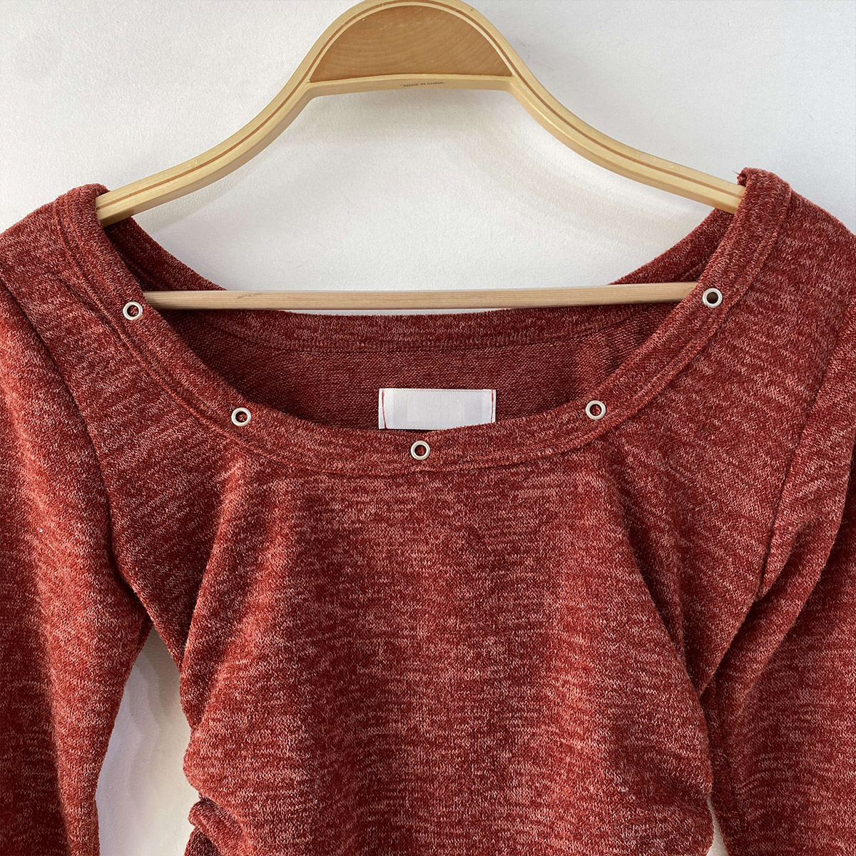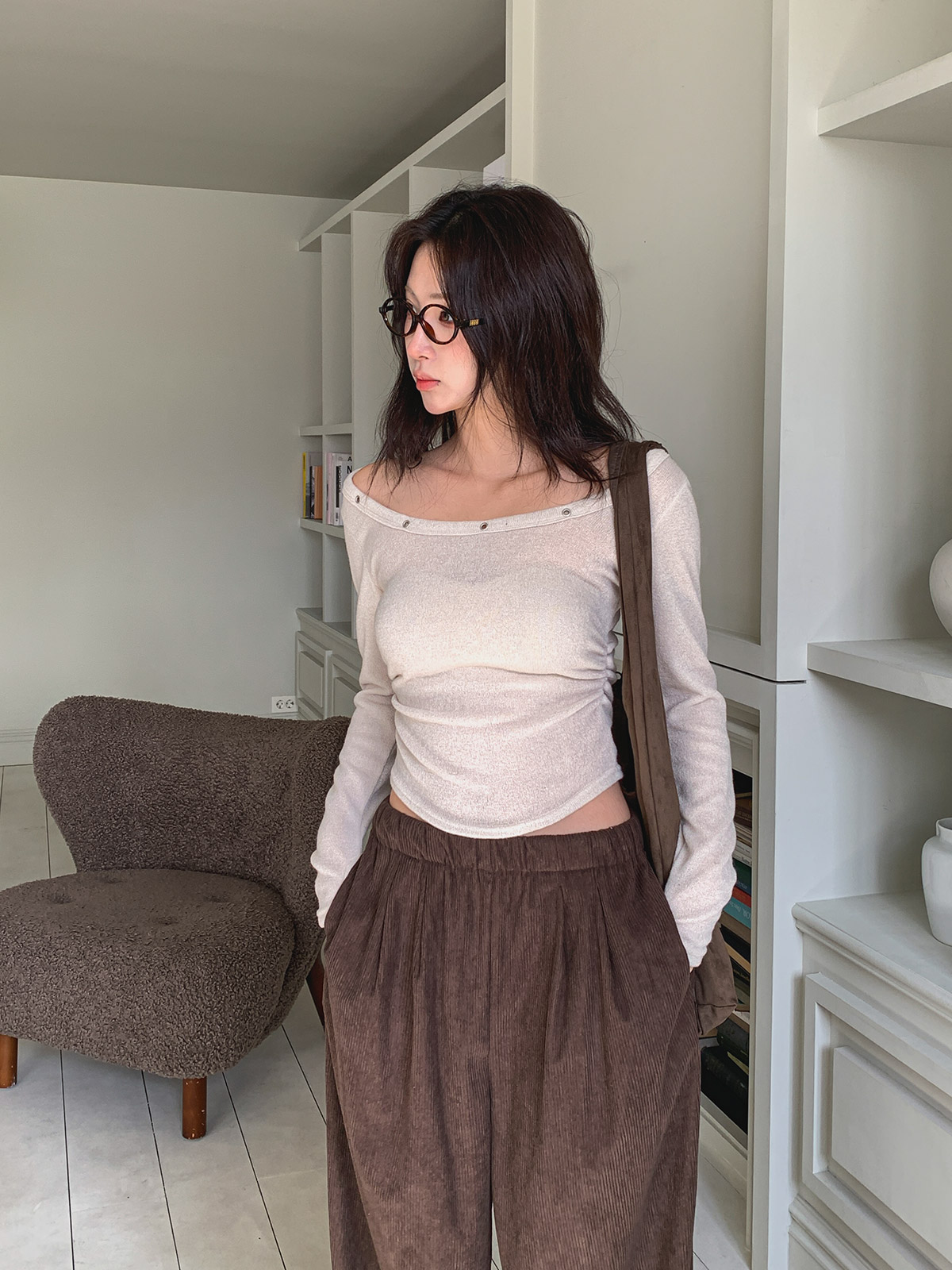 아일렛 디테일이 포인트인 U넥 셔링 니트 티셔츠