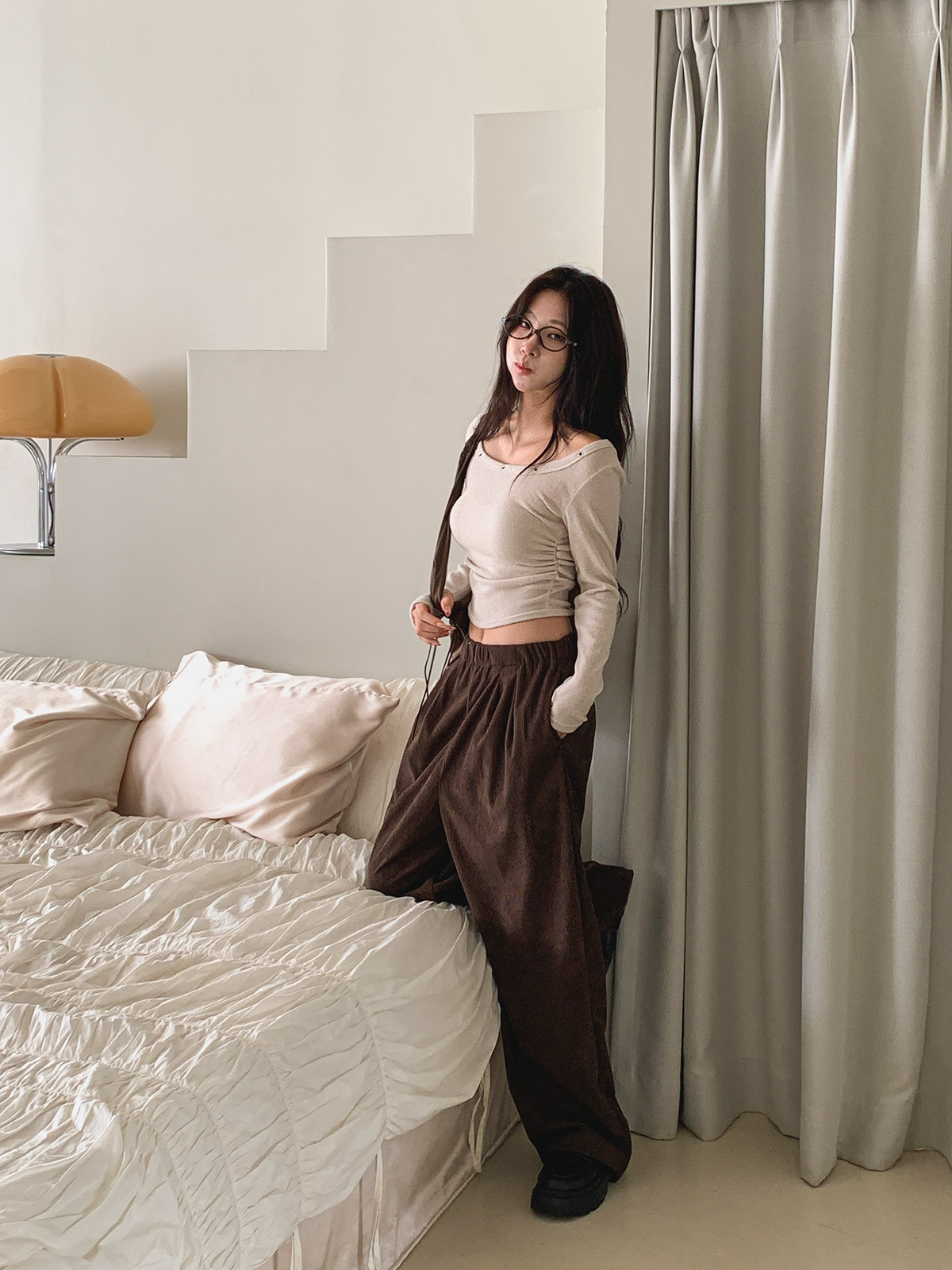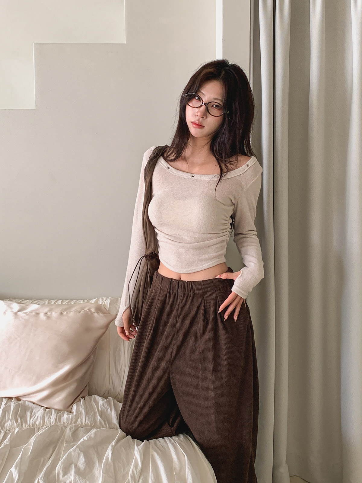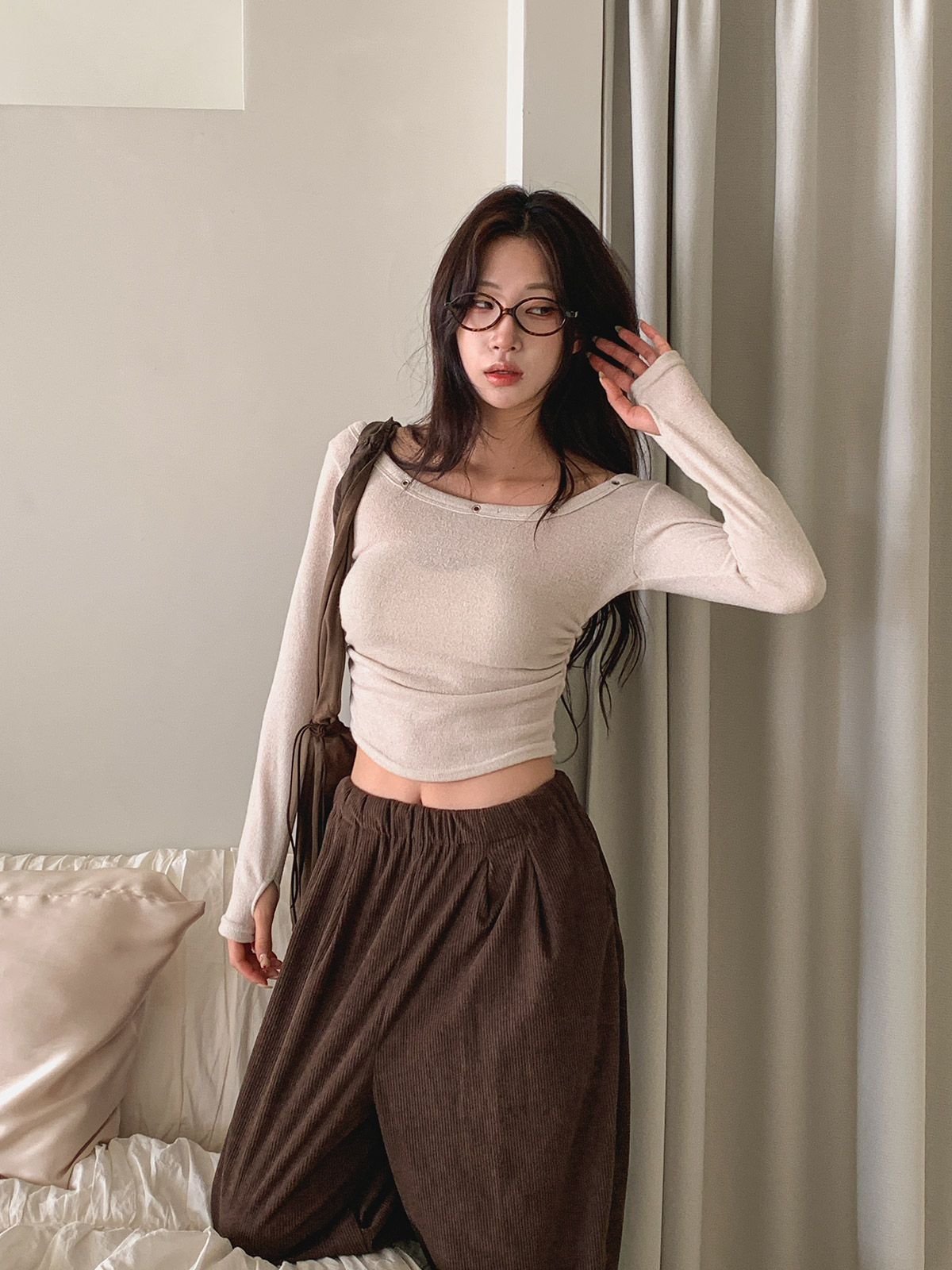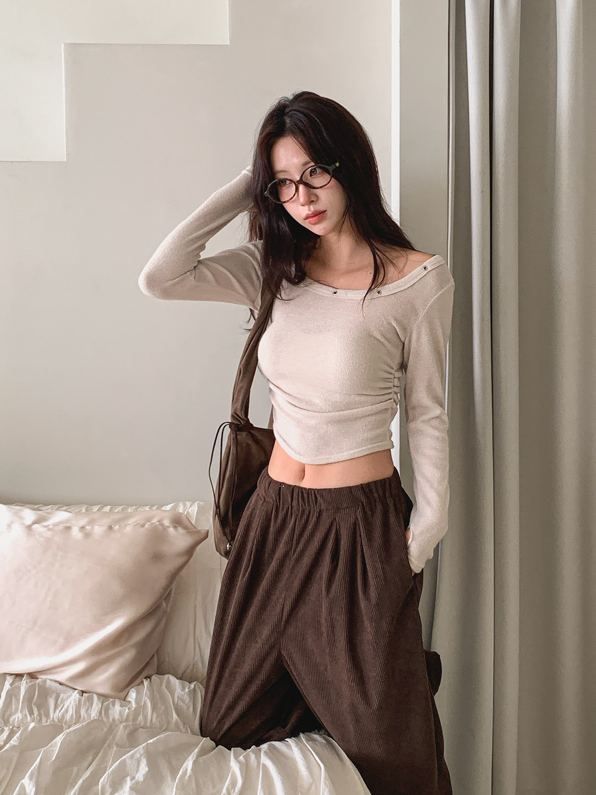 NT6061K5A-헤리그 셔링 라운드 크롭 니트