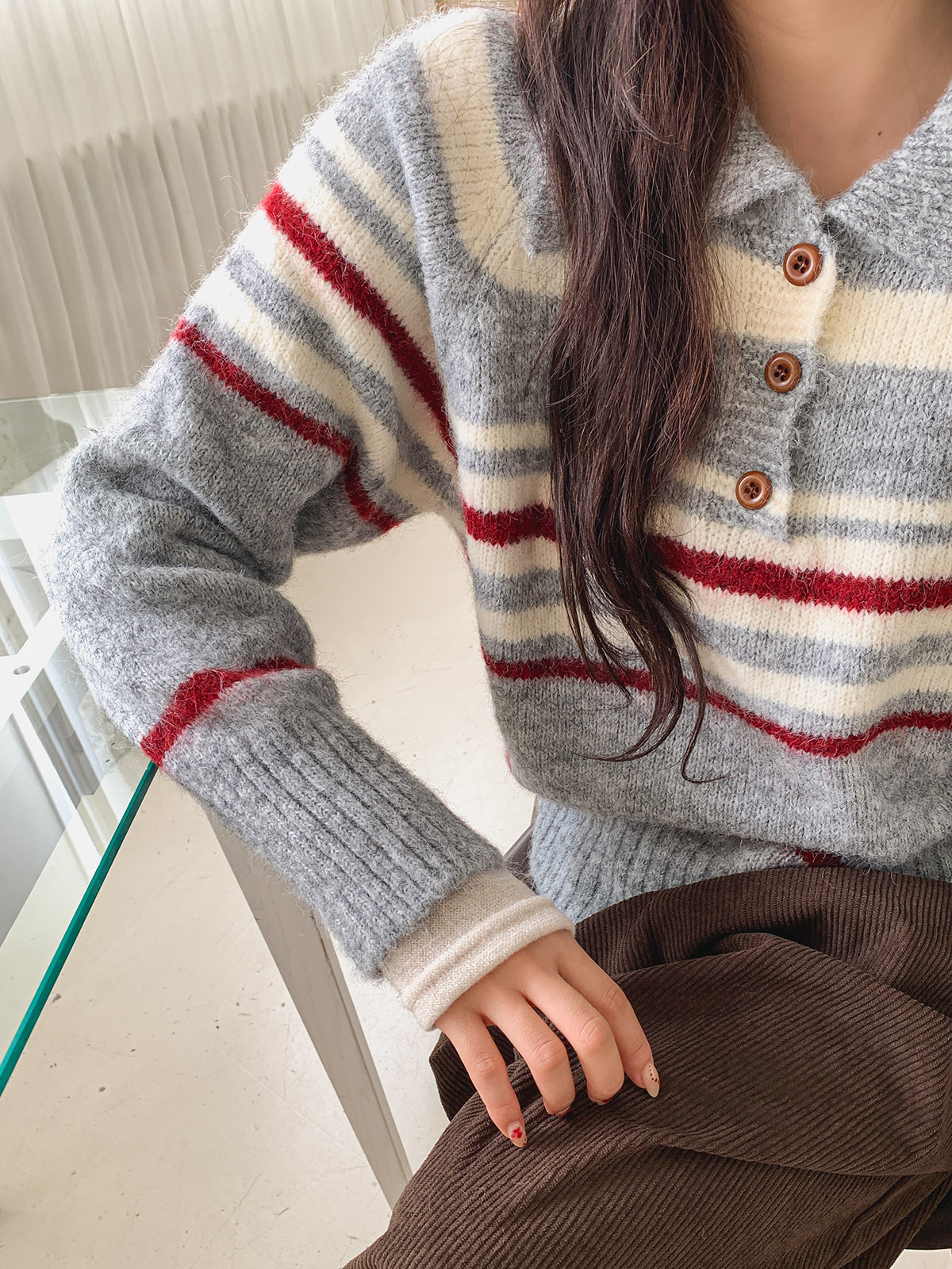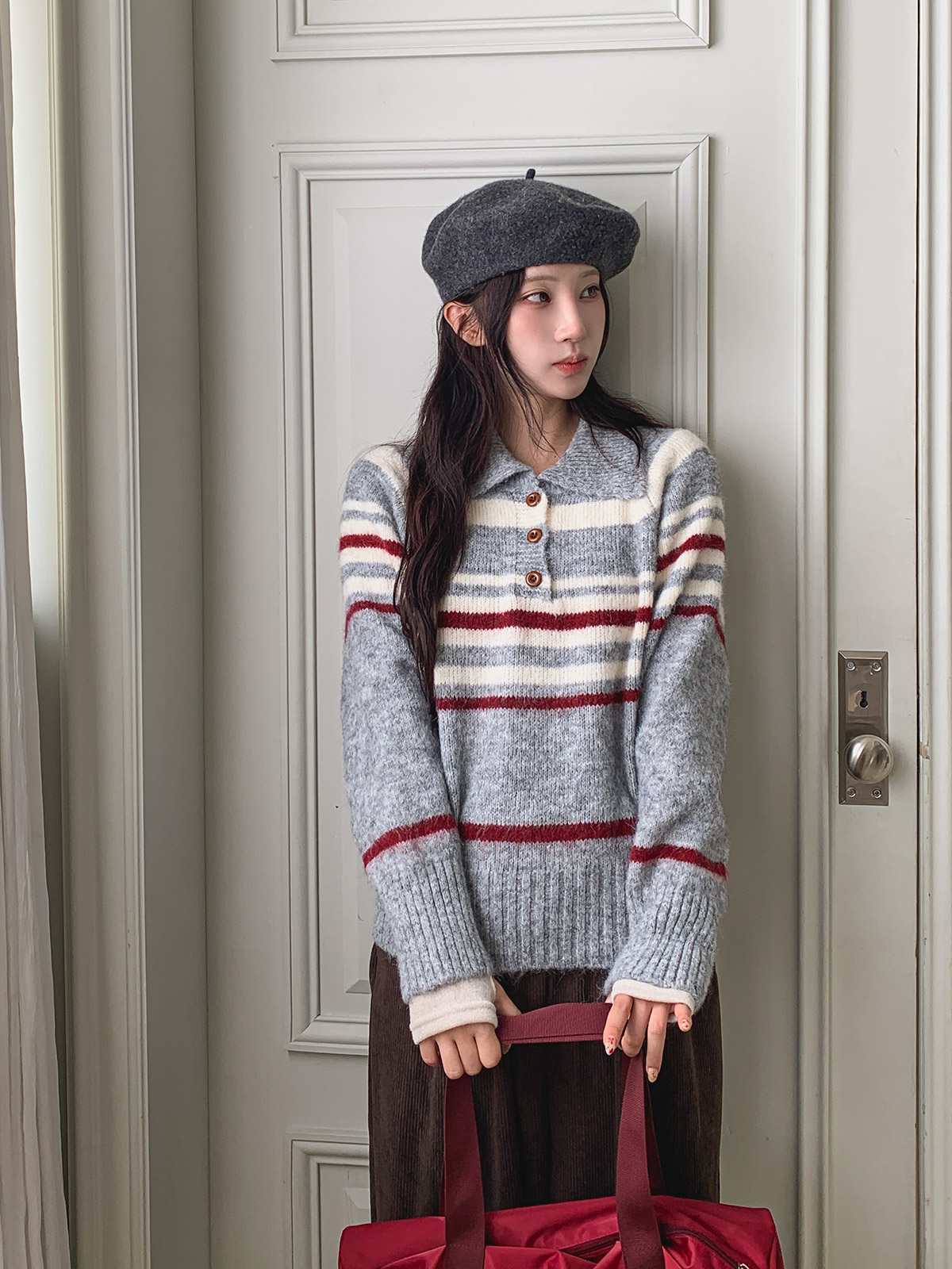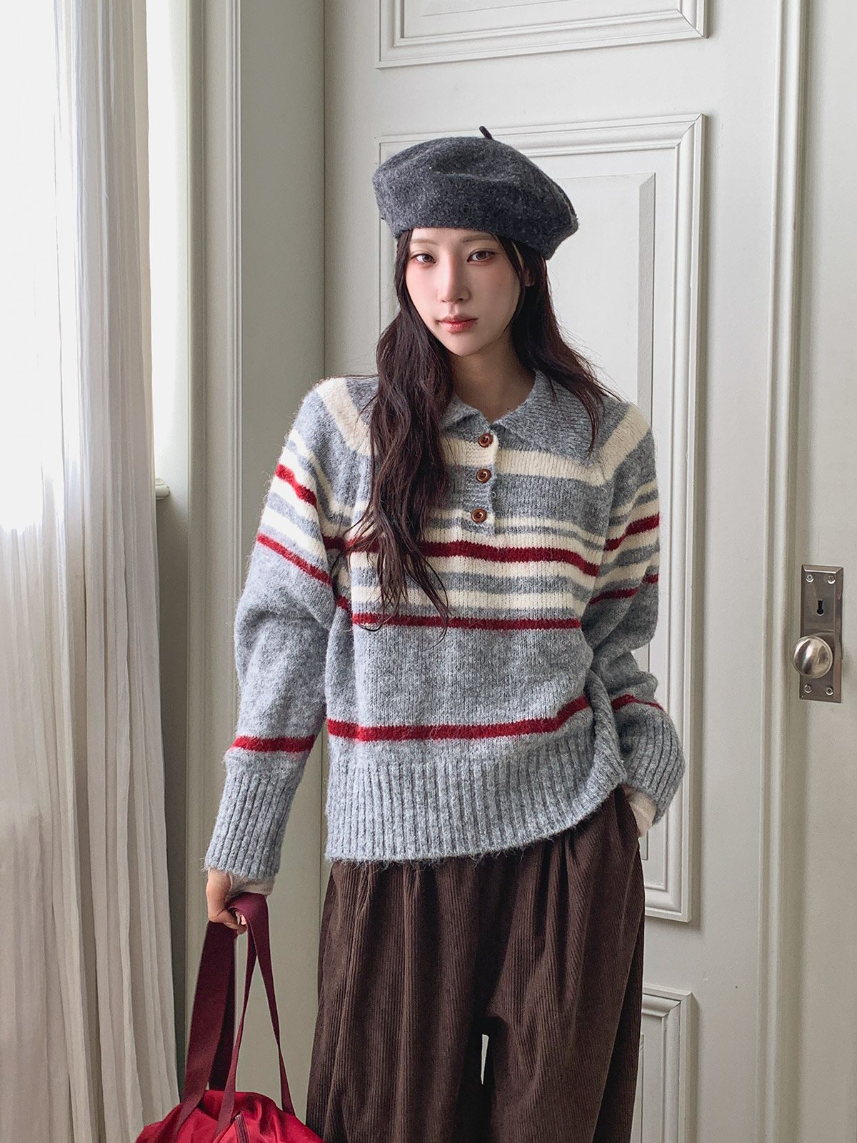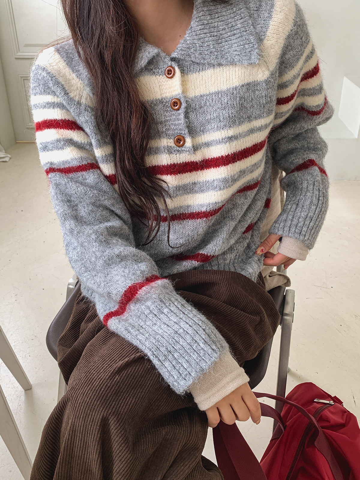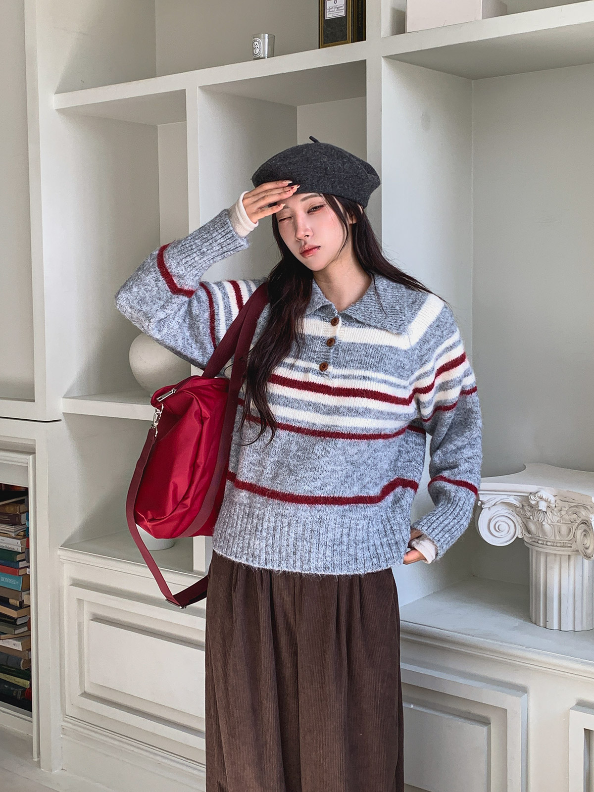 #니트#라운드넥니트#여성니트#데일리니트#니트코디#데일리코디#페미닌#러블리#캐쥬얼#데일리#가을#가을옷#가을신상#단가라니트#스트라이프#카라니트#빈티지#캠퍼스룩