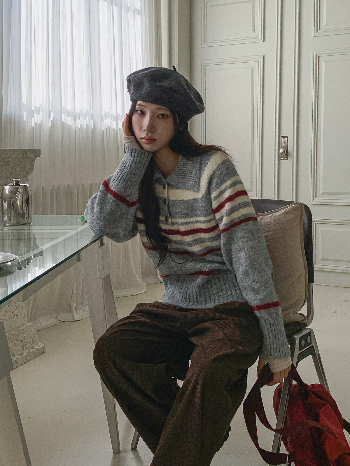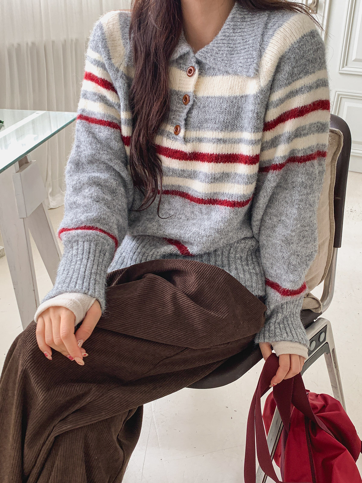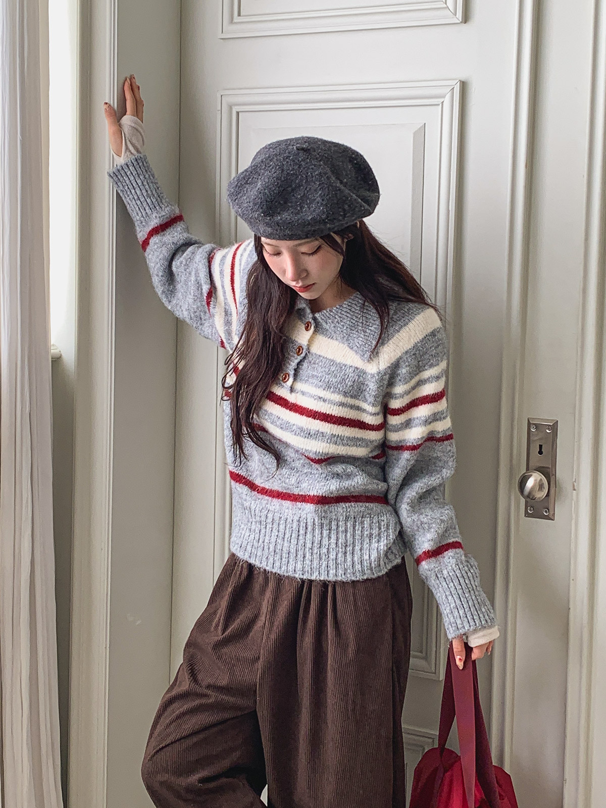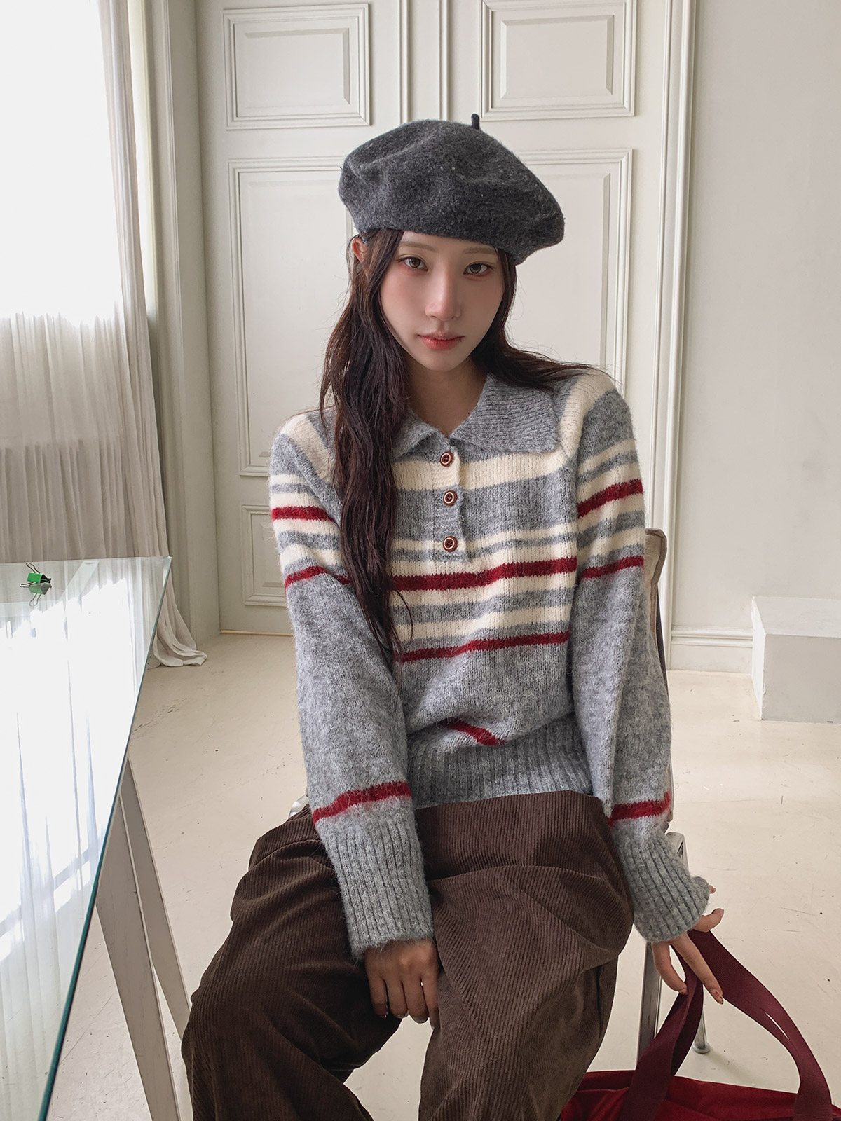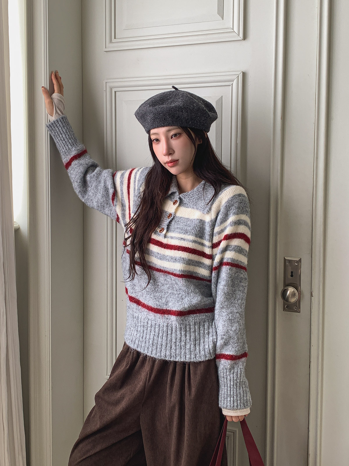 #니트#라운드넥니트#여성니트#데일리니트#니트코디#데일리코디#페미닌#러블리#캐쥬얼#데일리#가을#가을옷#가을신상#단가라니트#스트라이프#카라니트#빈티지#캠퍼스룩