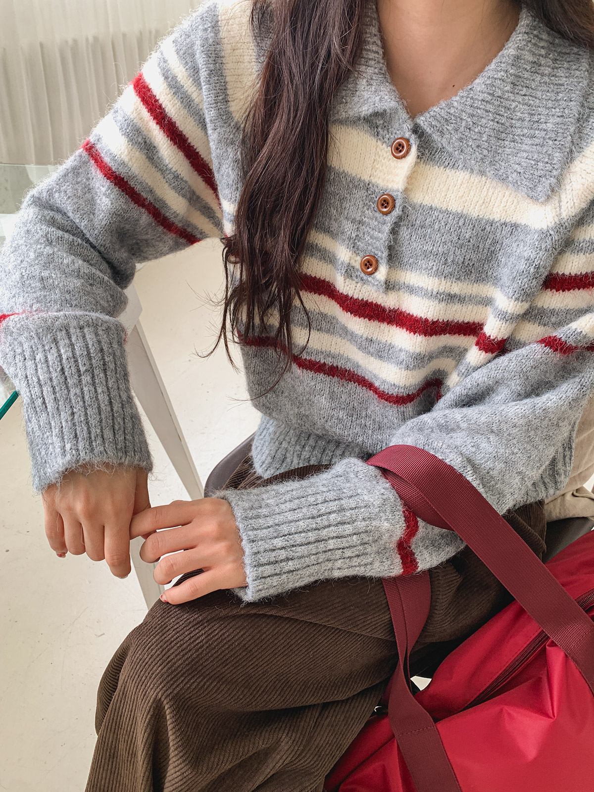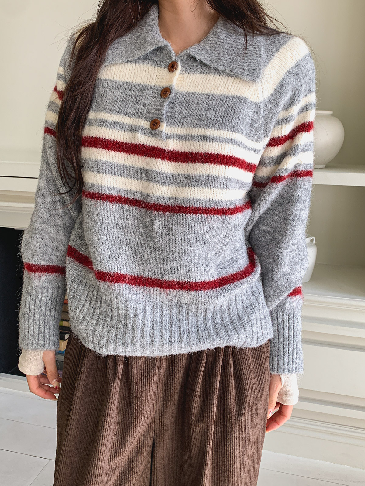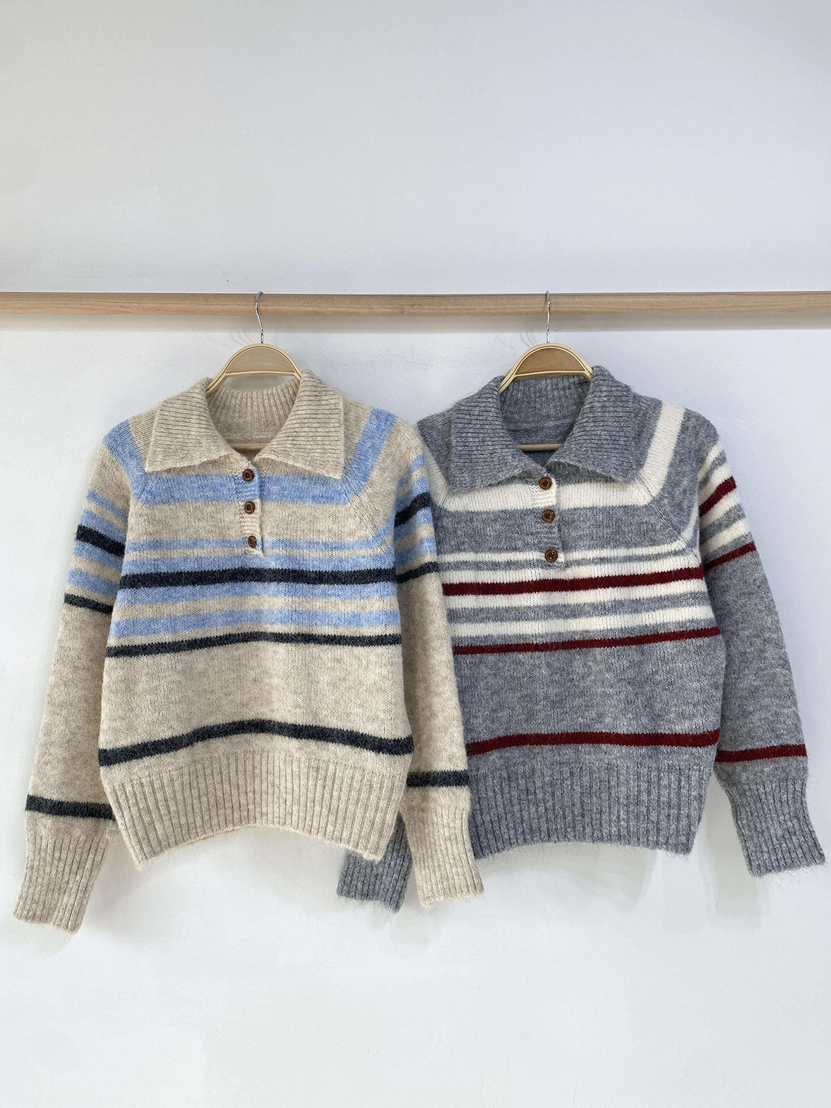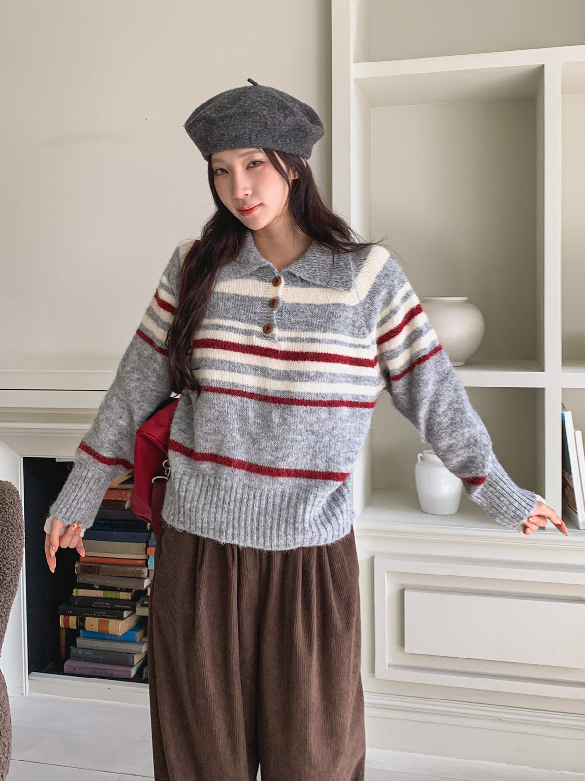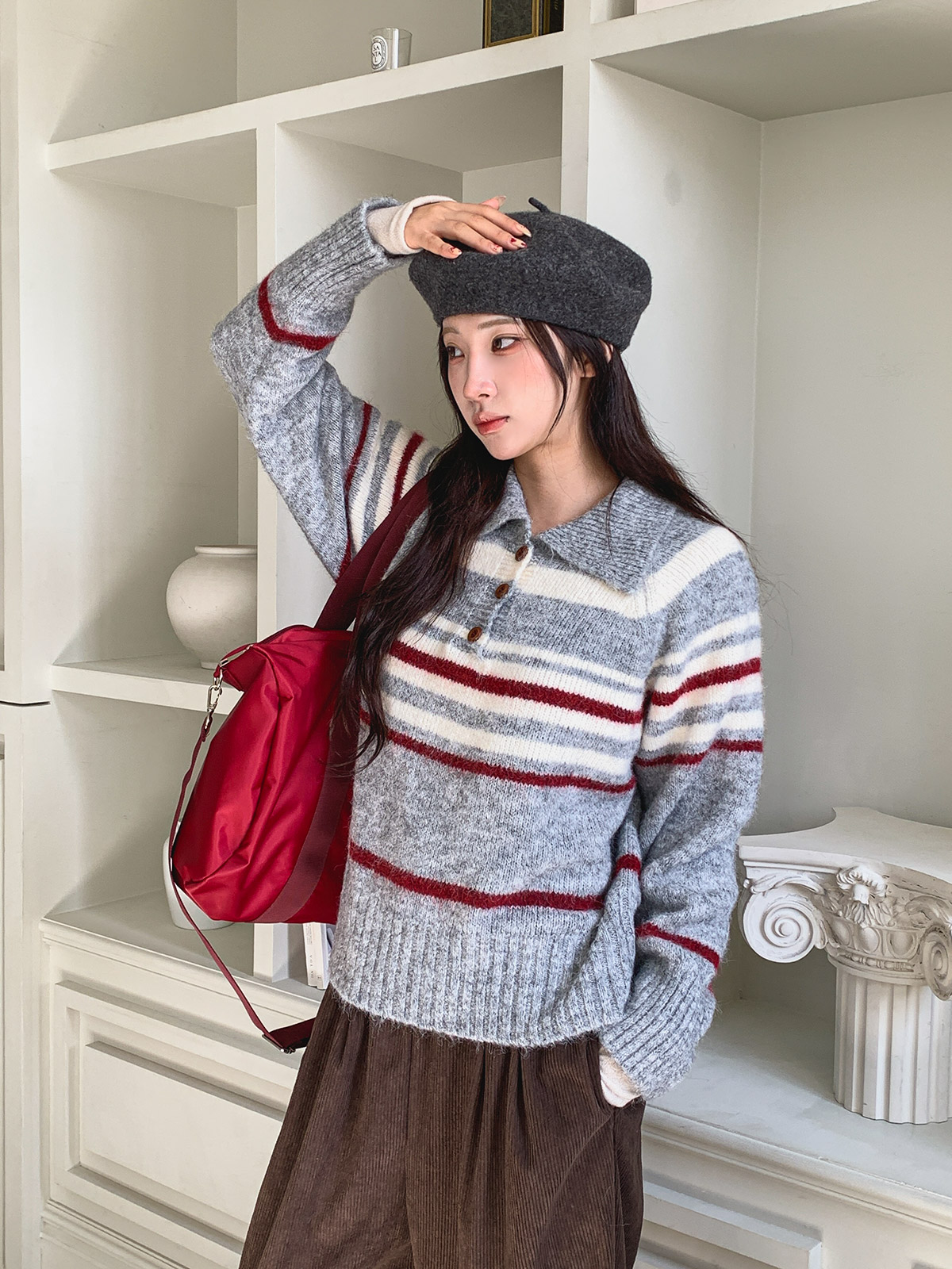 #니트#라운드넥니트#여성니트#데일리니트#니트코디#데일리코디#페미닌#러블리#캐쥬얼#데일리#가을#가을옷#가을신상#단가라니트#스트라이프#카라니트#빈티지#캠퍼스룩
