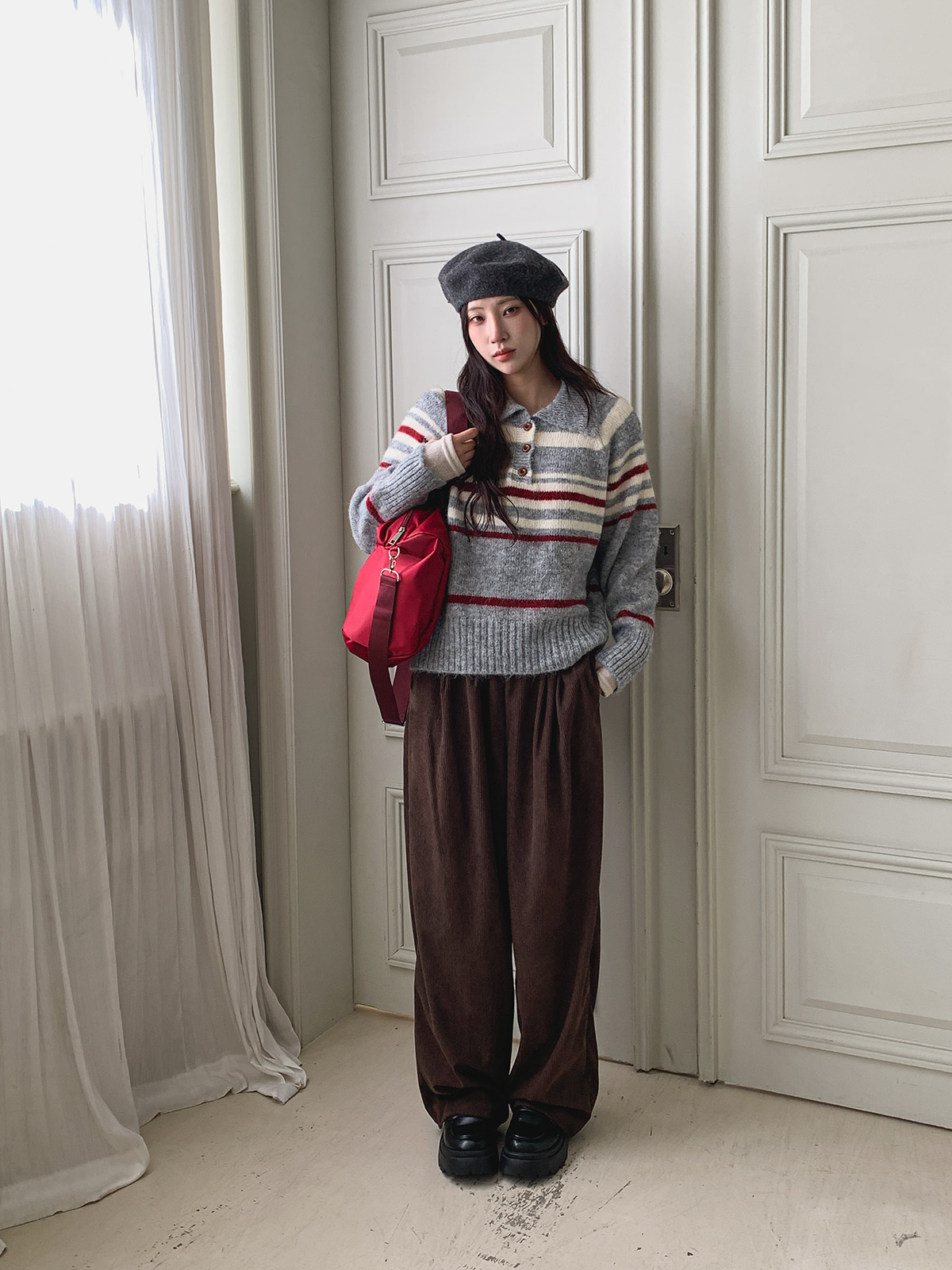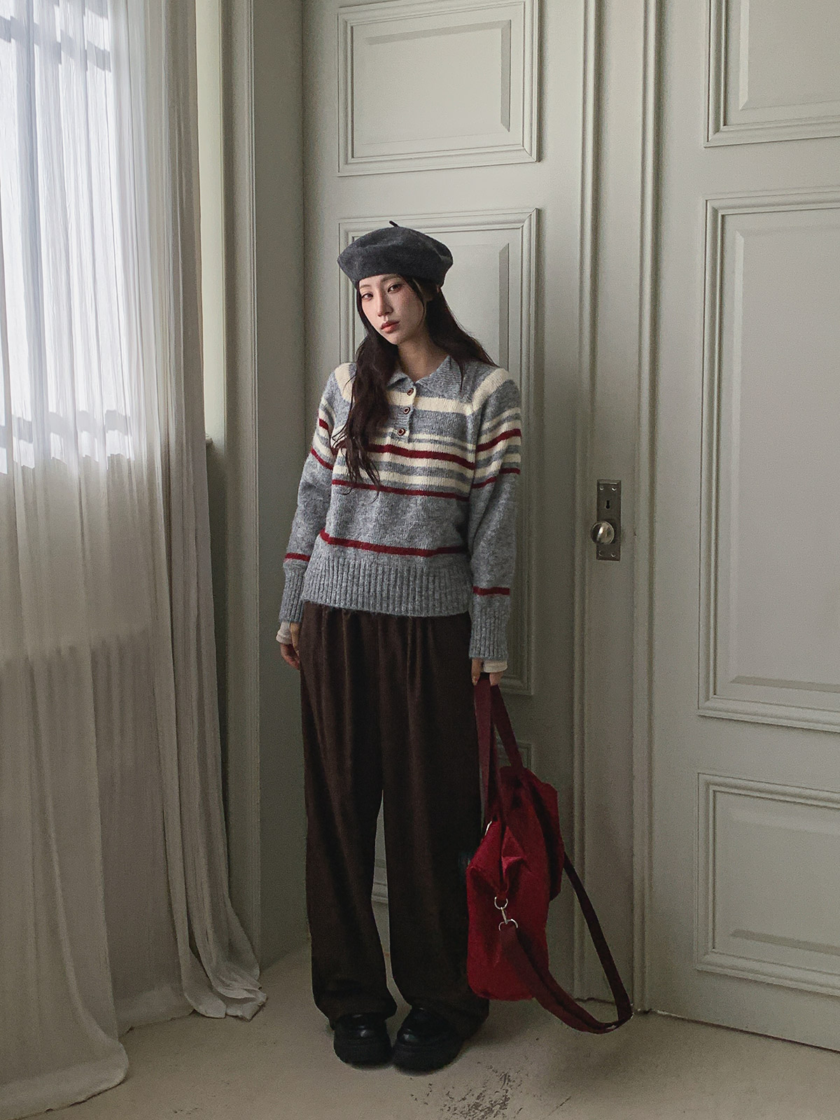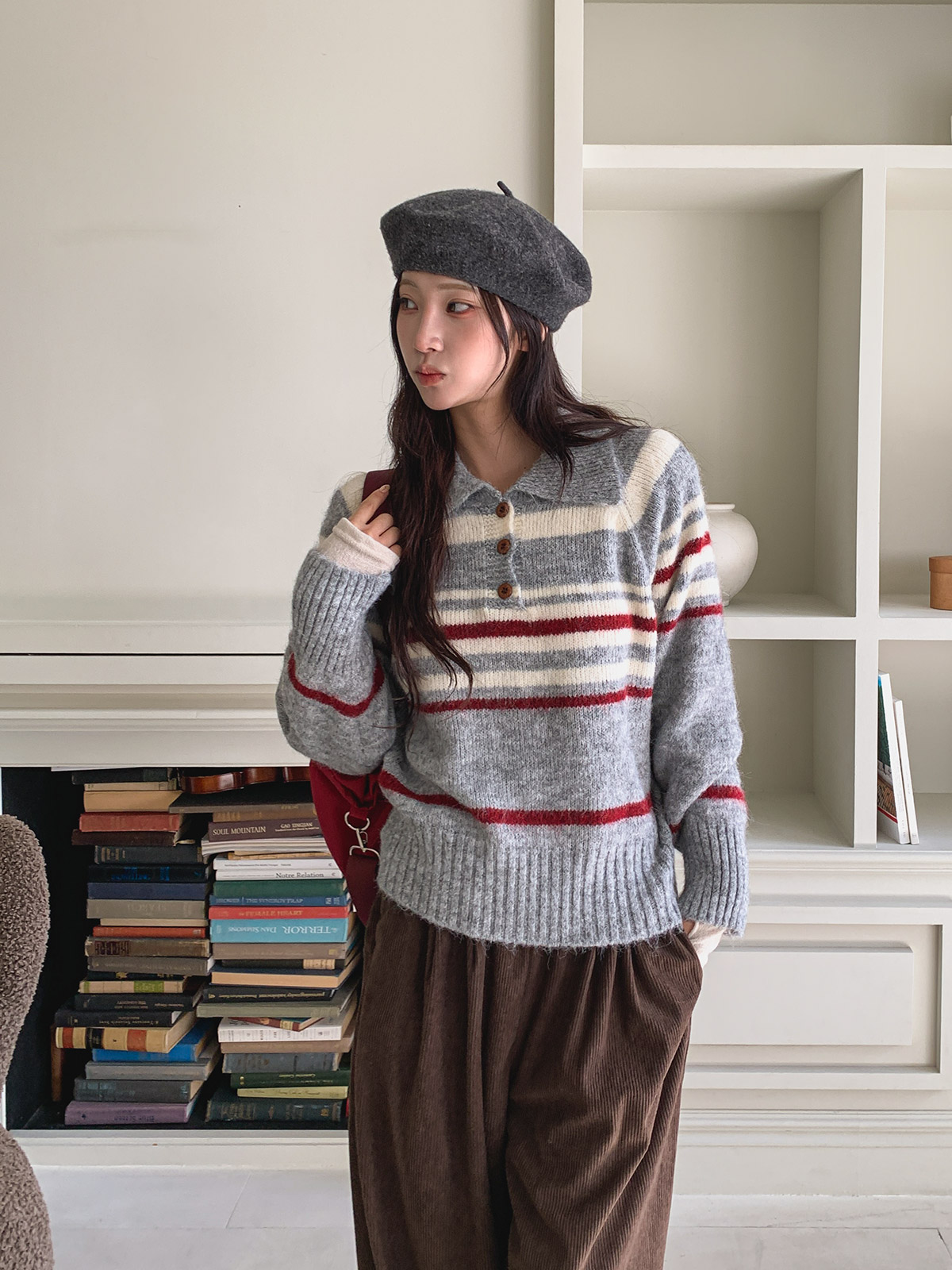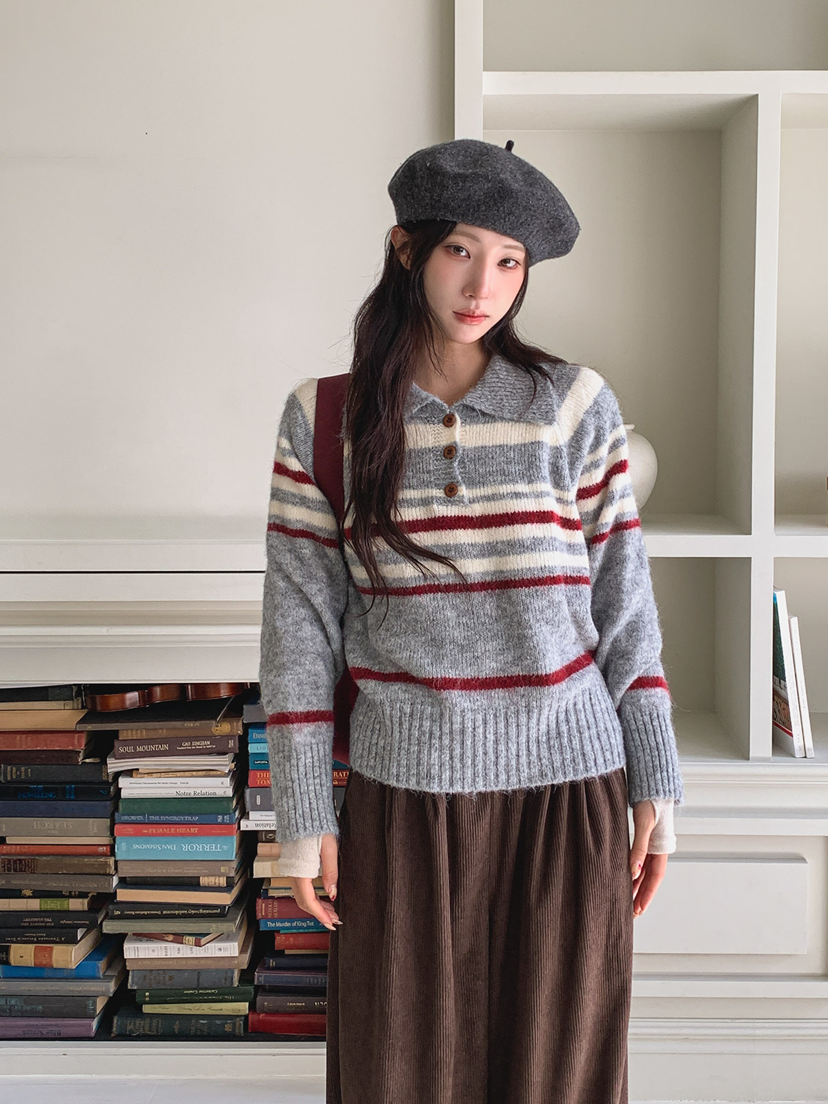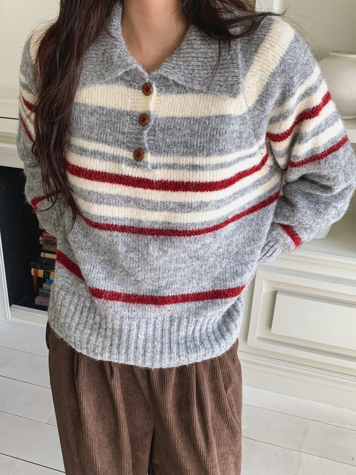 #니트#라운드넥니트#여성니트#데일리니트#니트코디#데일리코디#페미닌#러블리#캐쥬얼#데일리#가을#가을옷#가을신상#단가라니트#스트라이프#카라니트#빈티지#캠퍼스룩