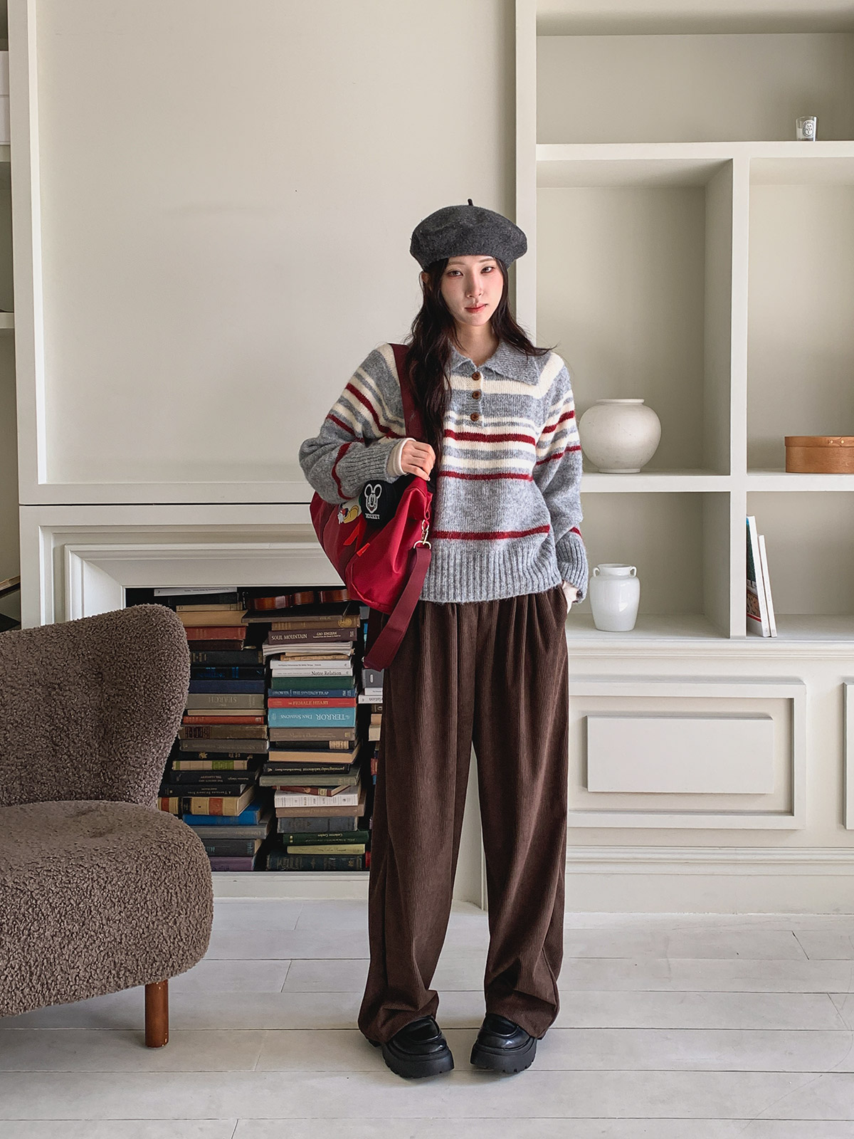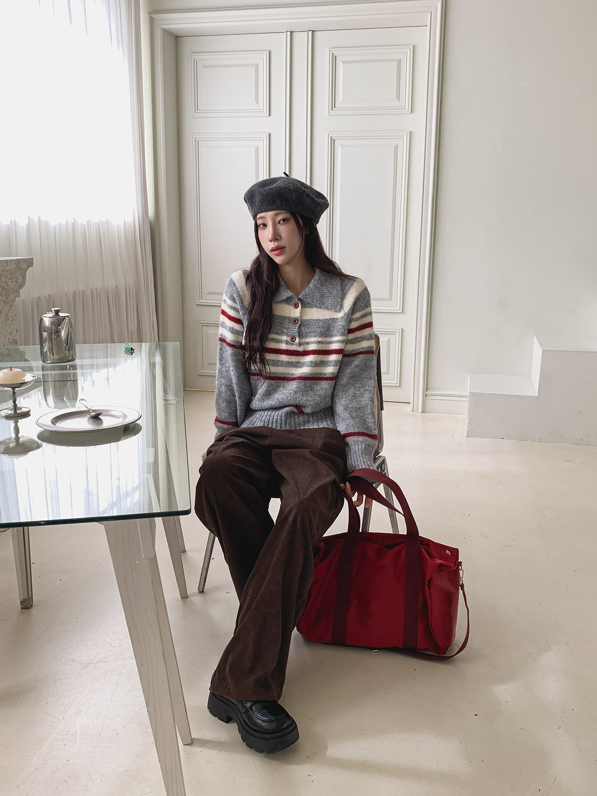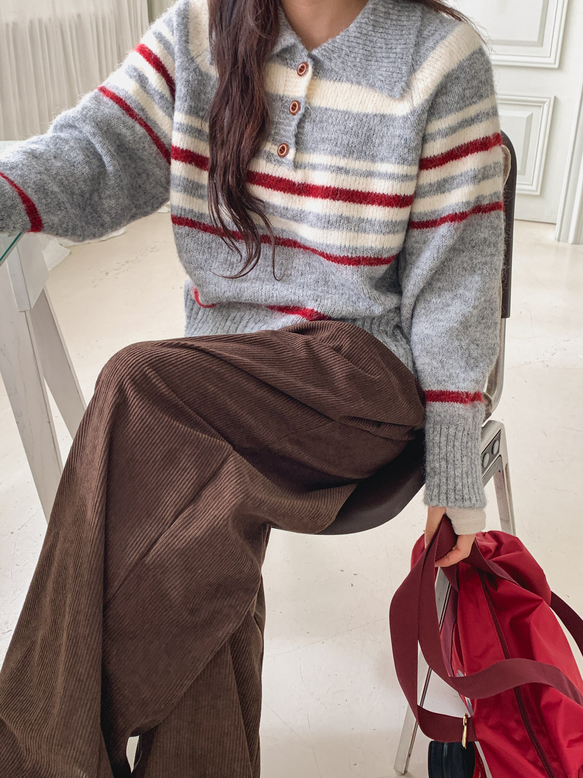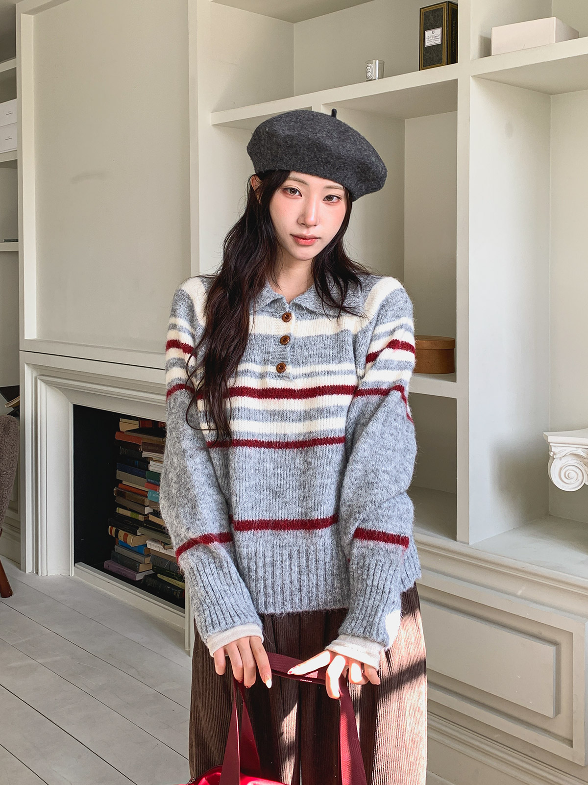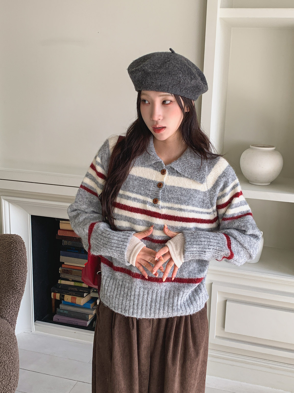 #니트#라운드넥니트#여성니트#데일리니트#니트코디#데일리코디#페미닌#러블리#캐쥬얼#데일리#가을#가을옷#가을신상#단가라니트#스트라이프#카라니트#빈티지#캠퍼스룩