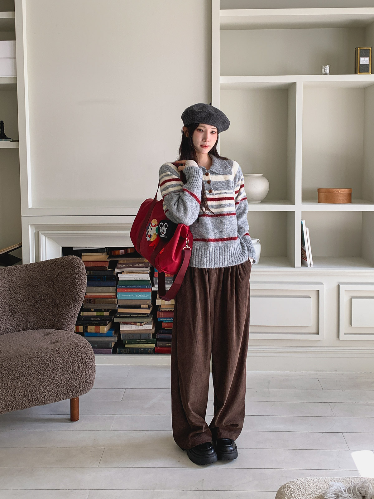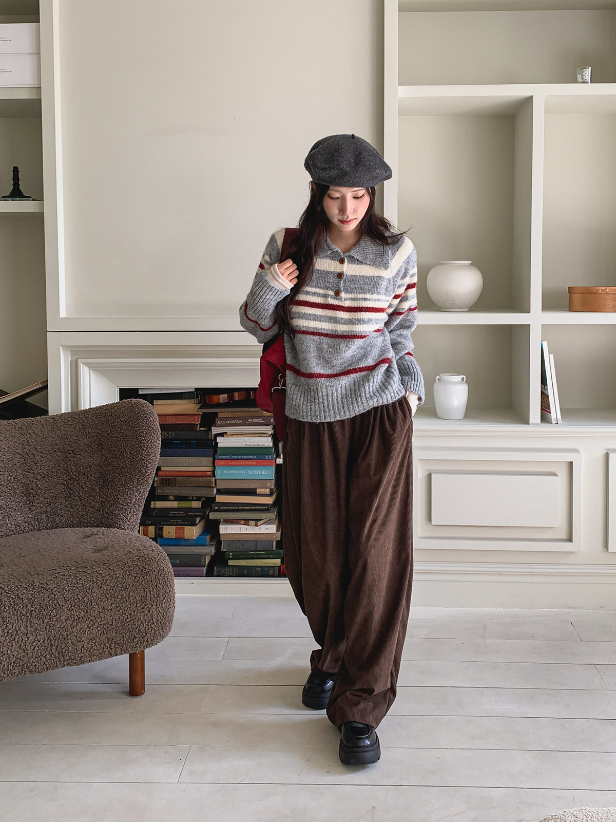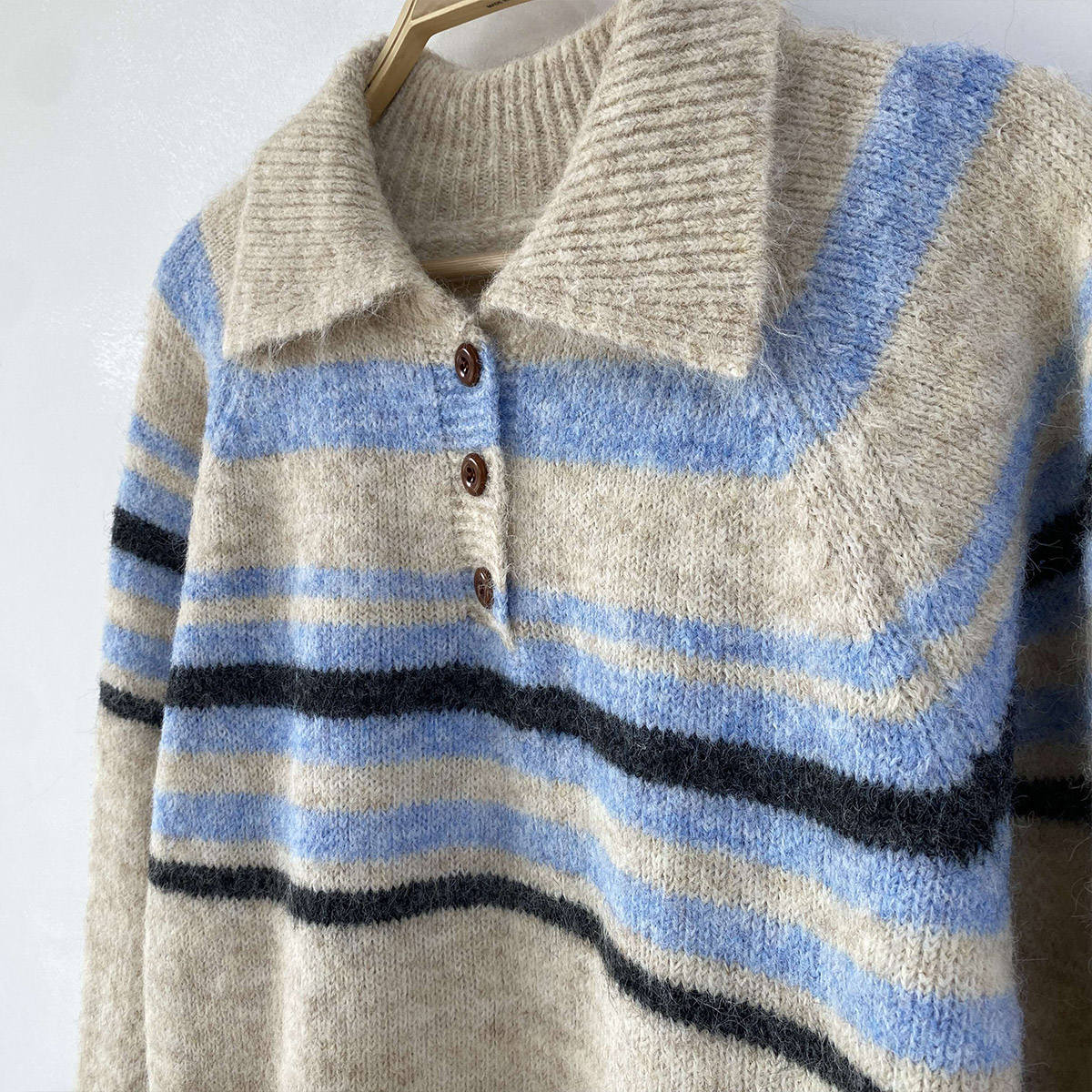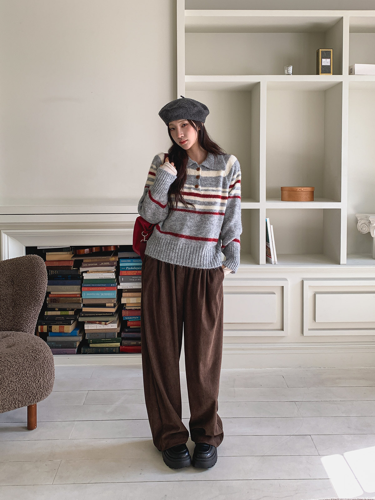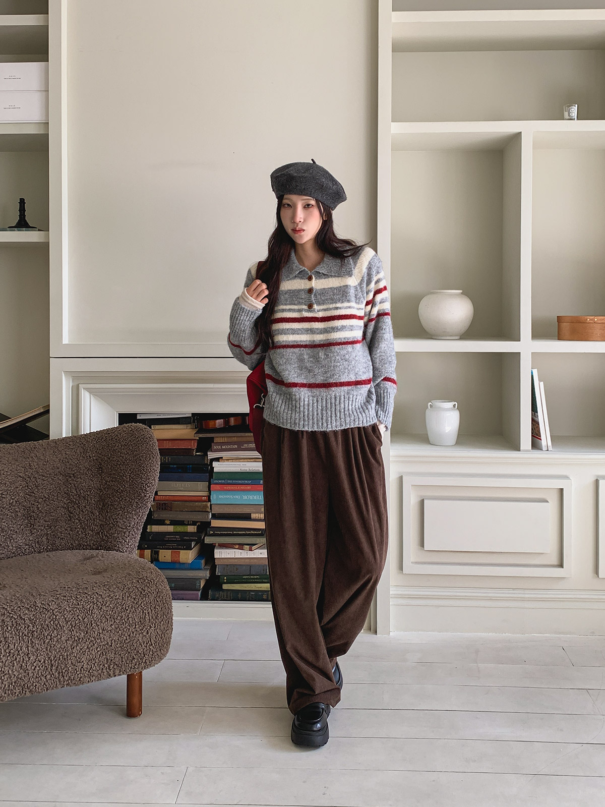 #니트#라운드넥니트#여성니트#데일리니트#니트코디#데일리코디#페미닌#러블리#캐쥬얼#데일리#가을#가을옷#가을신상#단가라니트#스트라이프#카라니트#빈티지#캠퍼스룩
