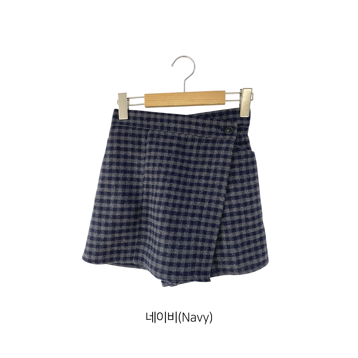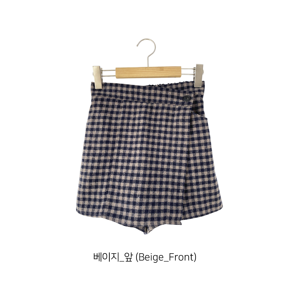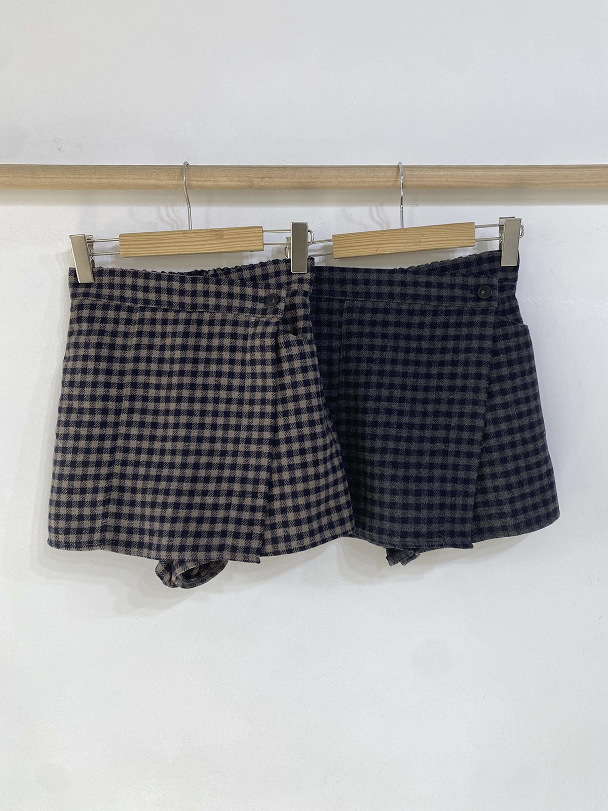 PT15563K5A-렌리그 모직 체크 뒷밴딩 랩 치마바지