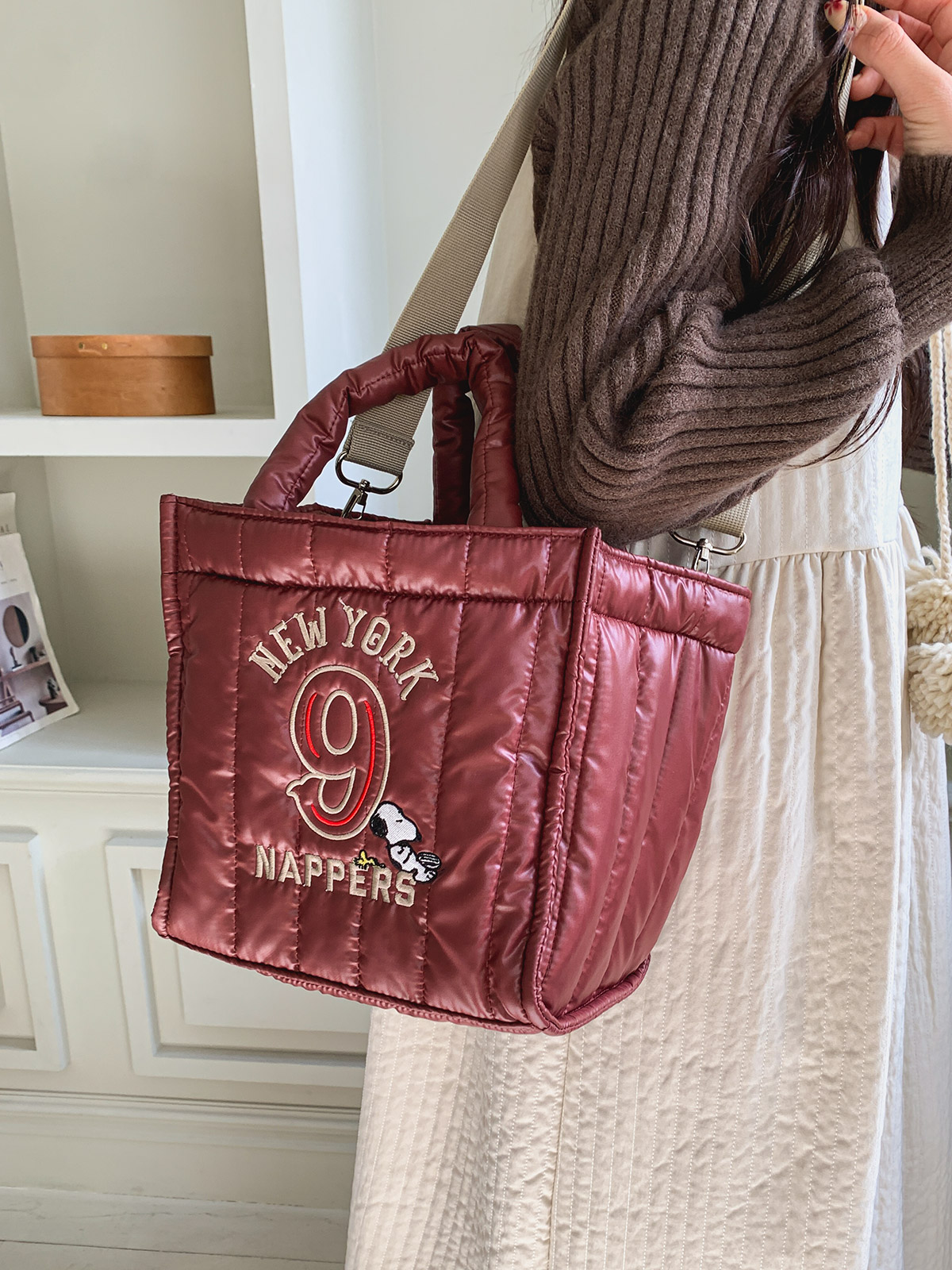 깔끔한 배색 자수가 포인트인 퀄팅 스누피 토트백