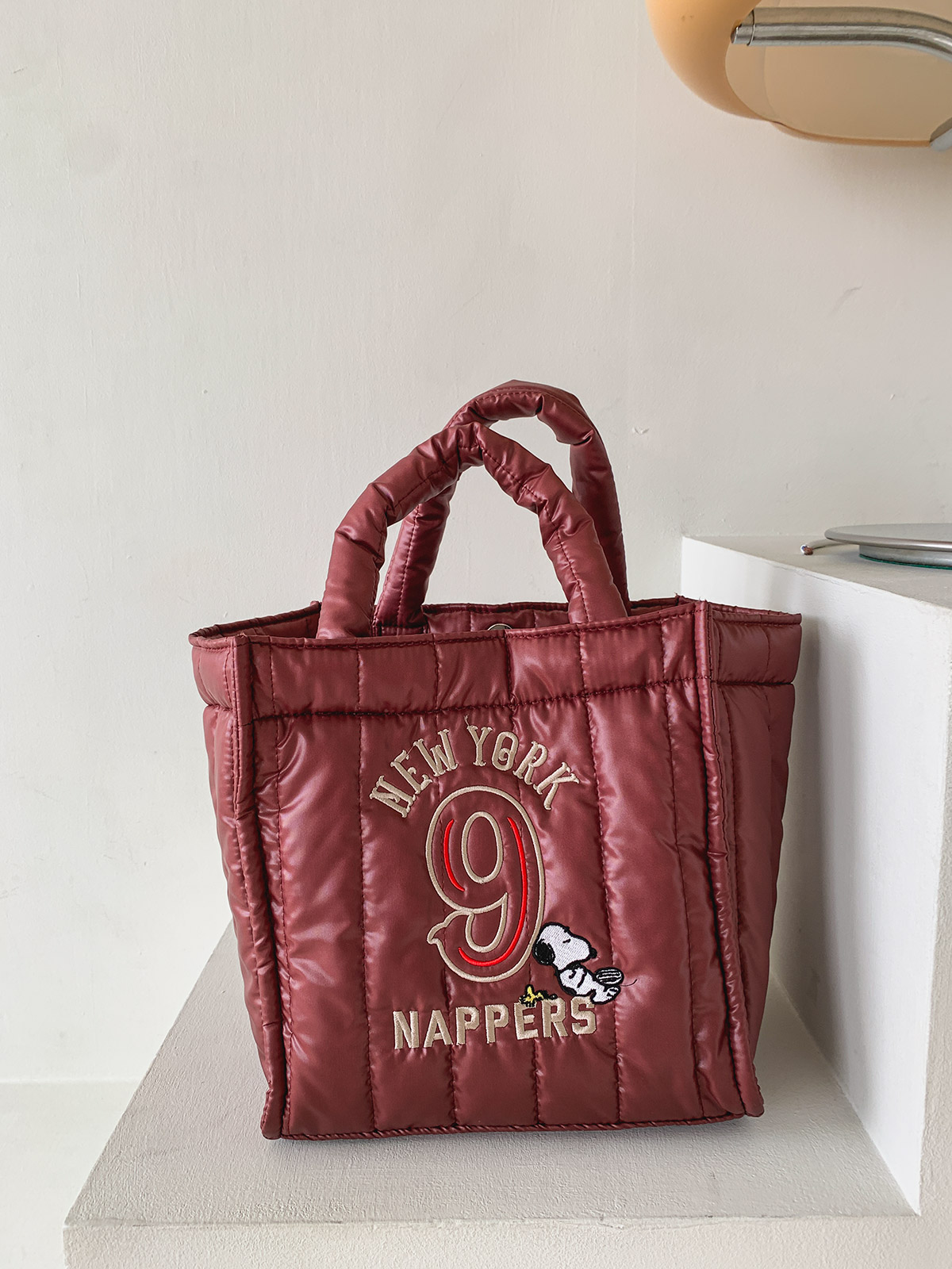 BAG353K5A-기모르 퀄팅 스누피 키링 토트백