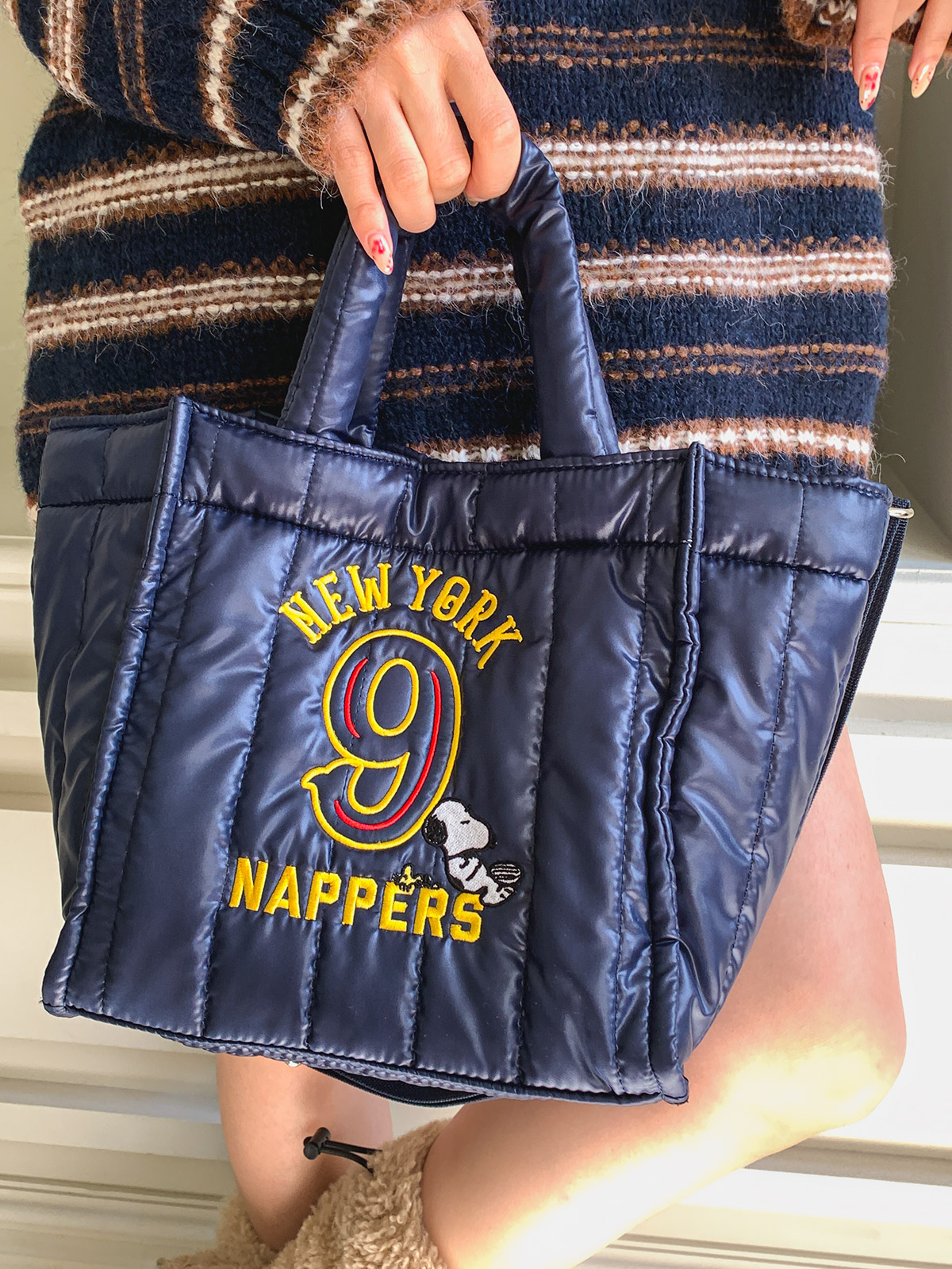 깔끔한 배색 자수가 포인트인 퀄팅 스누피 토트백